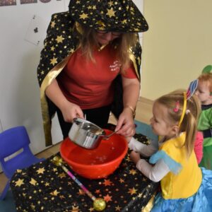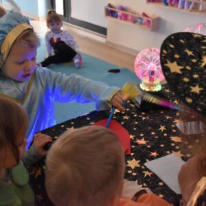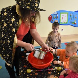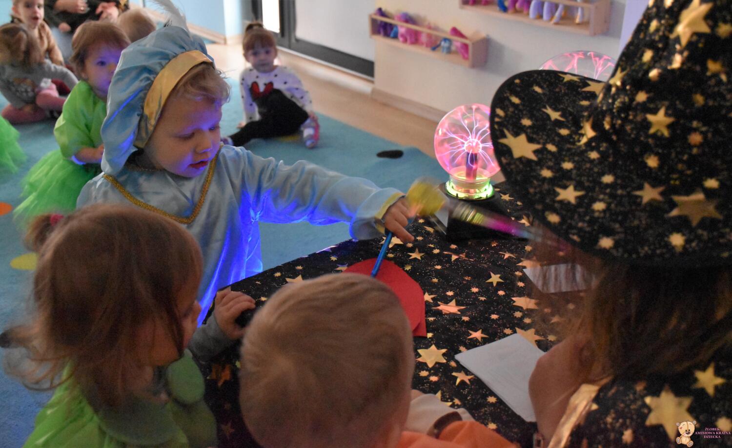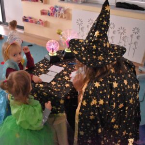 W dniu dzisiejszym w Amisiowej Krainie Dziecka obchodziliśmy Andrzejki. Zrobiło się wyjątkowo, nastrojowo i magicznie. Dzieci przebrały się w piękne kolorowe stroje, słuchaliśmy nastrojowej muzyki, oraz bawiliśmy się przy wróżbach andrzejkowych. Ciocia zamieniła się w czarodziejkę i prowadziła dla dzieci zabawy z wróżbami, a także przelewała wosk, by pokazać naszym Amisiakom jak wygląda zabawa podczas tego święta.