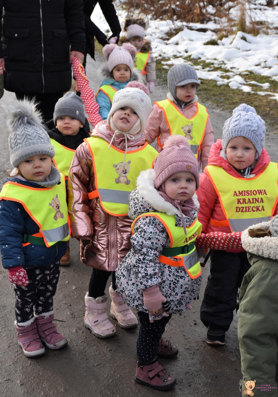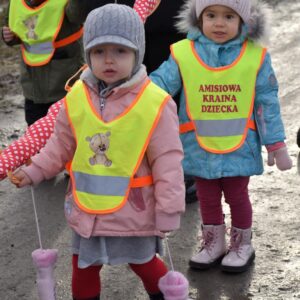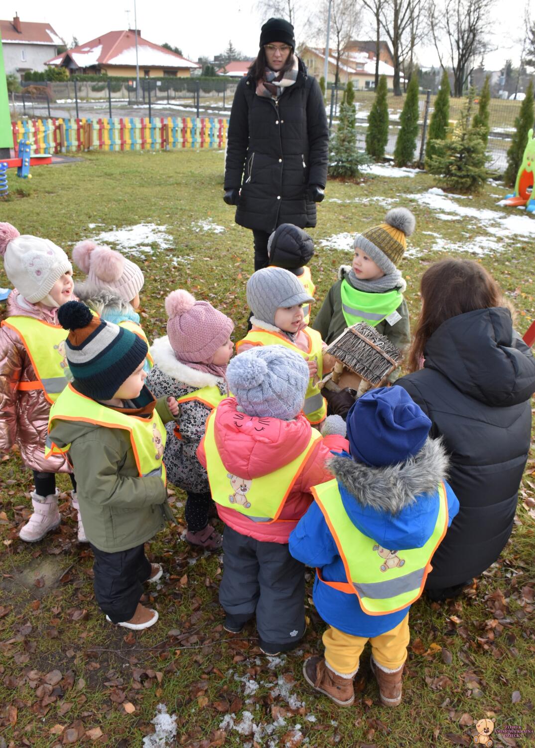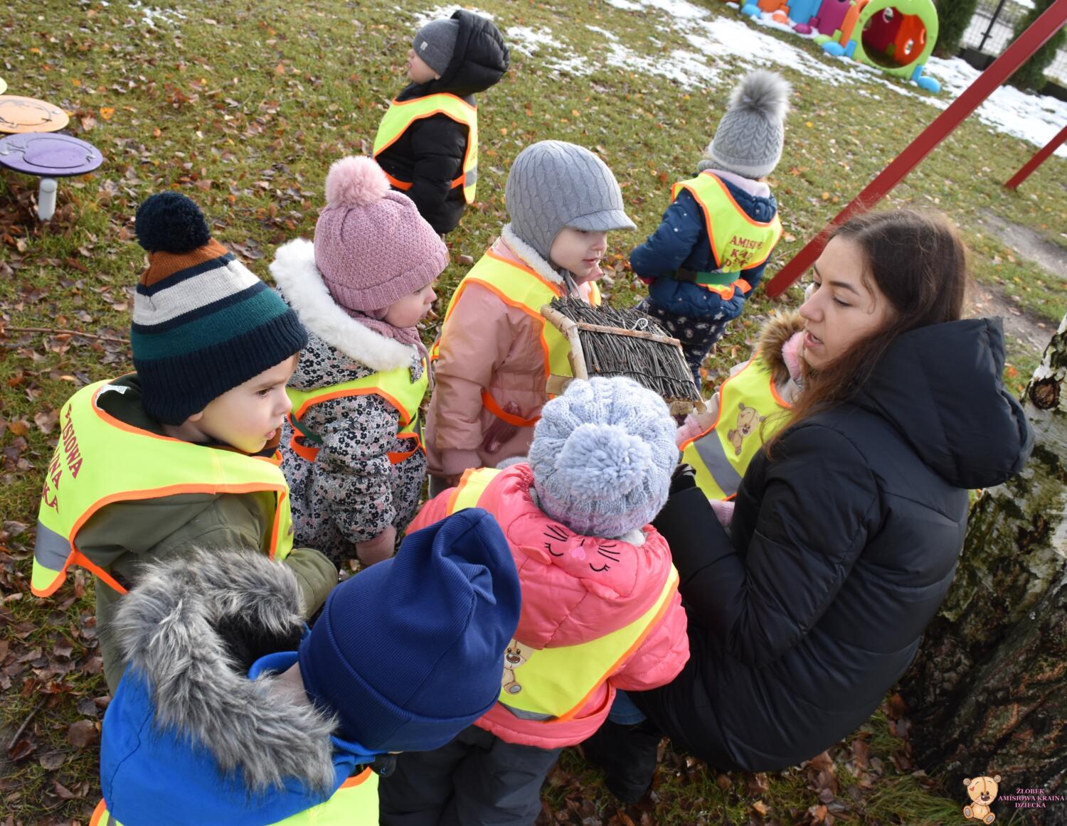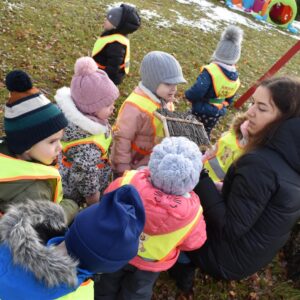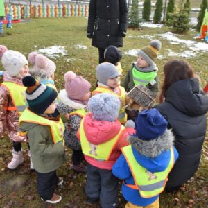 W dniu dzisiejszym AMIsiaki wybrały się na zimowy spacer, by w nawiązaniu do tematu tygodnia poszukiwać oznak zimy. Dzieci zawiesiły również karmnik na żłobkowym placu zabaw.