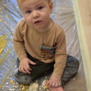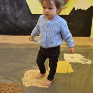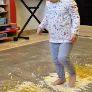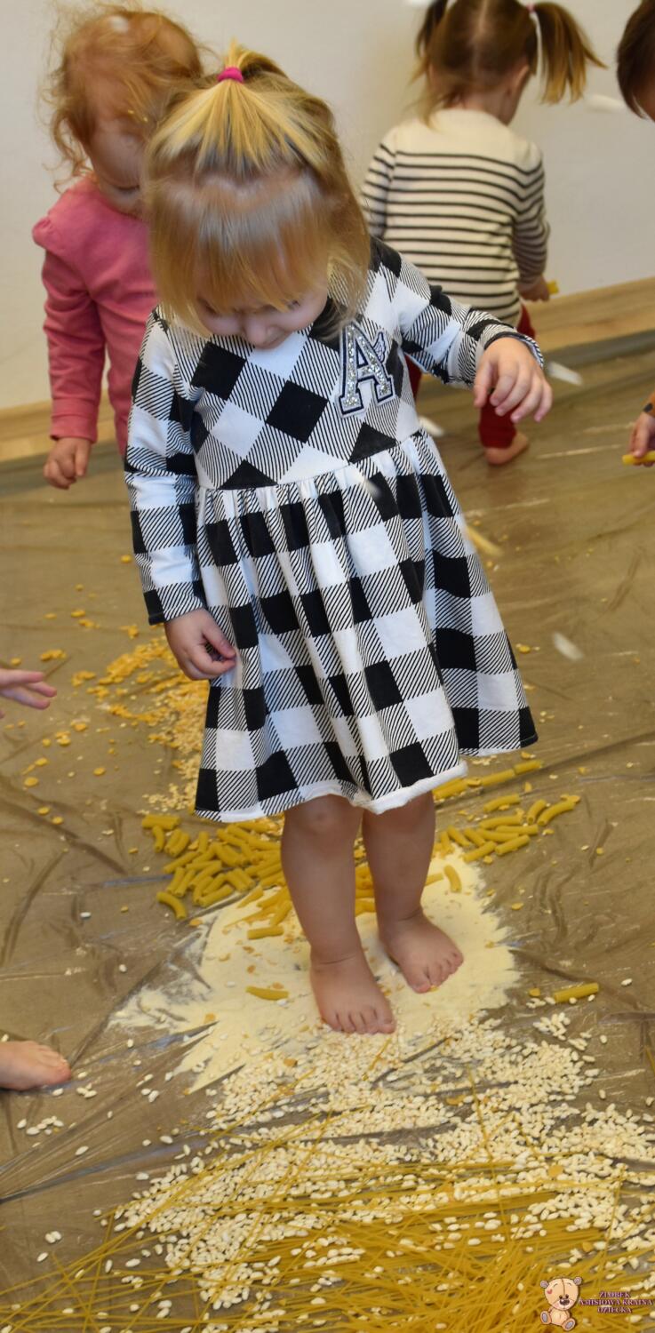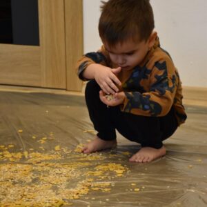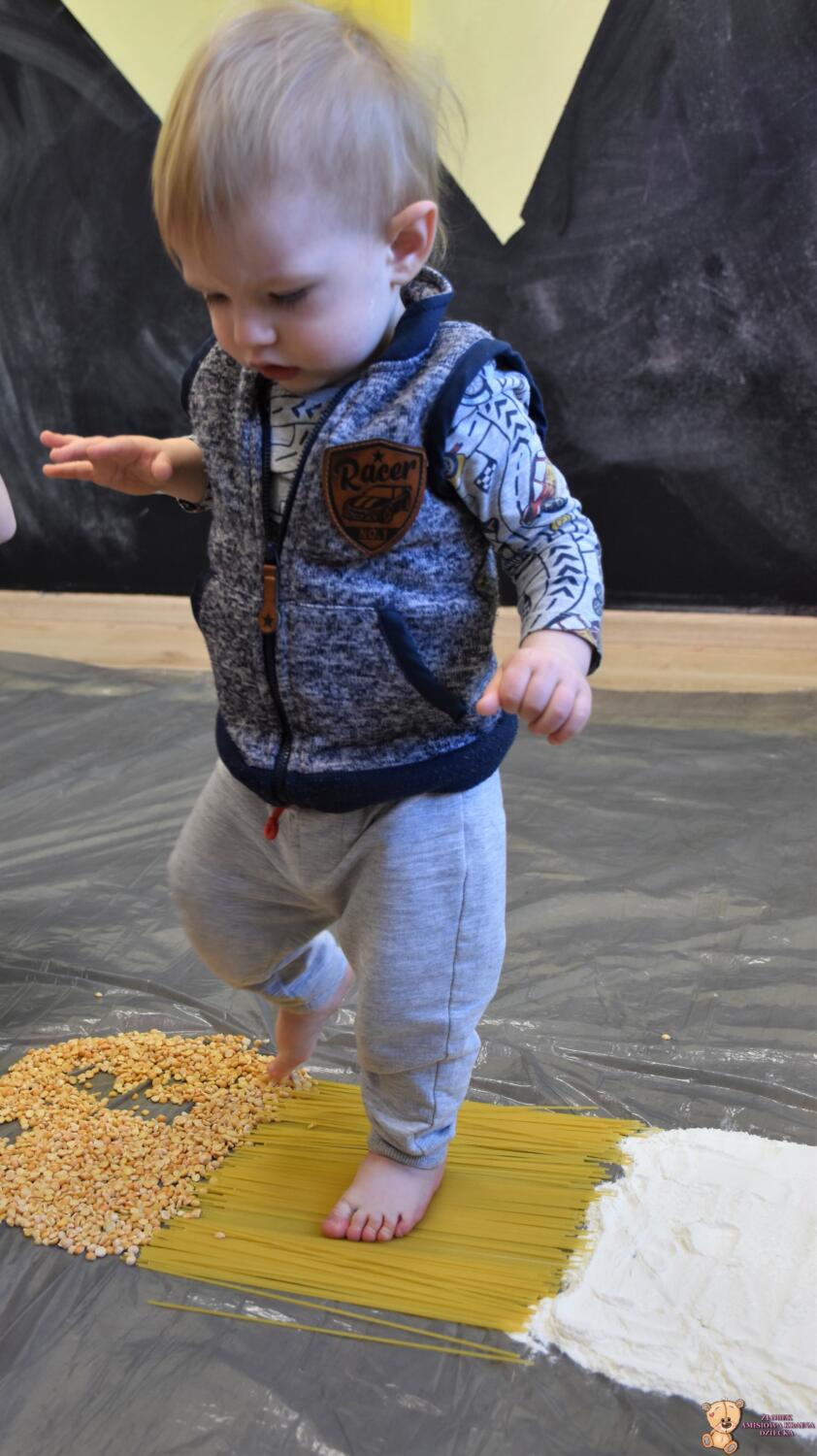 W dniu dzisiejszym na zajęciach z sensoplastyki, uwielbiana przez dzieci ścieżka sensoryczna.