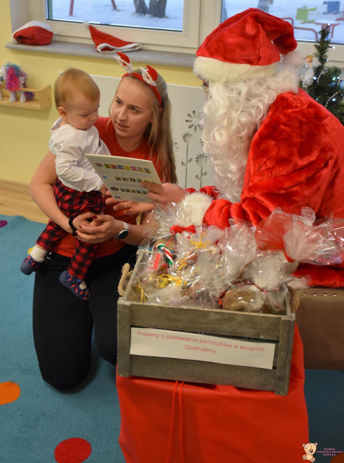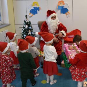 Dzieci przywitały Świętego Mikołaja i odebrały od Niego wspaniałe prezenty. Jak widać radość była ogromna, ponieważ dzieci otrzymały nowe, wspaniałe zabawki do Żłobka, oraz słodkie pierniki, które przygotowali sobie wzajemnie w domu, wraz z Rodzicami.