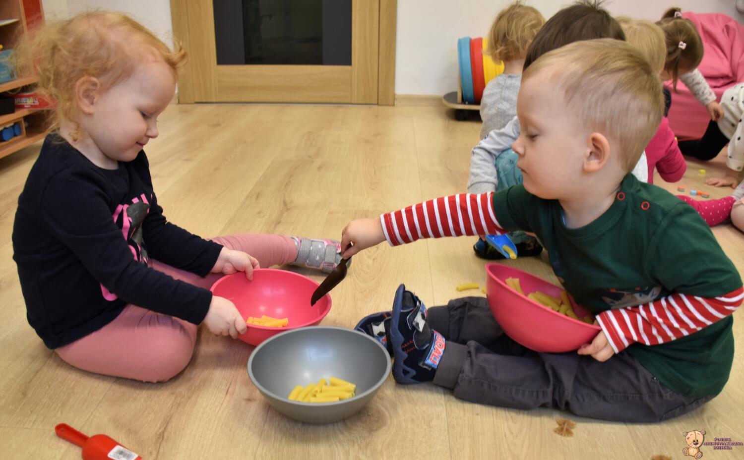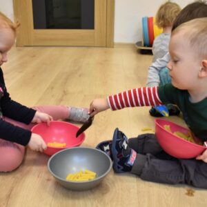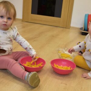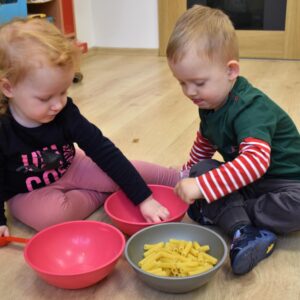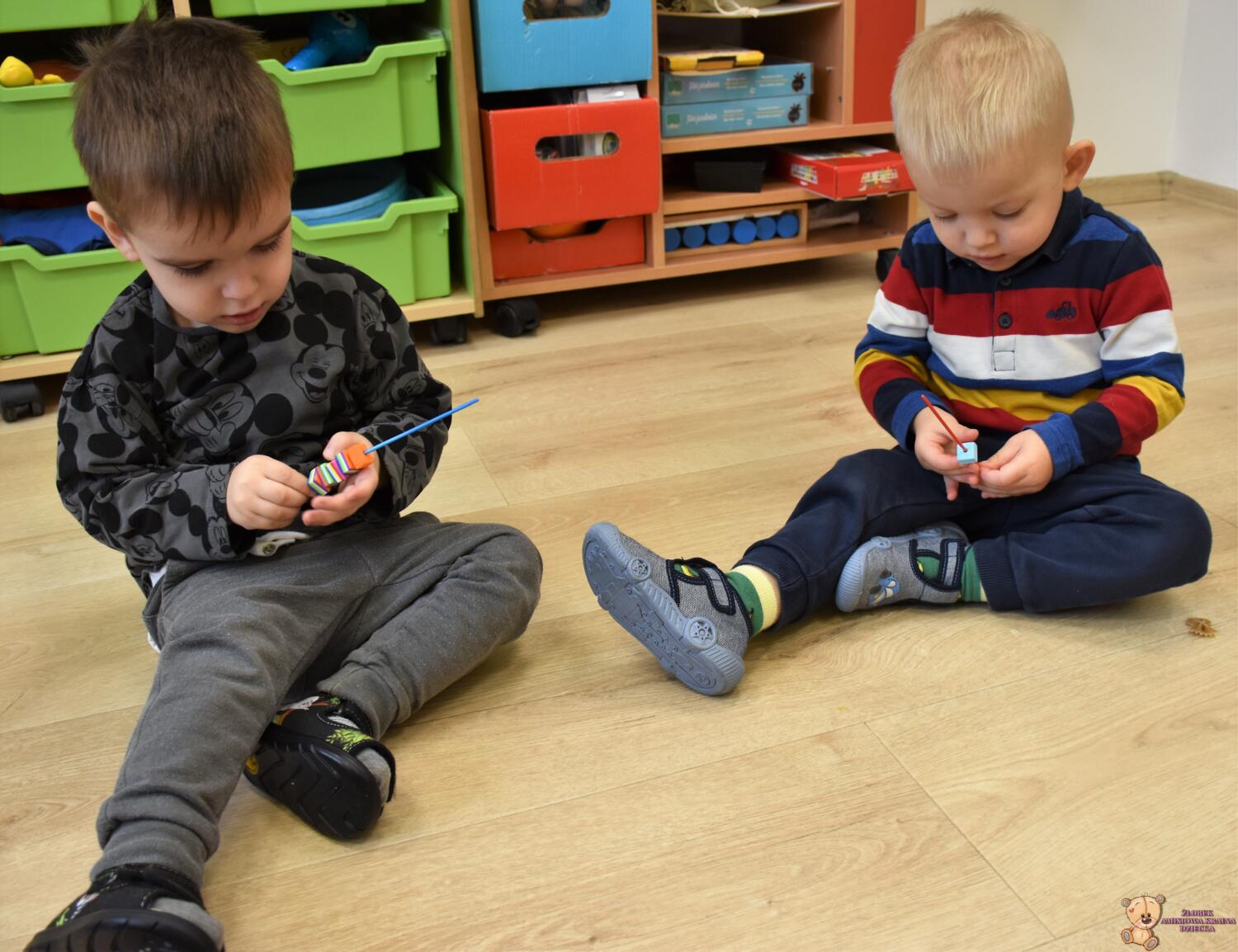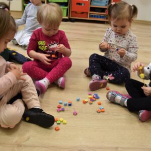 na zajęciach Montessori Amisiaki rozwijały swoją motorykę małą. Każdy mógł zająć się tym co lubi- przesypywaniem, nawlekaniem, przyczepianiem.