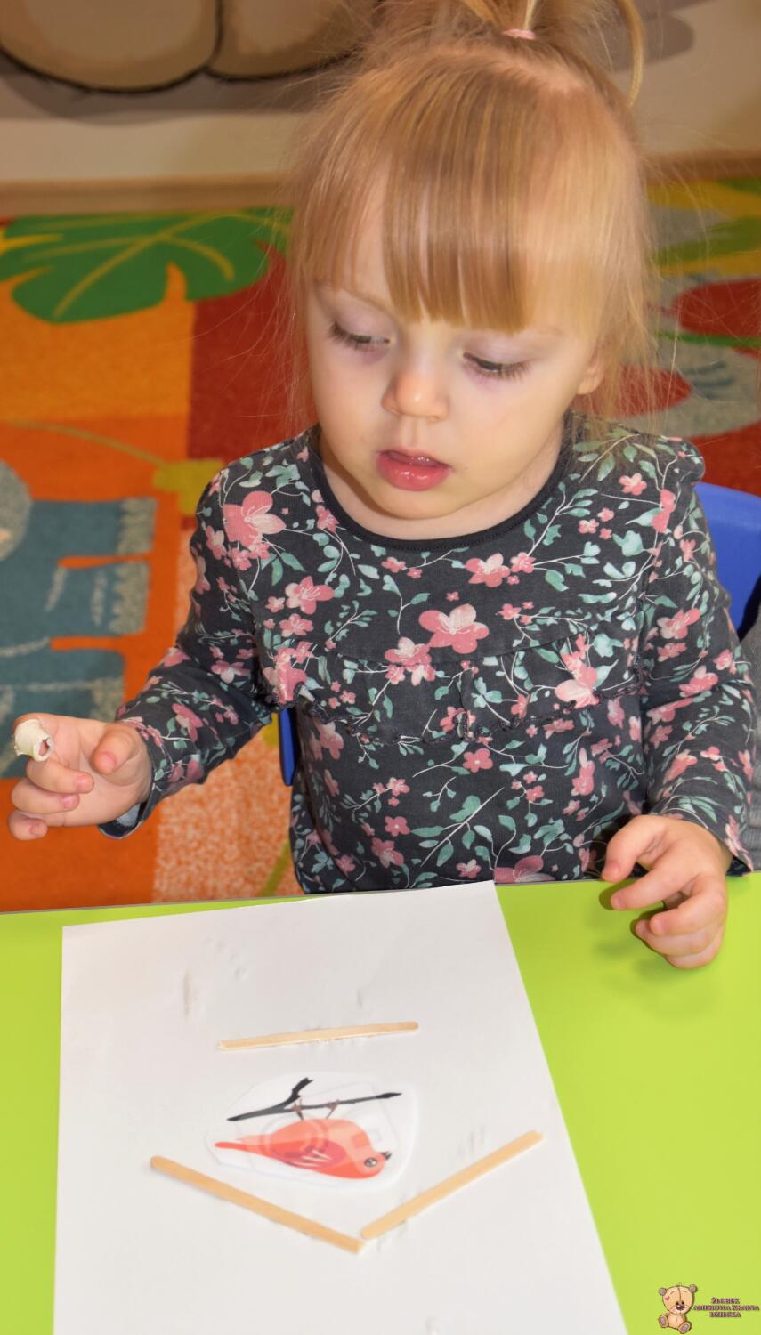 W tym tygodniu rozmawiamy o zwierzętach. Dzisiaj nasze AMISIAKI wykonały z pomocą cioci Sylwii pracę plastyczną -karmnik z patyczków do lodów k których zamieszkał kolorowy ptaszek.![]()