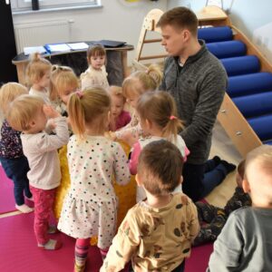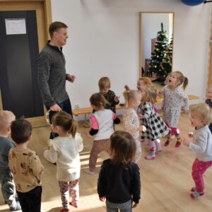 Dziś na rozgrzewkę trochę pobiegaliśmy, chodziliśmy jak niedźwiadki i skakaliśmy