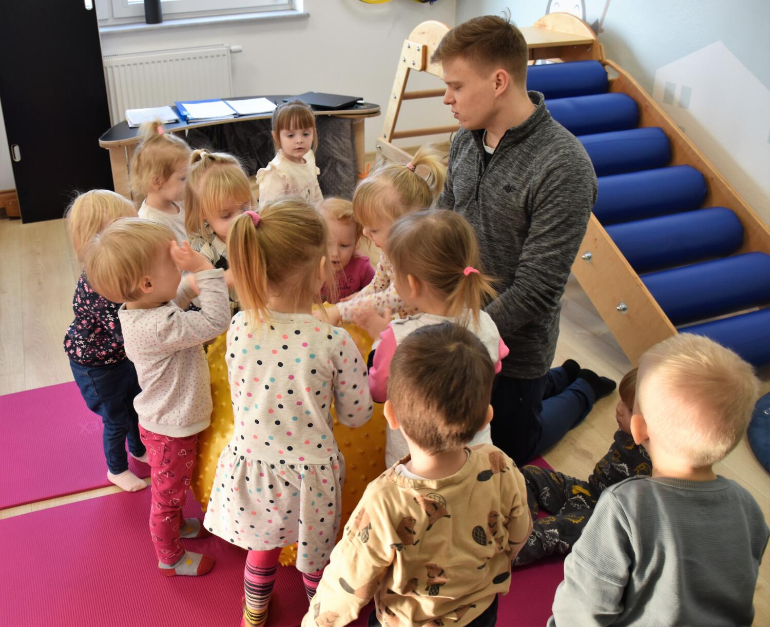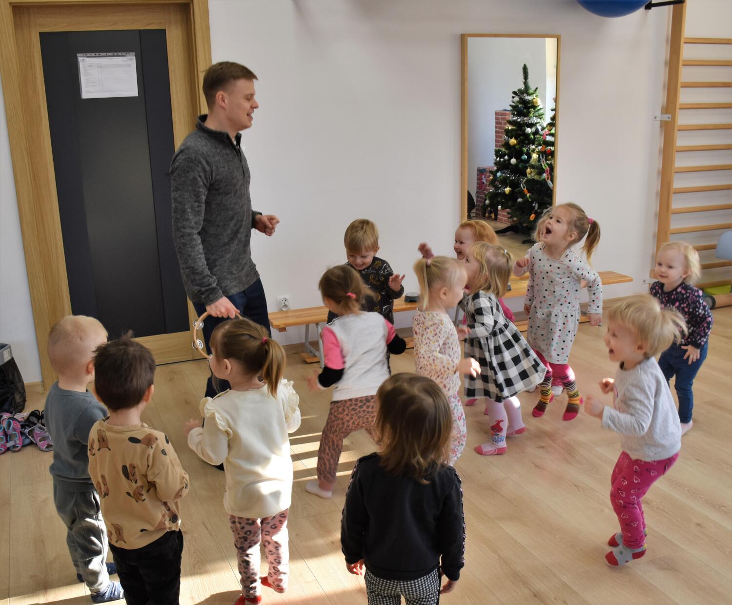 Dziś na rozgrzewkę trochę pobiegaliśmy, chodziliśmy jak niedźwiadki i skakaliśmy