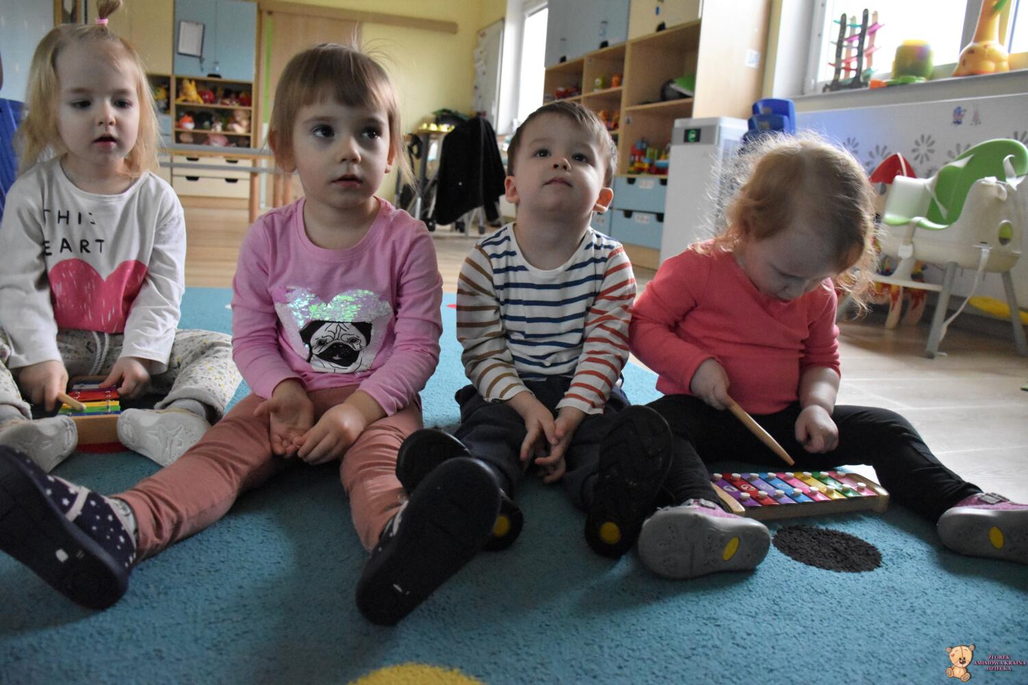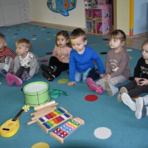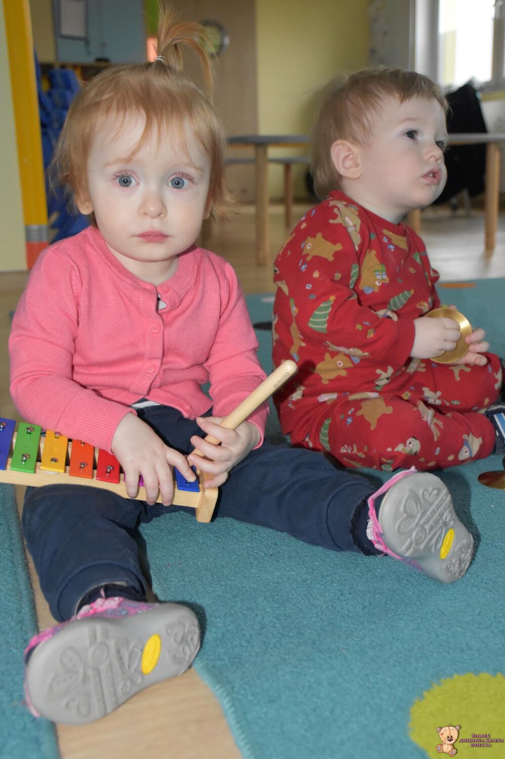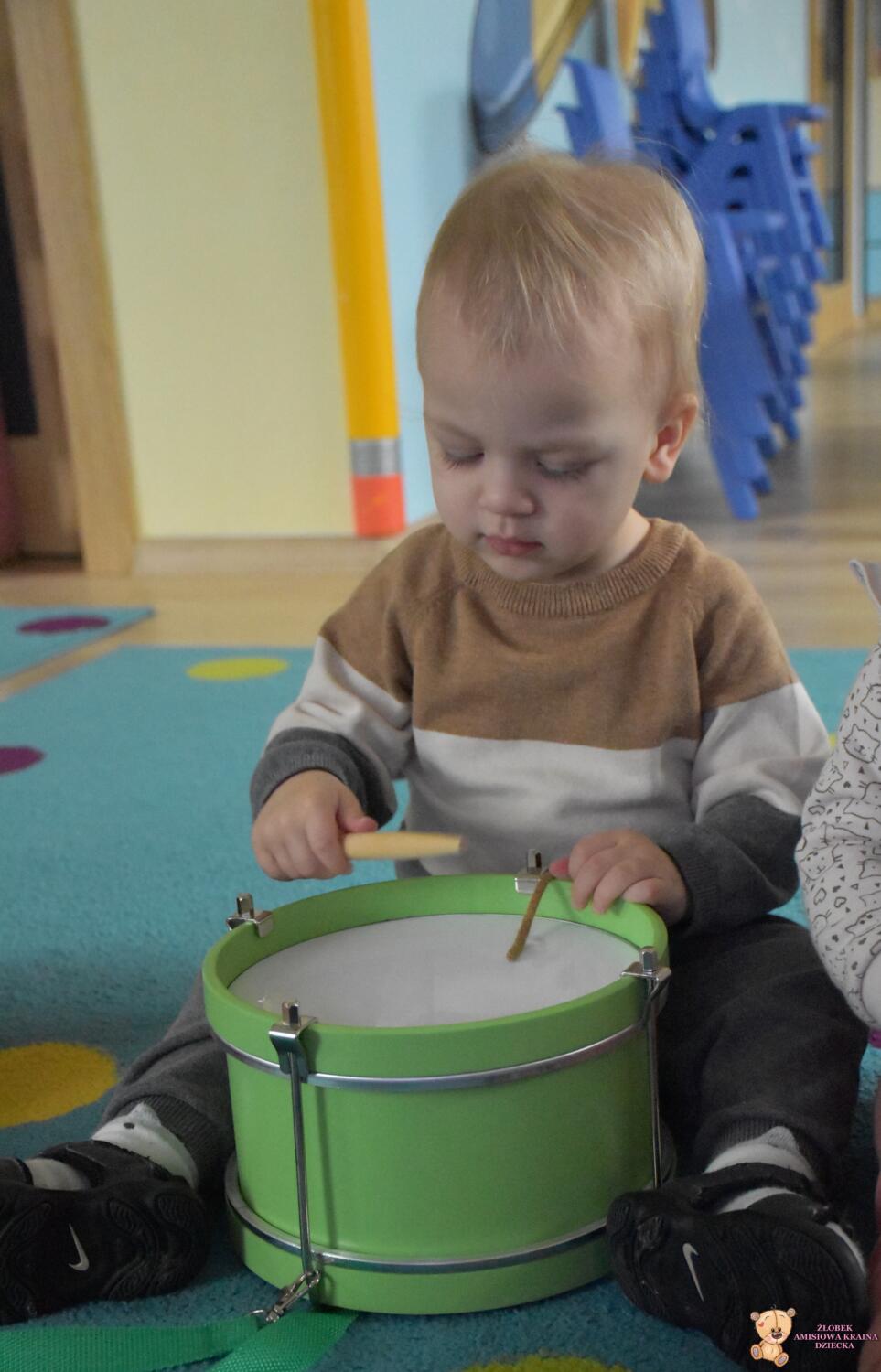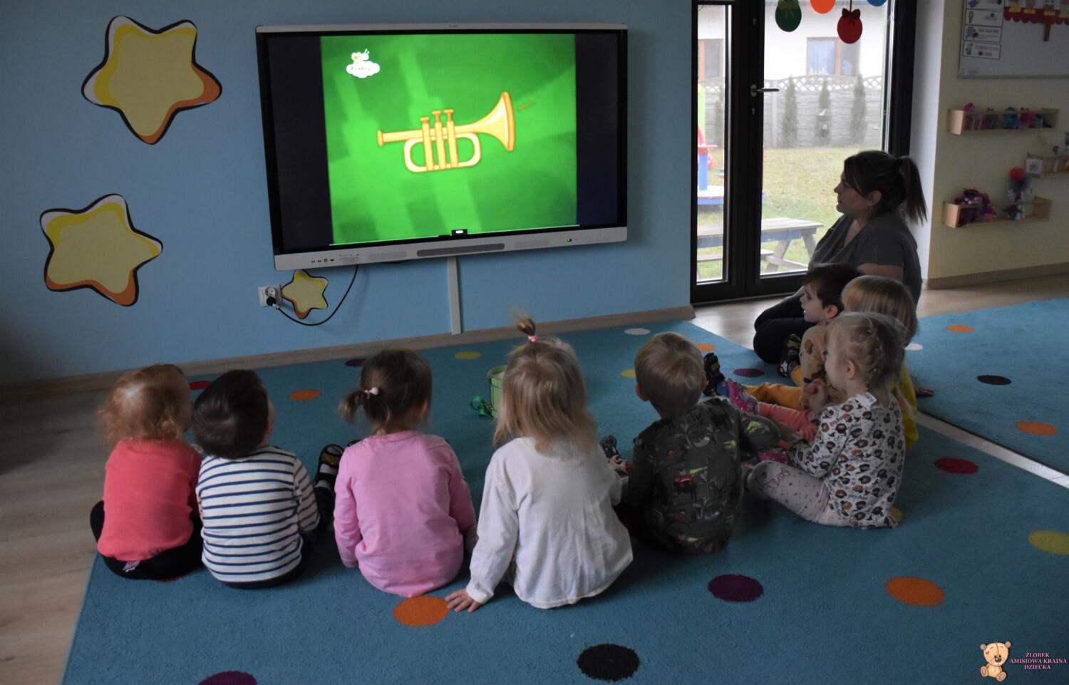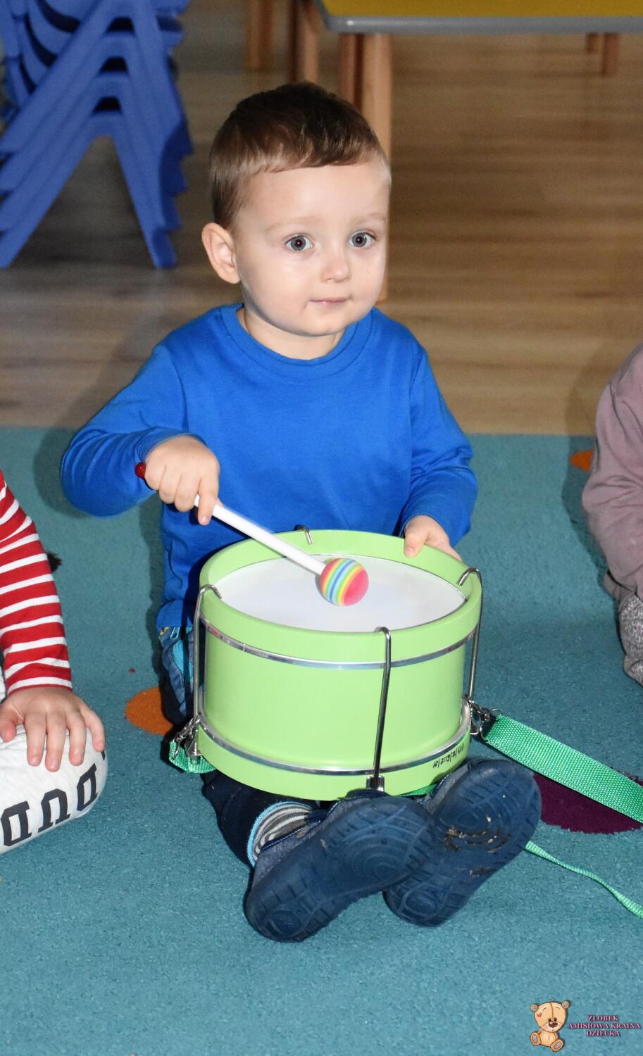 Dzisiaj na zajęciach z muzykoterapii dzieci wybrały się w muzyczny świat instrumentów z małym Ludwikiem. Na ekranie monitora pokazywały nam się różne instrumenty, ich brzmienie, budowa i sposób gry. Ciocia również przyniosła dla nas niektóre instrumenty: bębenek, ksylofon( cymbały), tamburyn, gitarę i talerze.. Choć nazwa i sposób gry była trudna to i tak sobie świetnie poradziliśmy. Uwielbiamy zabawę z instrumentami.