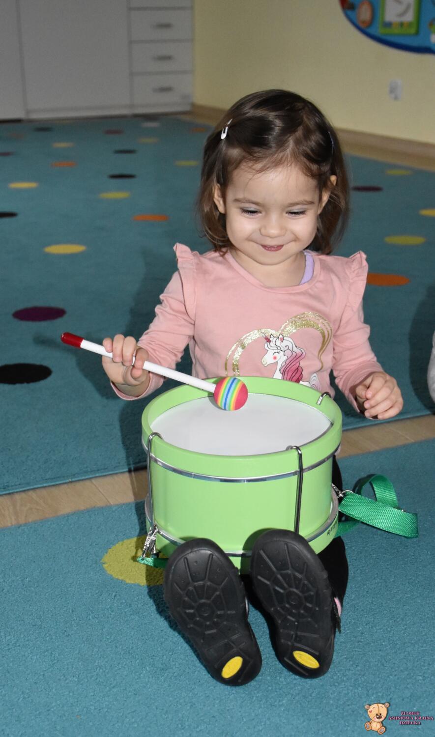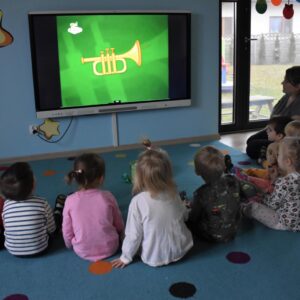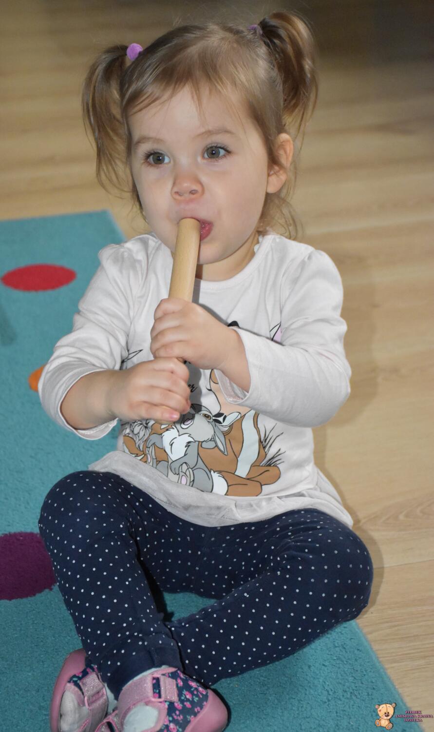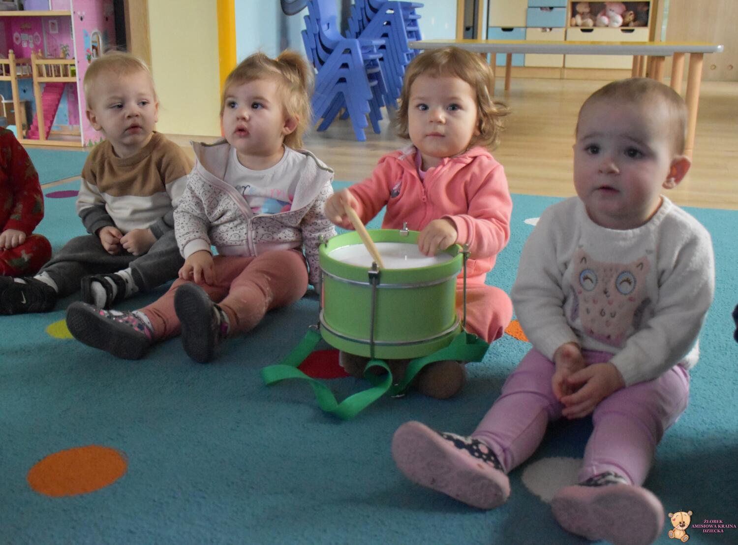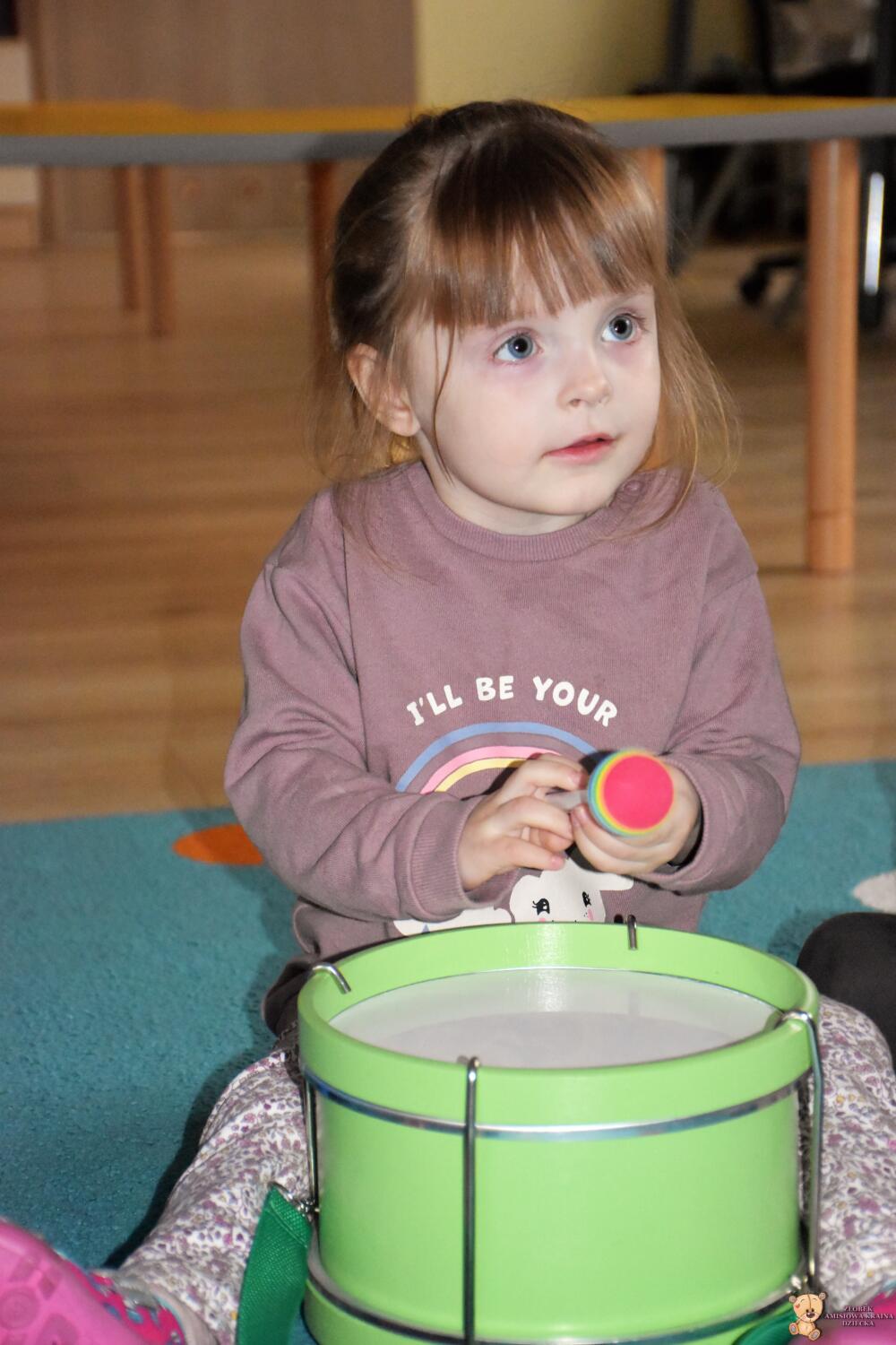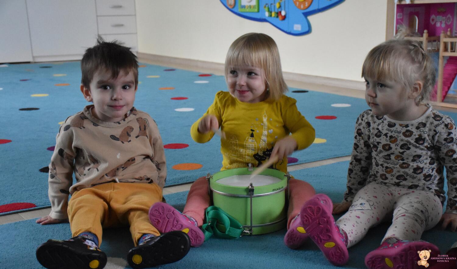 Dzisiaj na zajęciach z muzykoterapii dzieci wybrały się w muzyczny świat instrumentów z małym Ludwikiem. Na ekranie monitora pokazywały nam się różne instrumenty, ich brzmienie, budowa i sposób gry. Ciocia również przyniosła dla nas niektóre instrumenty: bębenek, ksylofon( cymbały), tamburyn, gitarę i talerze.. Choć nazwa i sposób gry była trudna to i tak sobie świetnie poradziliśmy. Uwielbiamy zabawę z instrumentami.