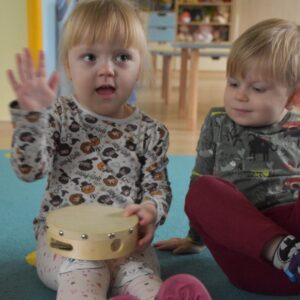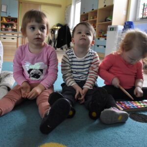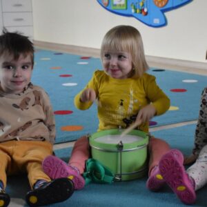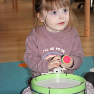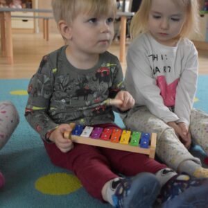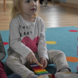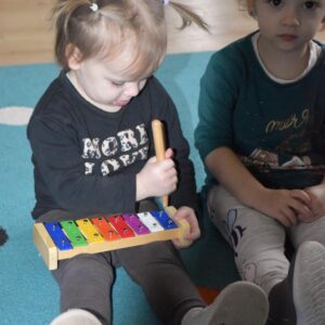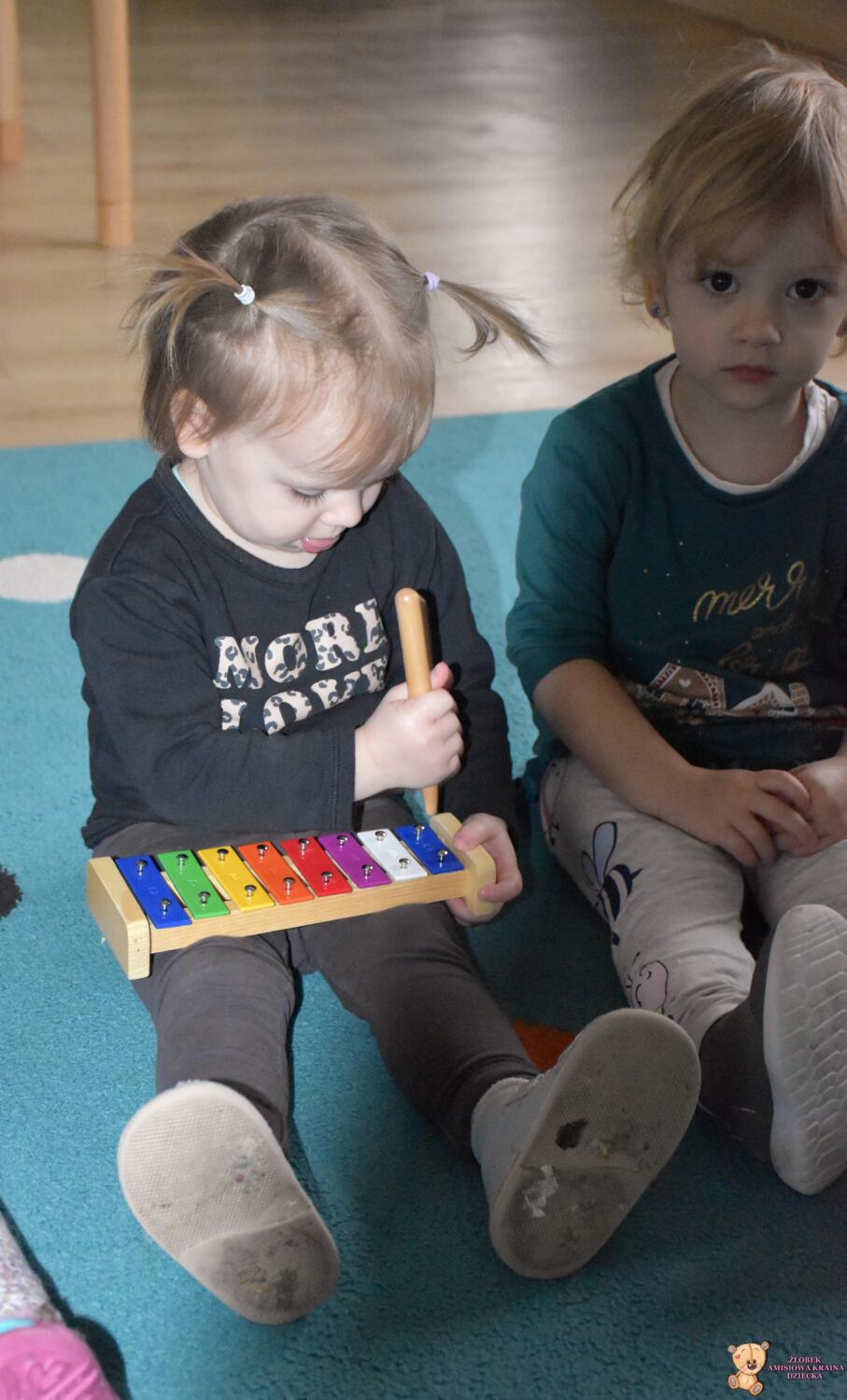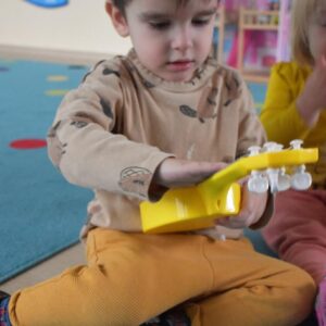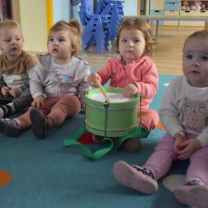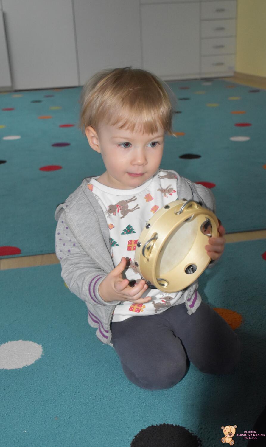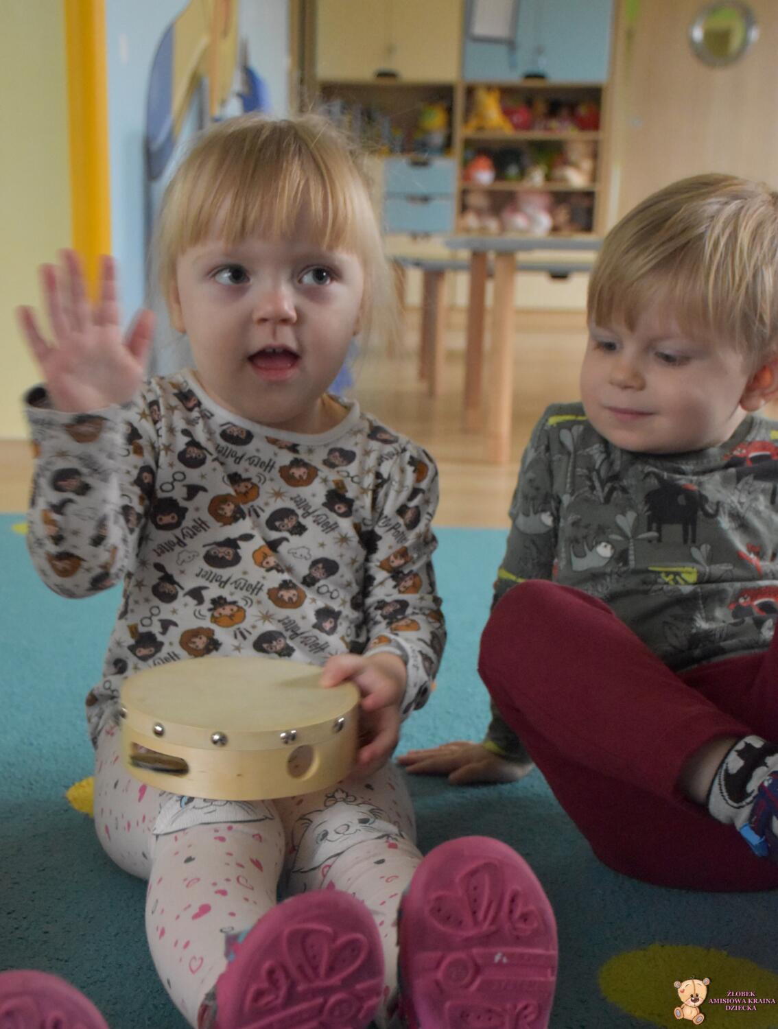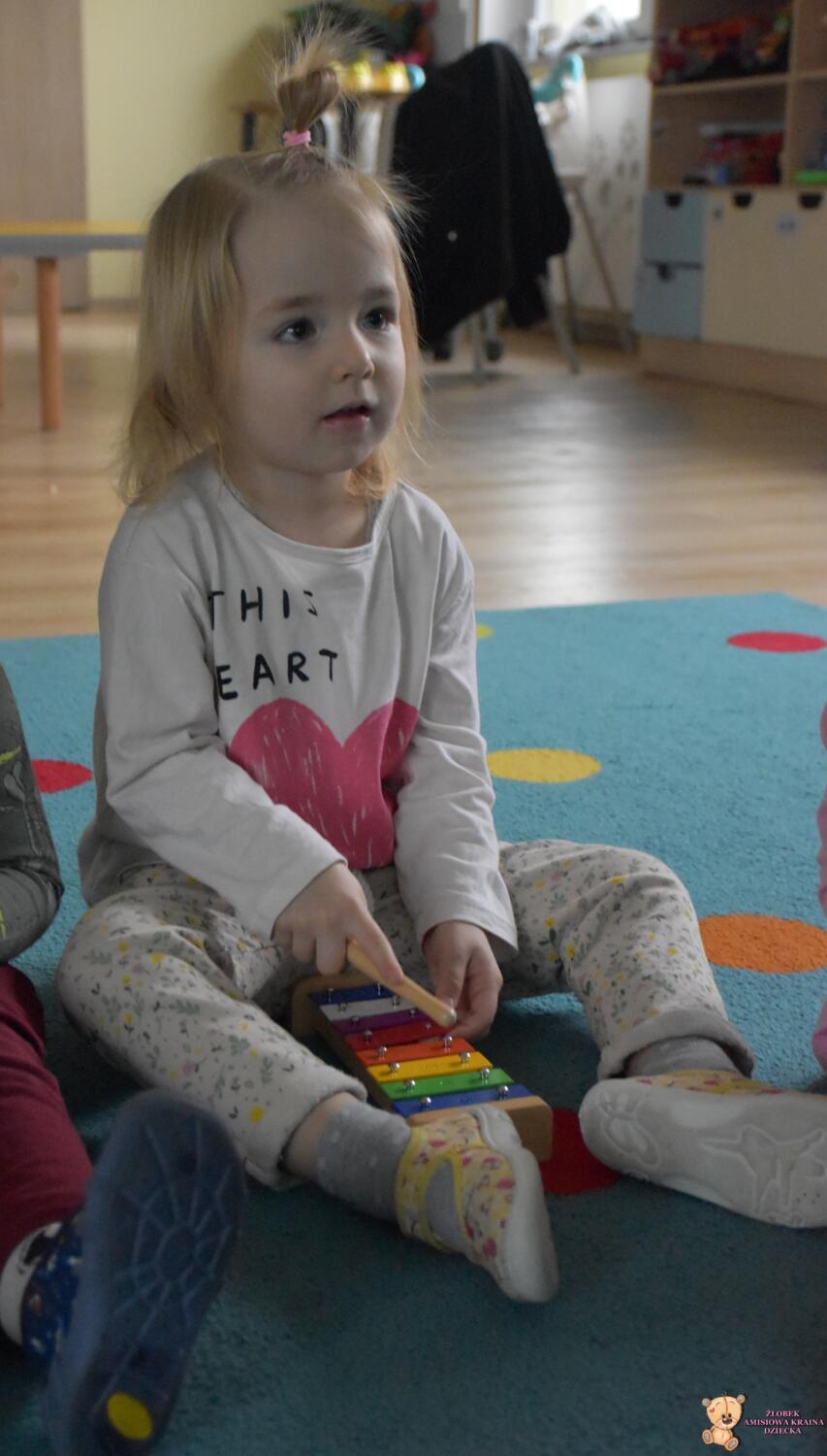 Dzisiaj na zajęciach z muzykoterapii dzieci wybrały się w muzyczny świat instrumentów z małym Ludwikiem. Na ekranie monitora pokazywały nam się różne instrumenty, ich brzmienie, budowa i sposób gry. Ciocia również przyniosła dla nas niektóre instrumenty: bębenek, ksylofon( cymbały), tamburyn, gitarę i talerze.. Choć nazwa i sposób gry była trudna to i tak sobie świetnie poradziliśmy. Uwielbiamy zabawę z instrumentami.