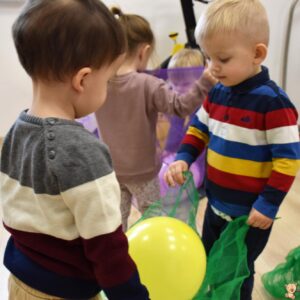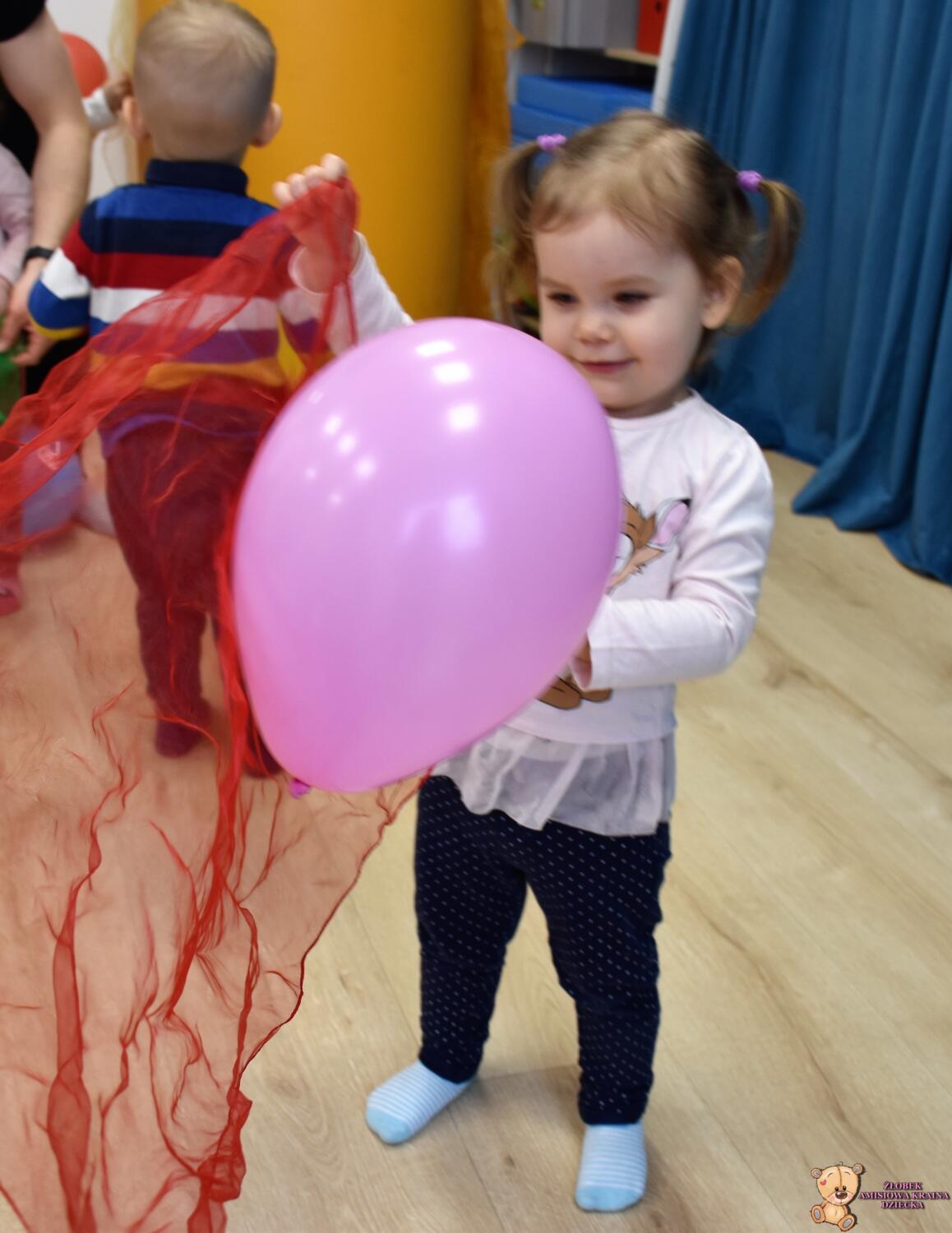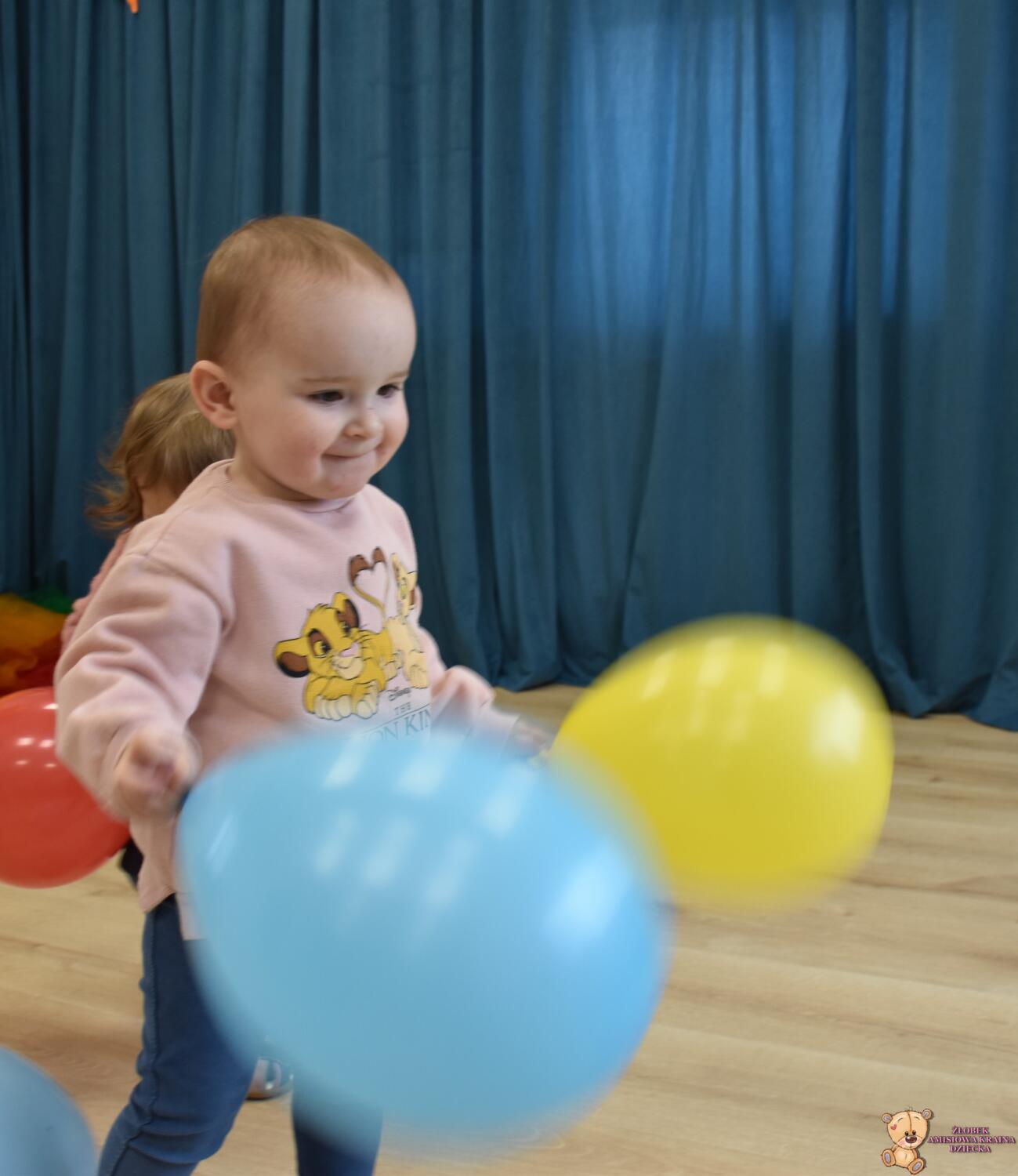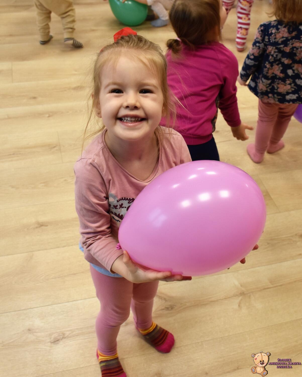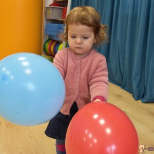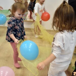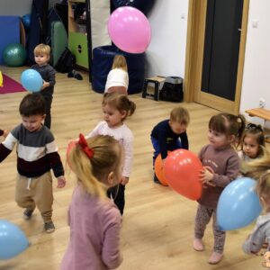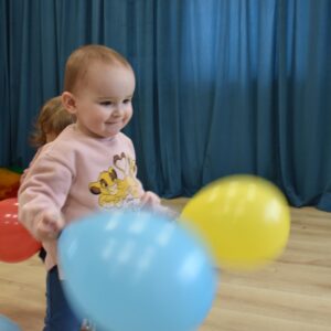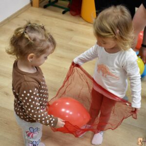Dzisiaj wujek zafundował nam balonowe szaleństwo!! 🙂 Ćwiczyliśmy naszą koordynację: podrzucaliśmy i łapaliśmy balon, próbowaliśmy również klaskać międzyczasie. Bawiliśmy się również w przeciskanie balonika między nogami, kopanie na stojąco i na leżąco. Ćwiczyliśmy też w parach utrzymując balon na chuście. Balony były kolorowe więc jak zawsze mogliśmy poćwiczyć naszą znajomość kolorów 🙂