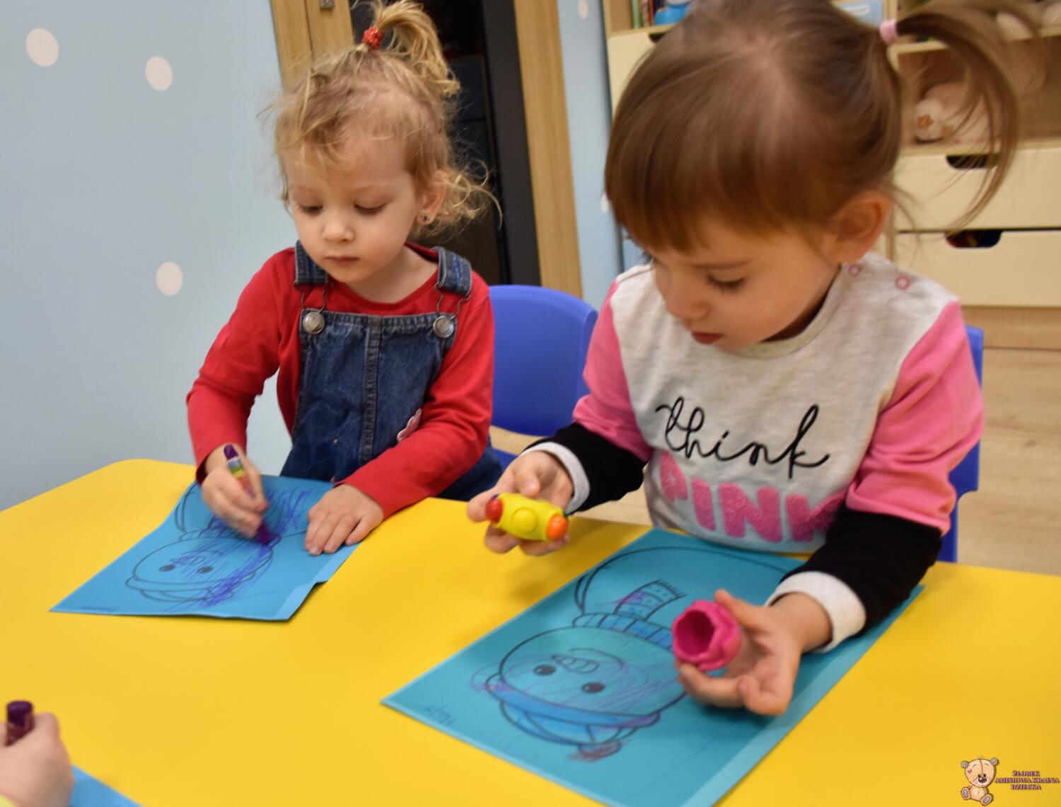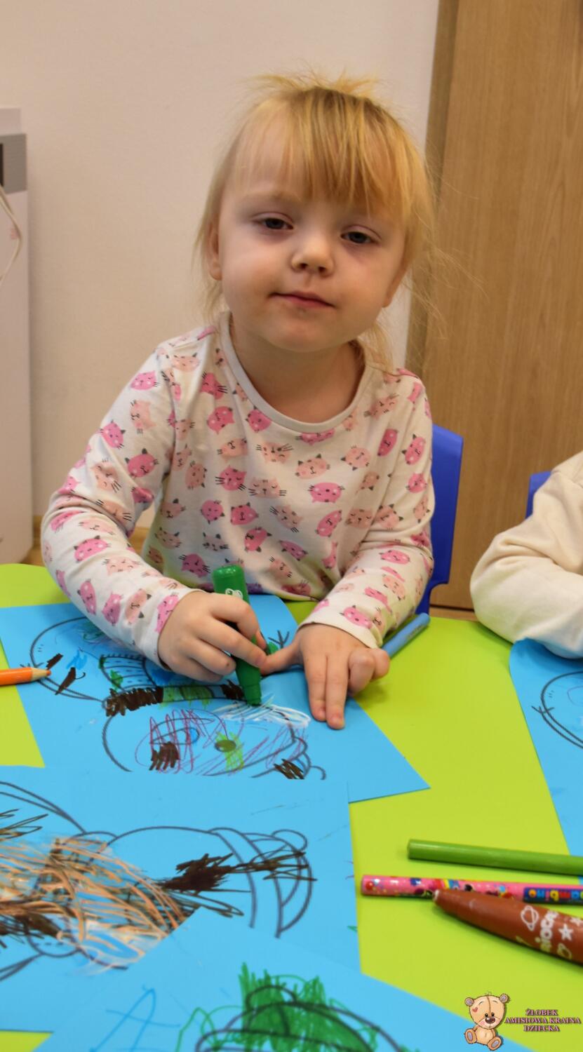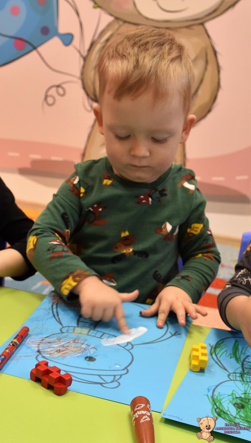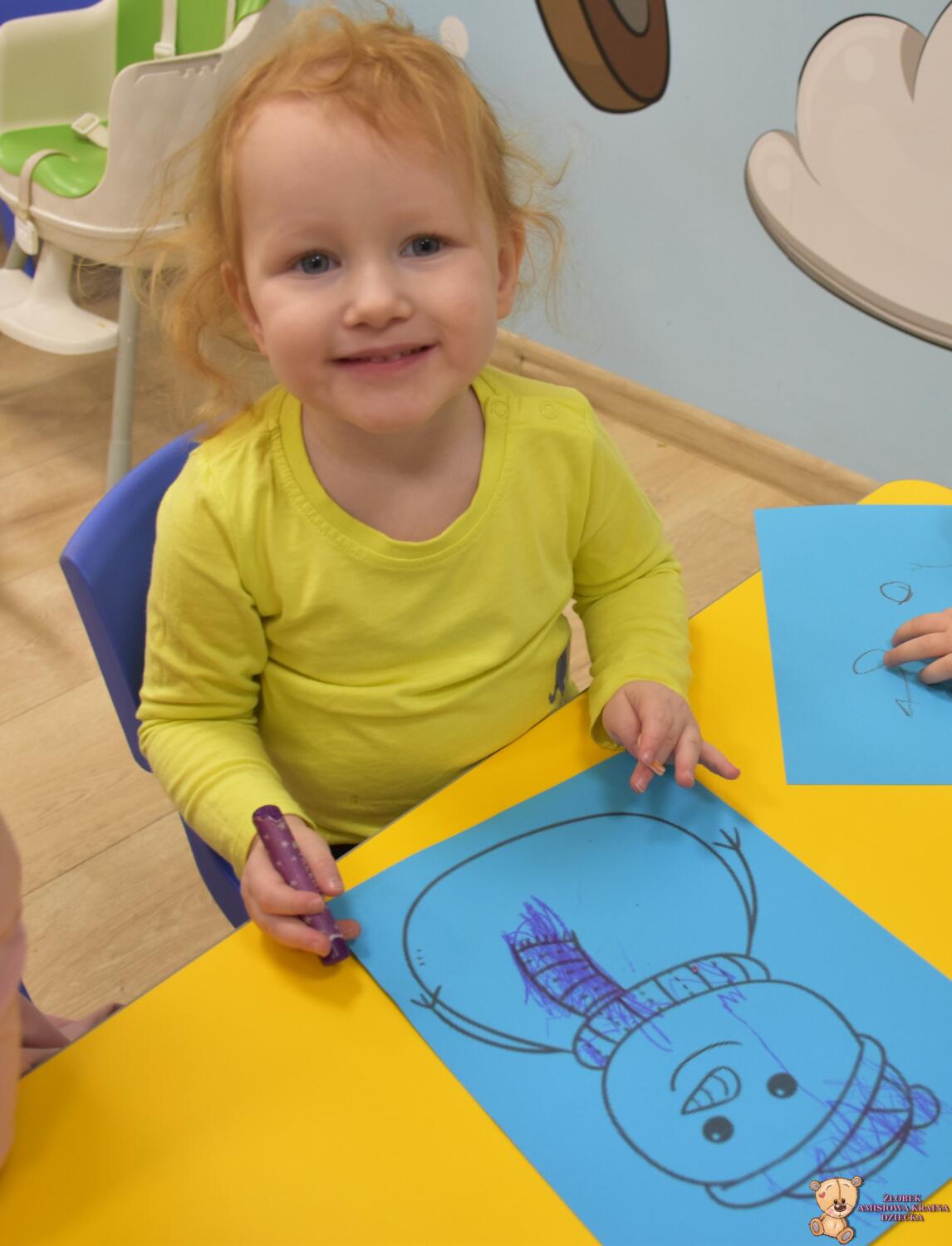 Dzisiaj pracą plastyczną było wykonanie bałwanka pasta,brokatem i kredkami.Nasze AMISIAKI zwinnie paluszkami wykonywali pracę co sprawiło ogromną frajdę ![]()