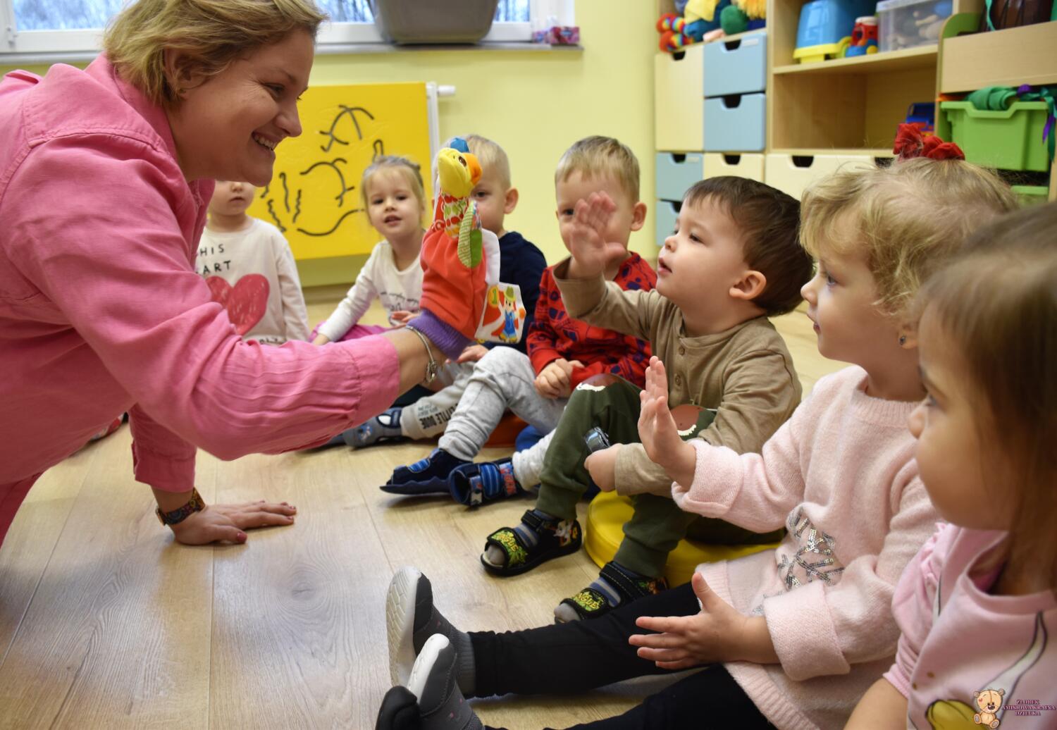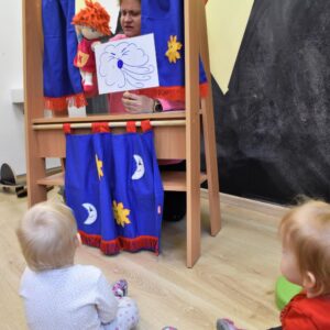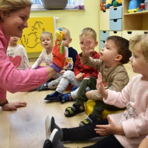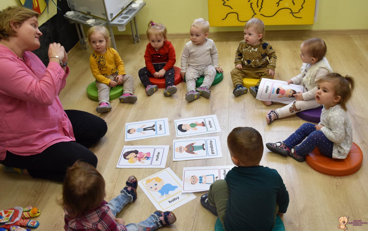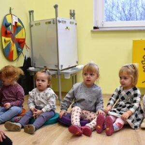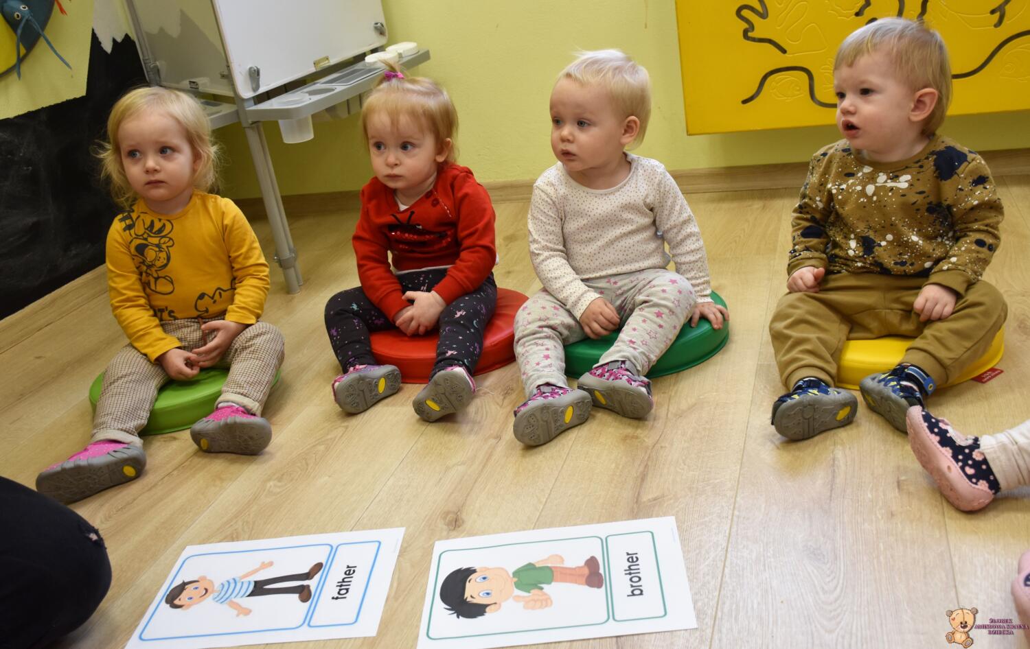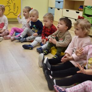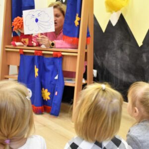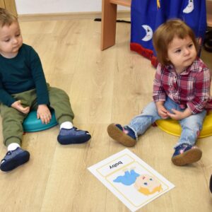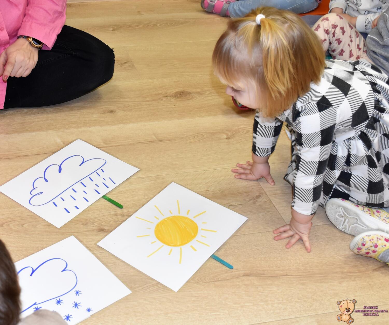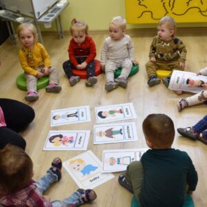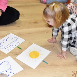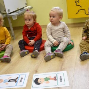 Dzisiaj na zabawach z językiem angielskim na początku powtórzyliśmy sobie nazwy członków rodziny i zaśpiewaliśmy piosenkę, którą się uczyliśmy ostatnio. Dzisiaj razem z ciocią na zajęcia przyszła Keri i rozmawialiśmy o pogodzie. Keri zaśpiewała wszystkim piosenkę nawiązującą do dzisiejszego tematu. Chyba wszyscy polubili naszego dzisiejszego gościa.