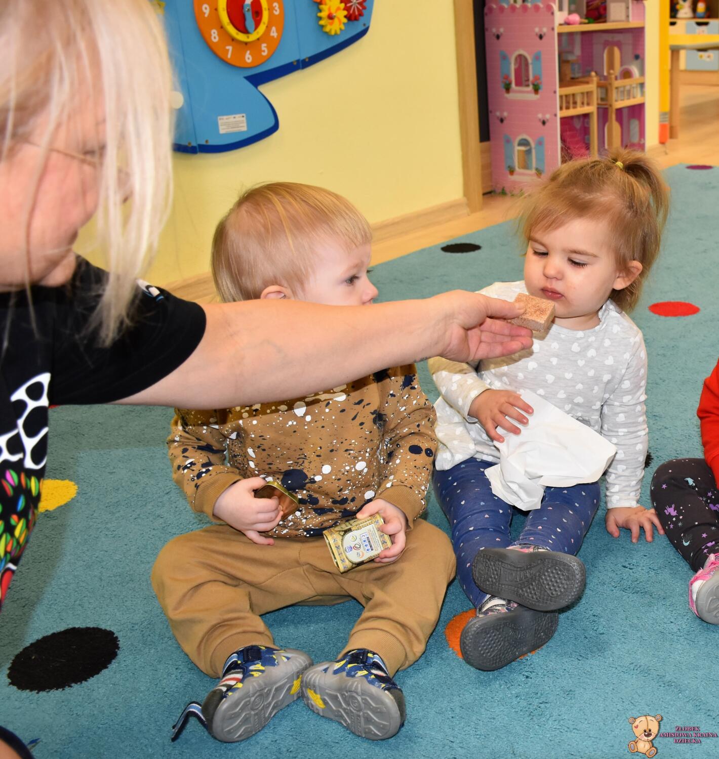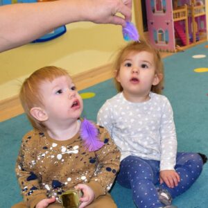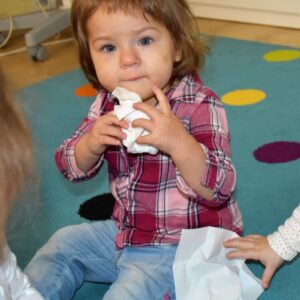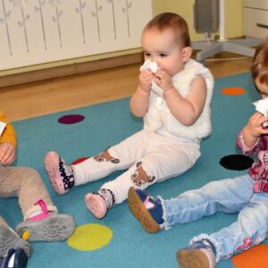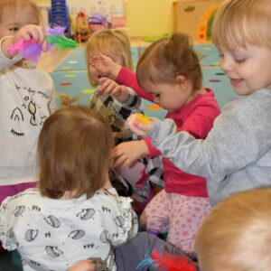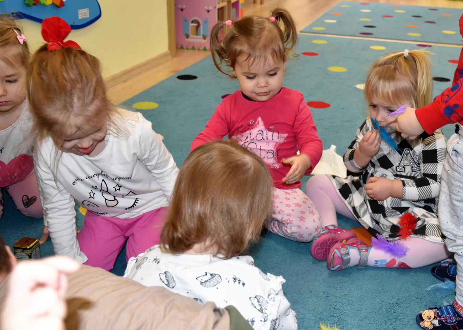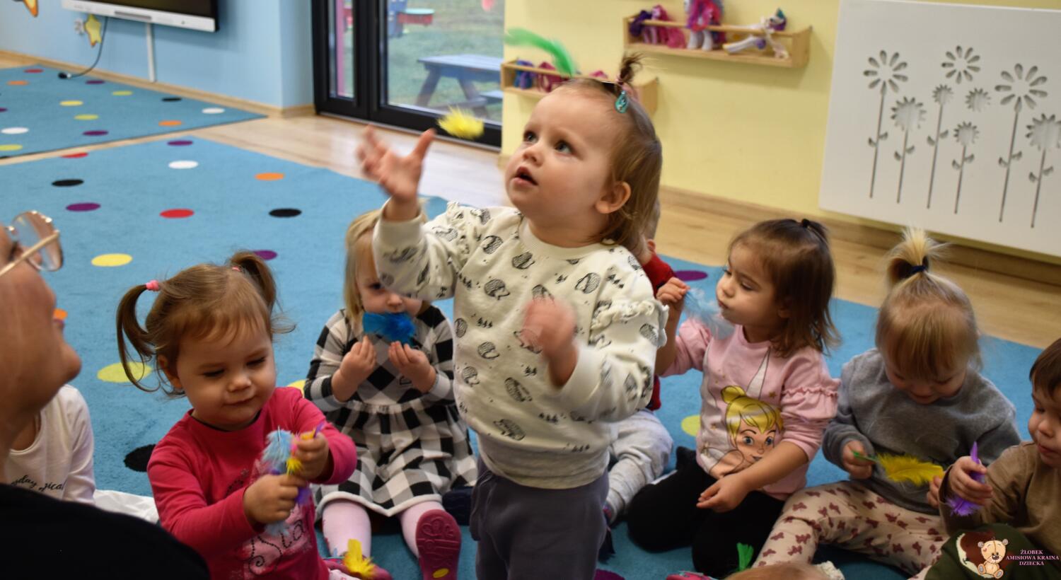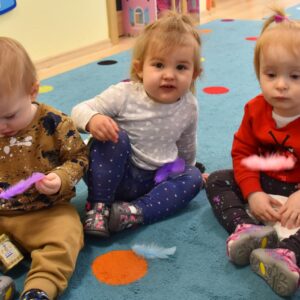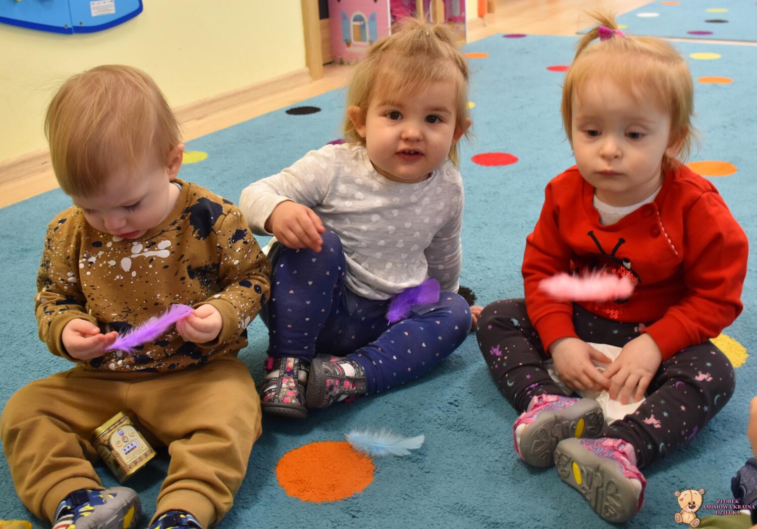 Dziś nasze Amisiaki wraz z panią pielęgniarką wykonywały wesołe eksperymenty: dmuchały w chusteczki, wąchały schowane w pudełeczku perfumy i oceniały czy podoba im się ten zapach. Na końcu zajęć bawiliśmy się piórkami, dmuchaliśmy, by unosiły się do góry, sprawiło to nam wiele radości. 🙂