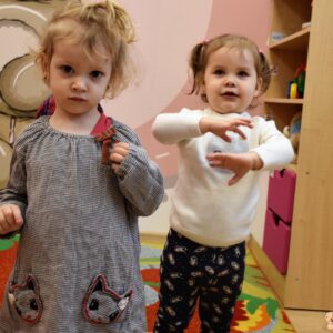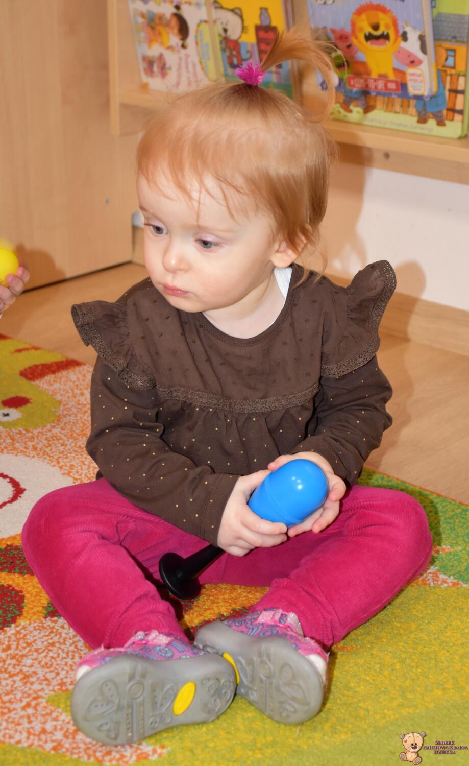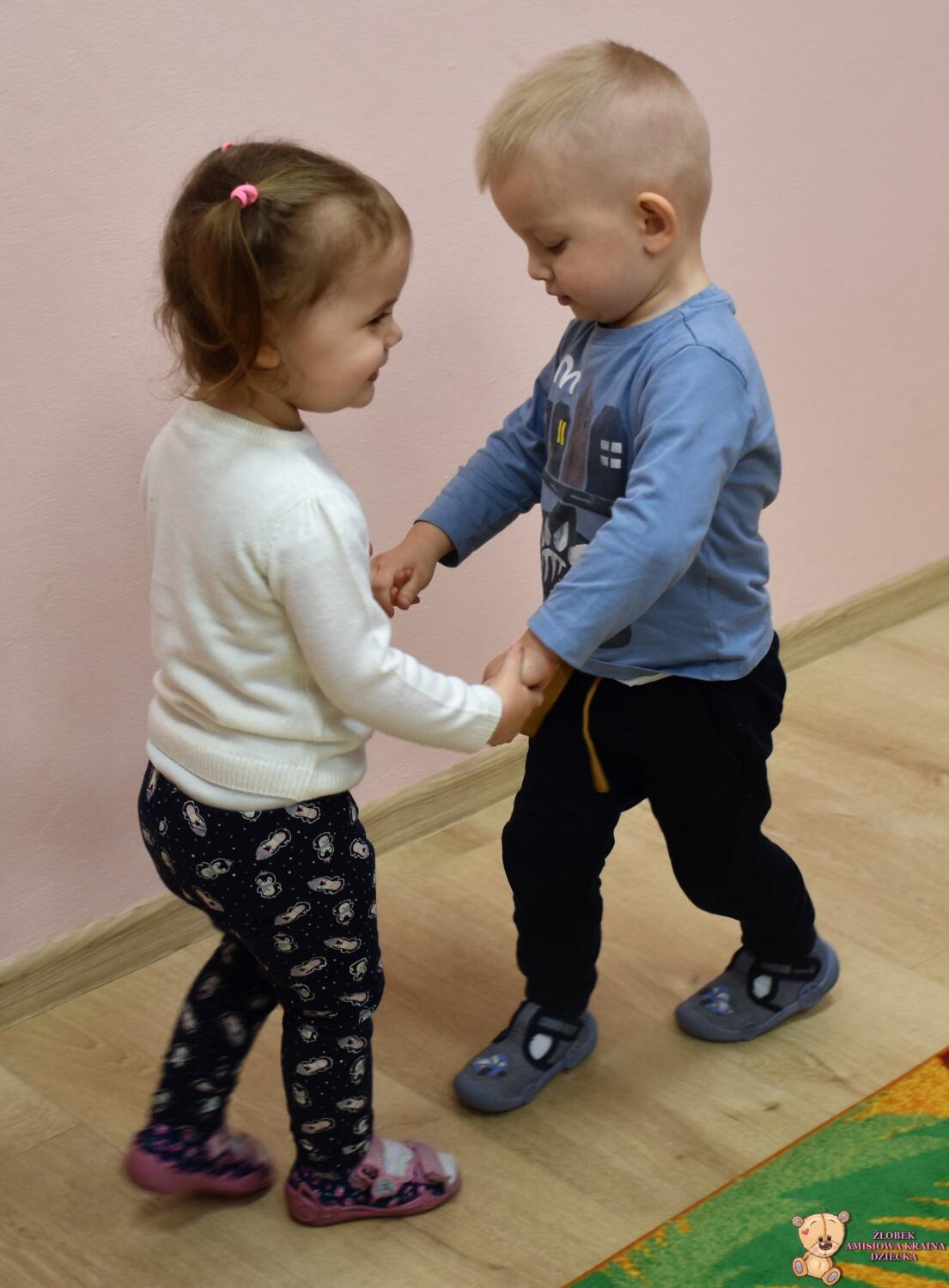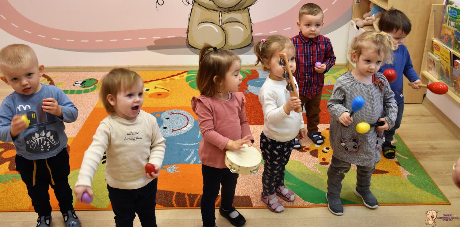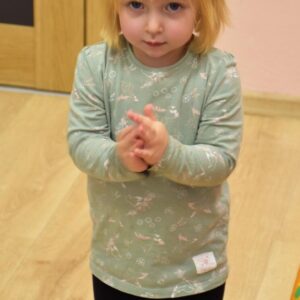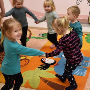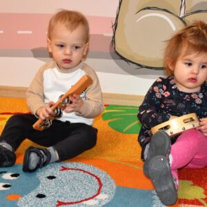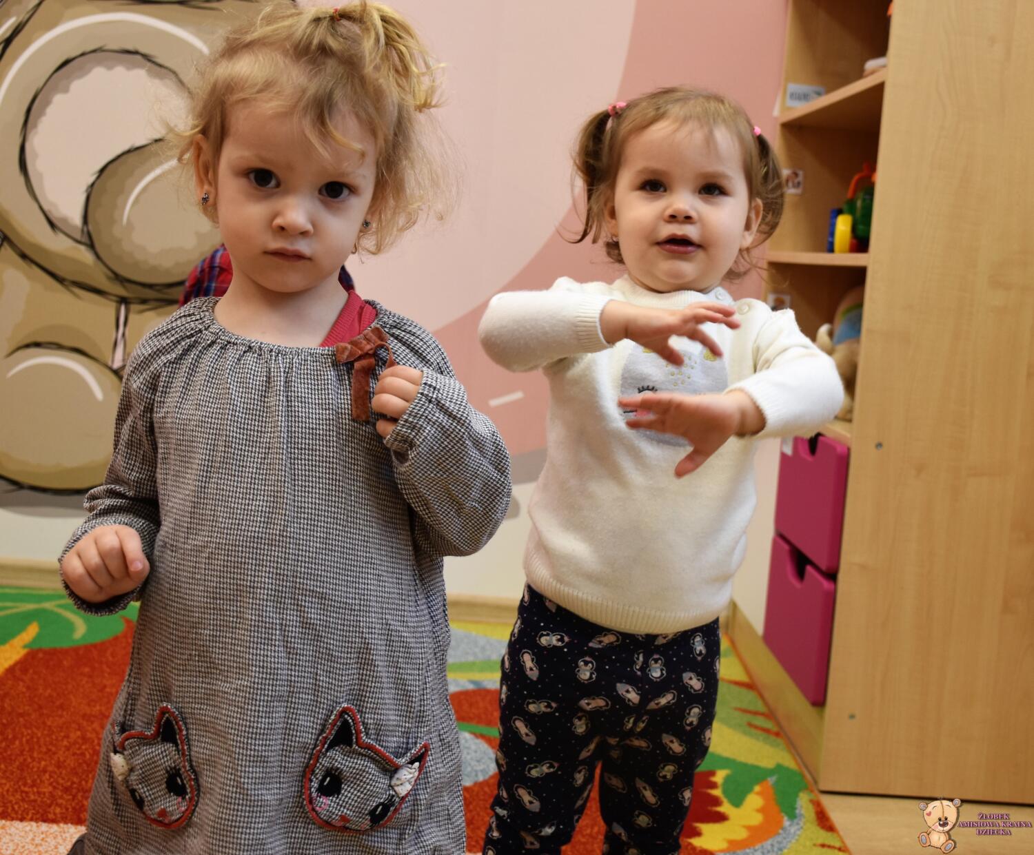 Na zajęciach muzykoterapii kontynuowaliśmy zabawy zimowe przy muzyce. Dzieci wraz ciocią Pauliną wykonywały różne figury taneczne, pokazując przy tym swoją gibkość ciała. Zamieniliśmy się w Pingwinka, który pokazywał jak się pływa, zjeżdża na brzuszku i podskakuje. Natomiast zabawa z wróbelkiem była spokojniejsza lecz wymagała większej spostrzegawczości. Z instrumentami graliśmy raz głośno, raz cicho, ćwicząc przy okazji rytmizację ,a na koniec porównaliśmy barwy instrumentów.