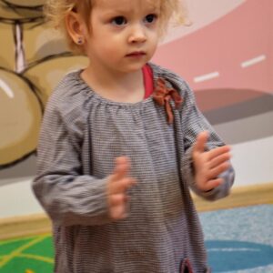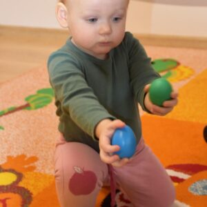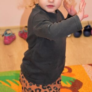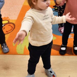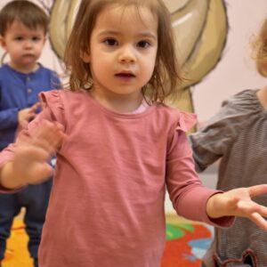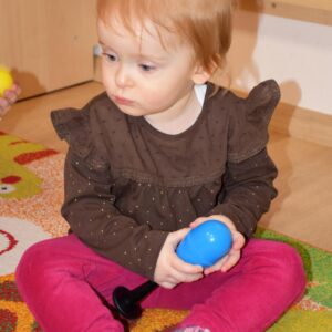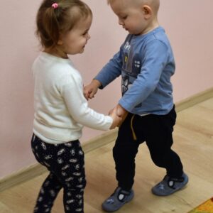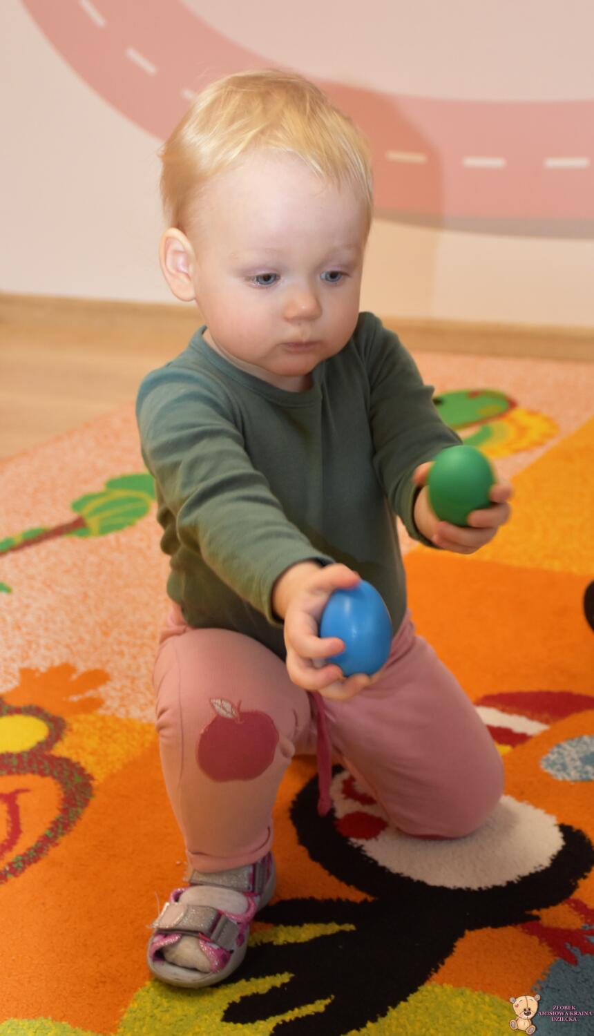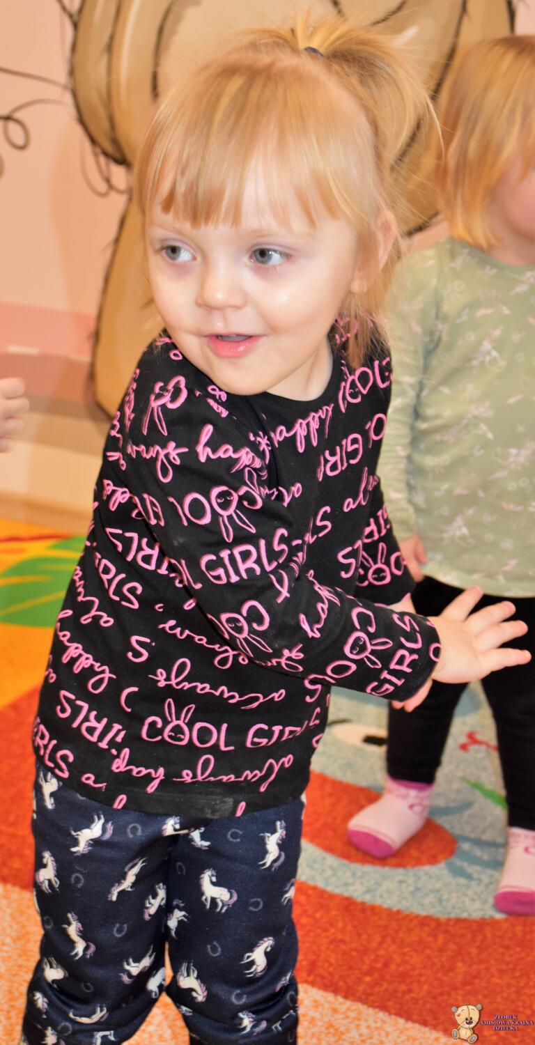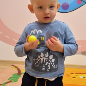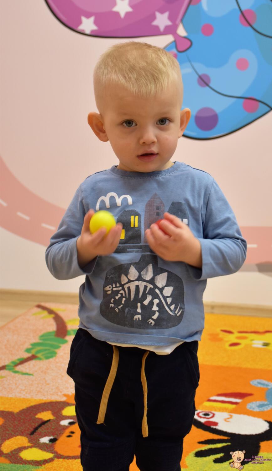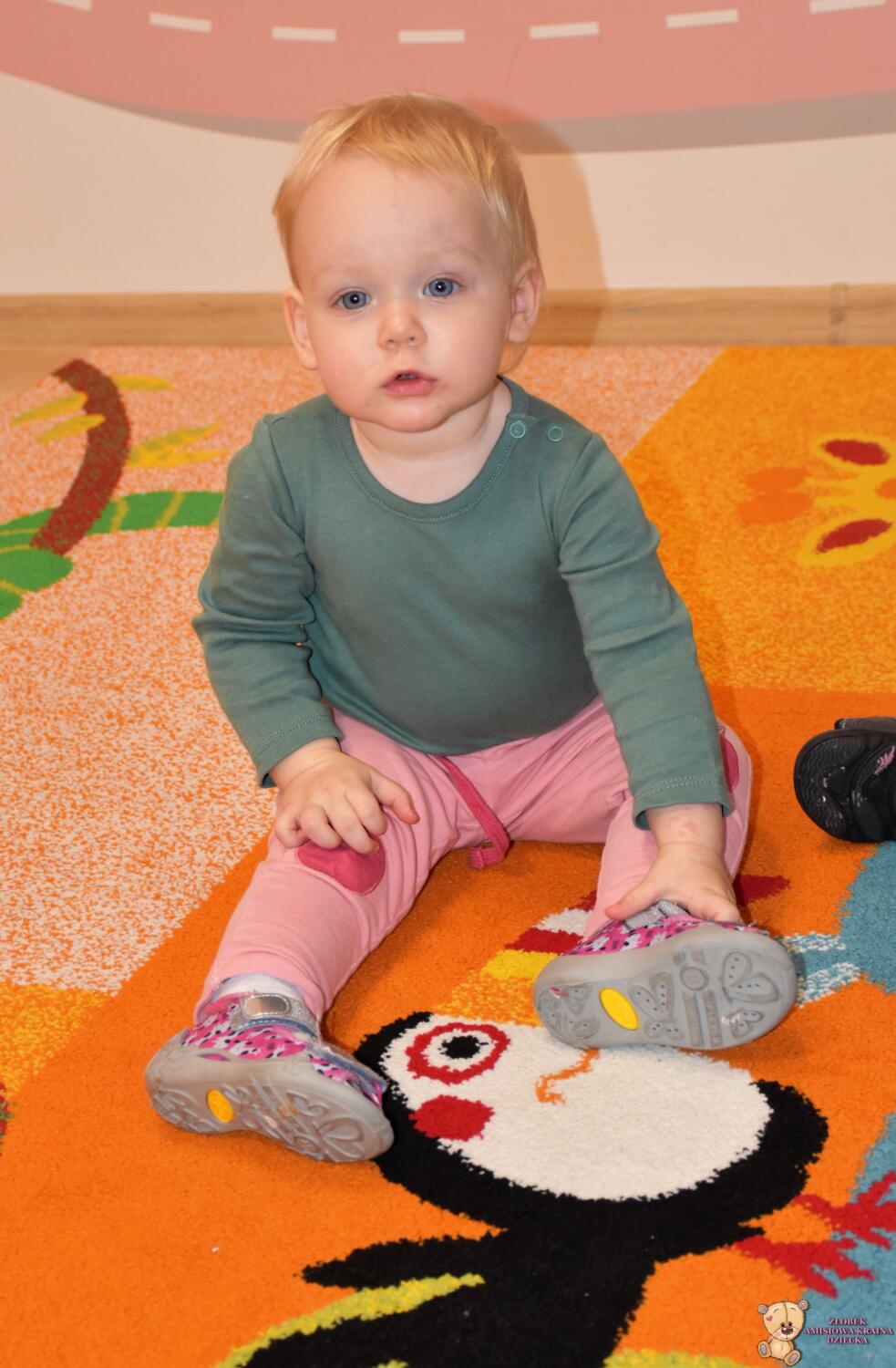 Na zajęciach muzykoterapii kontynuowaliśmy zabawy zimowe przy muzyce. Dzieci wraz ciocią Pauliną wykonywały różne figury taneczne, pokazując przy tym swoją gibkość ciała. Zamieniliśmy się w Pingwinka, który pokazywał jak się pływa, zjeżdża na brzuszku i podskakuje. Natomiast zabawa z wróbelkiem była spokojniejsza lecz wymagała większej spostrzegawczości. Z instrumentami graliśmy raz głośno, raz cicho, ćwicząc przy okazji rytmizację ,a na koniec porównaliśmy barwy instrumentów.