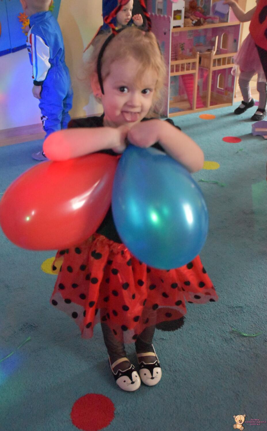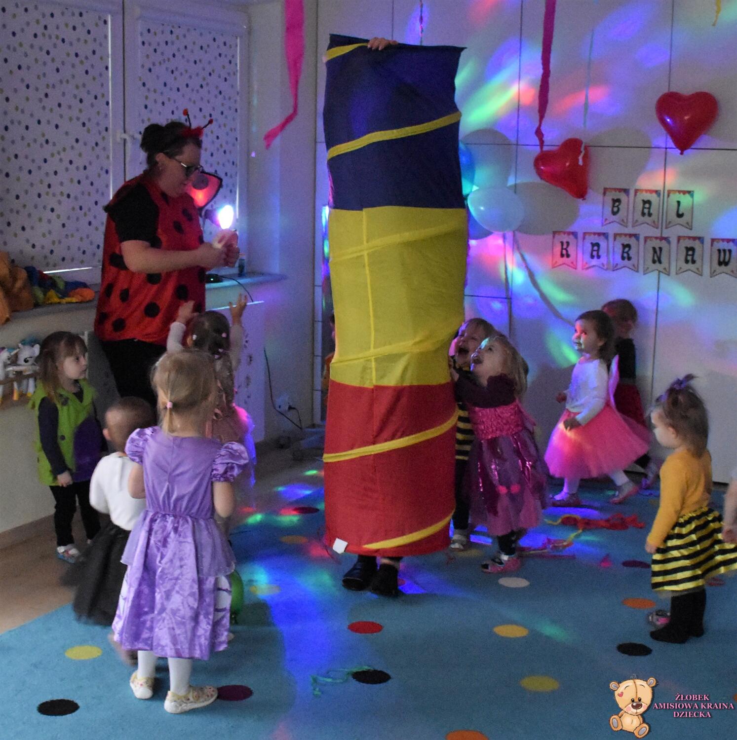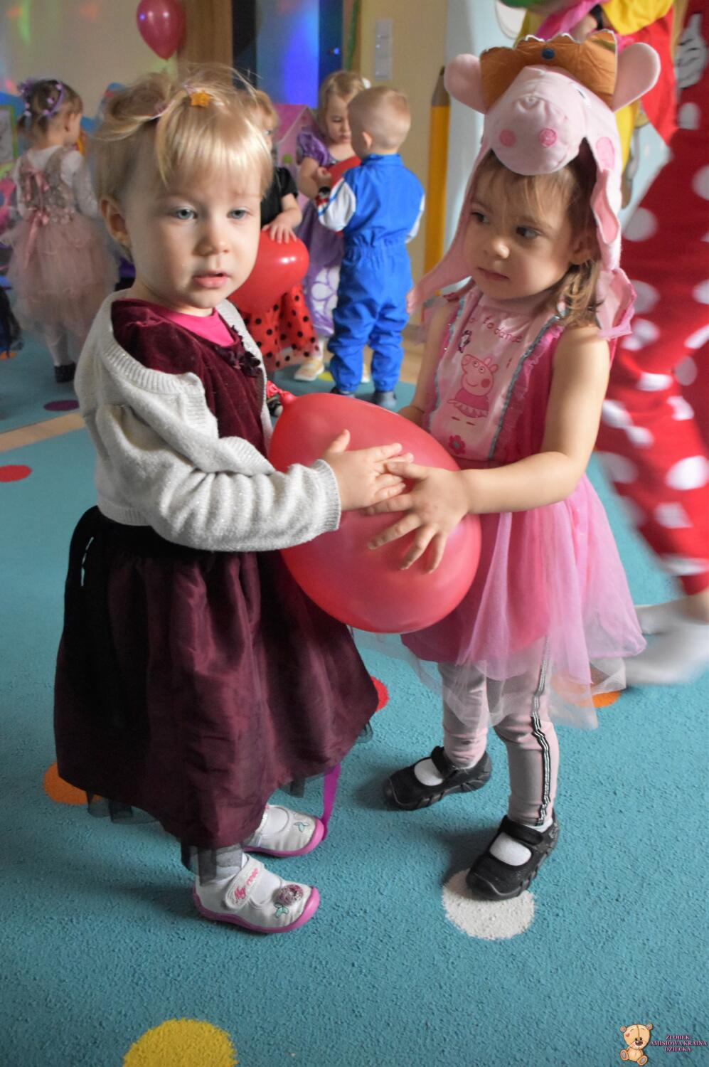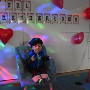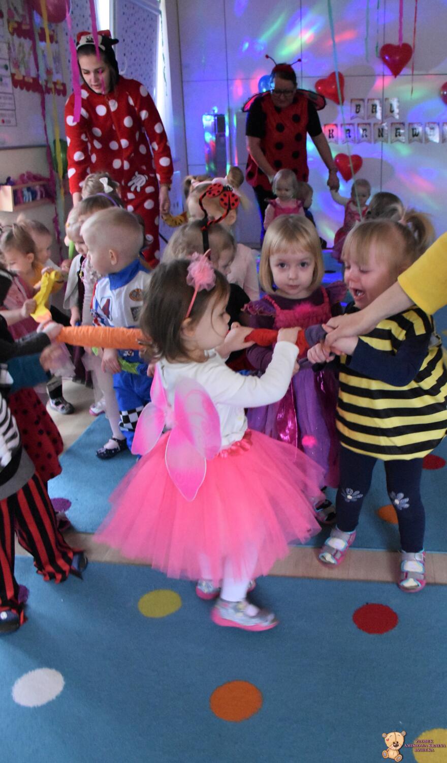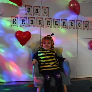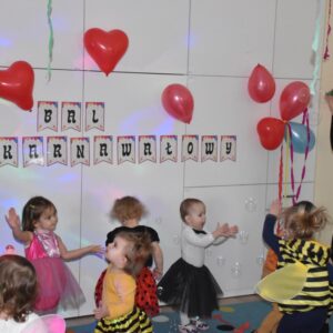 W dniu dzisiejszym w Amisiowej Krainie Dziecka odbył się bal walentynkowo- karnawałowy. Przybyły do nas dobre wróżki, księżniczki i kowboj z dzikiego zachodu. Bawiliśmy się z pszczółką Mają, biedronką, kurą i myszką Miki. Ciocie zapewniły nam szereg atrakcji m.in. przechodzenie pod liną, zabawy z balonami i hula hop. Po balu zjedliśmy przepyszny poczęstunek.