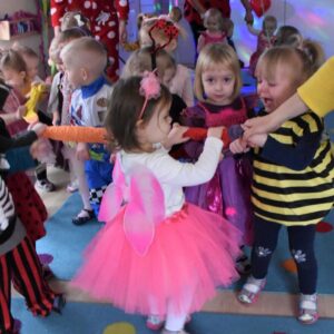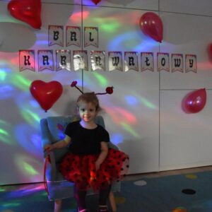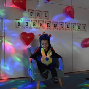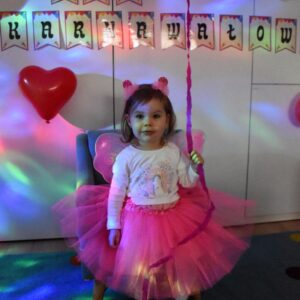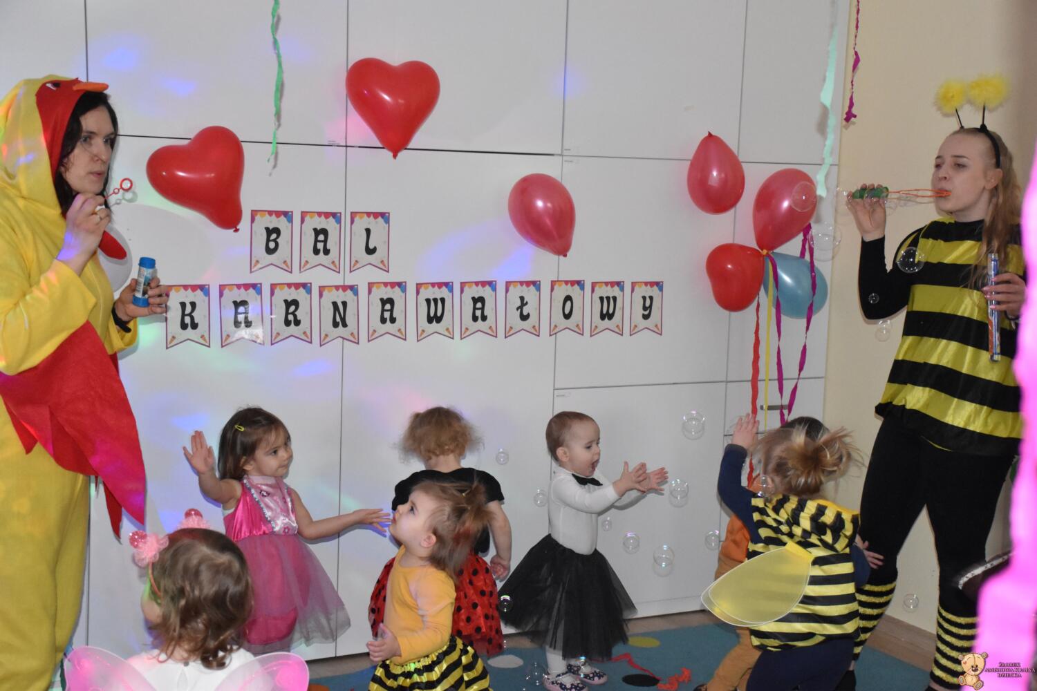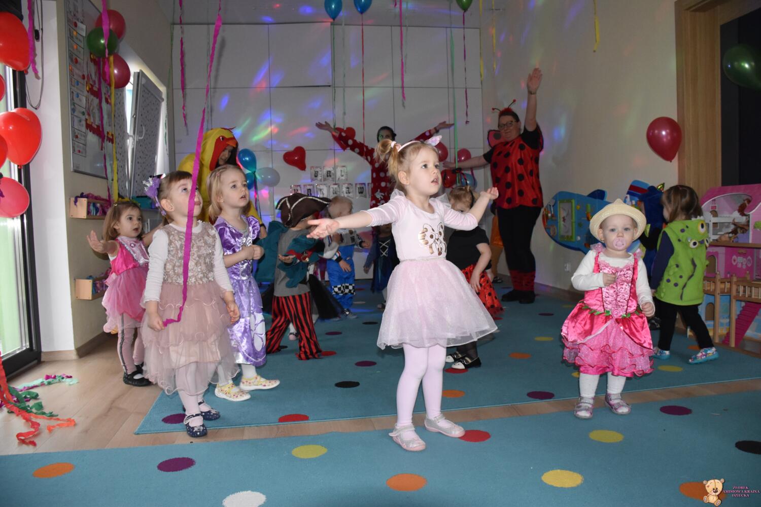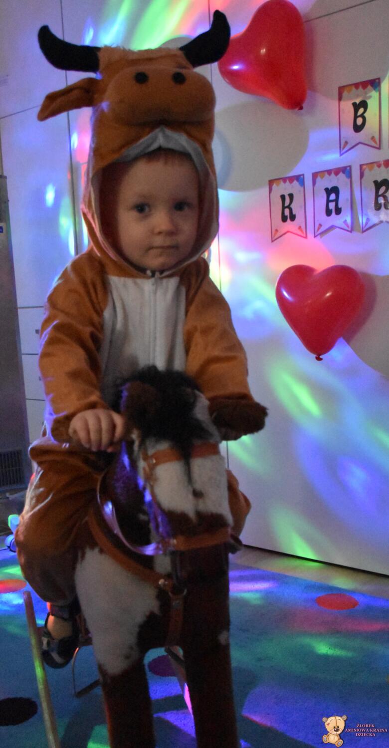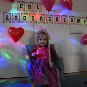 W dniu dzisiejszym w Amisiowej Krainie Dziecka odbył się bal walentynkowo- karnawałowy. Przybyły do nas dobre wróżki, księżniczki i kowboj z dzikiego zachodu. Bawiliśmy się z pszczółką Mają, biedronką, kurą i myszką Miki. Ciocie zapewniły nam szereg atrakcji m.in. przechodzenie pod liną, zabawy z balonami i hula hop. Po balu zjedliśmy przepyszny poczęstunek.