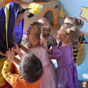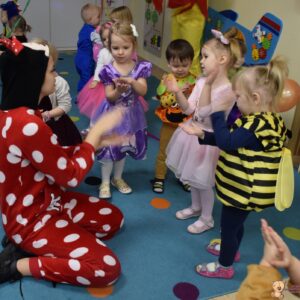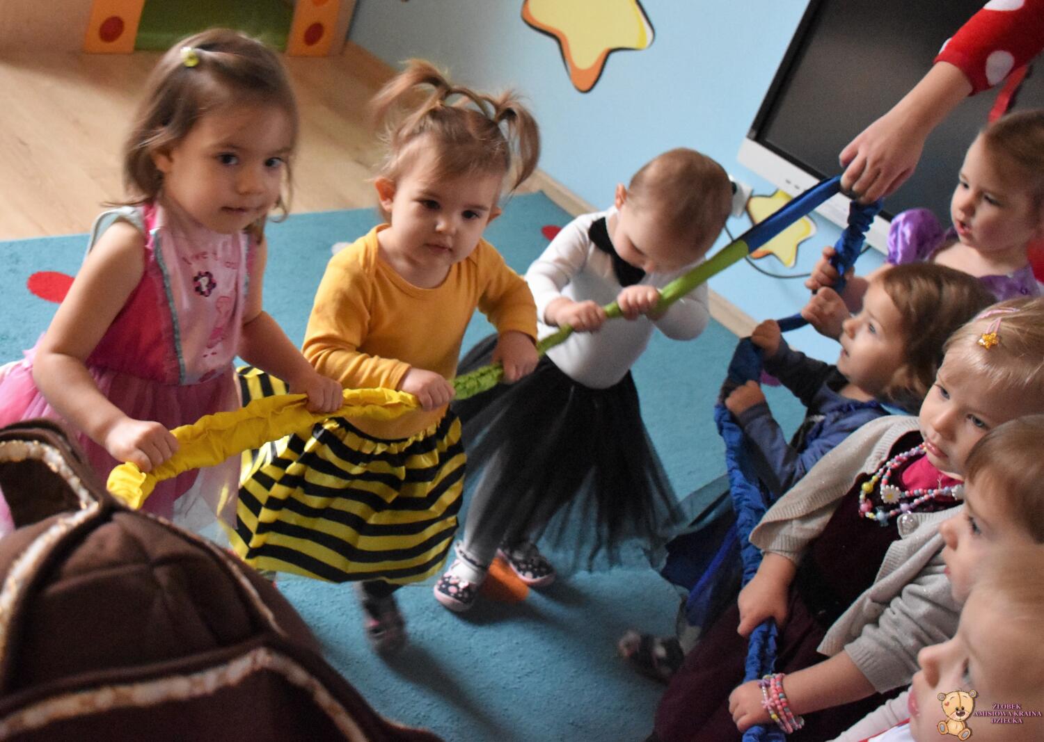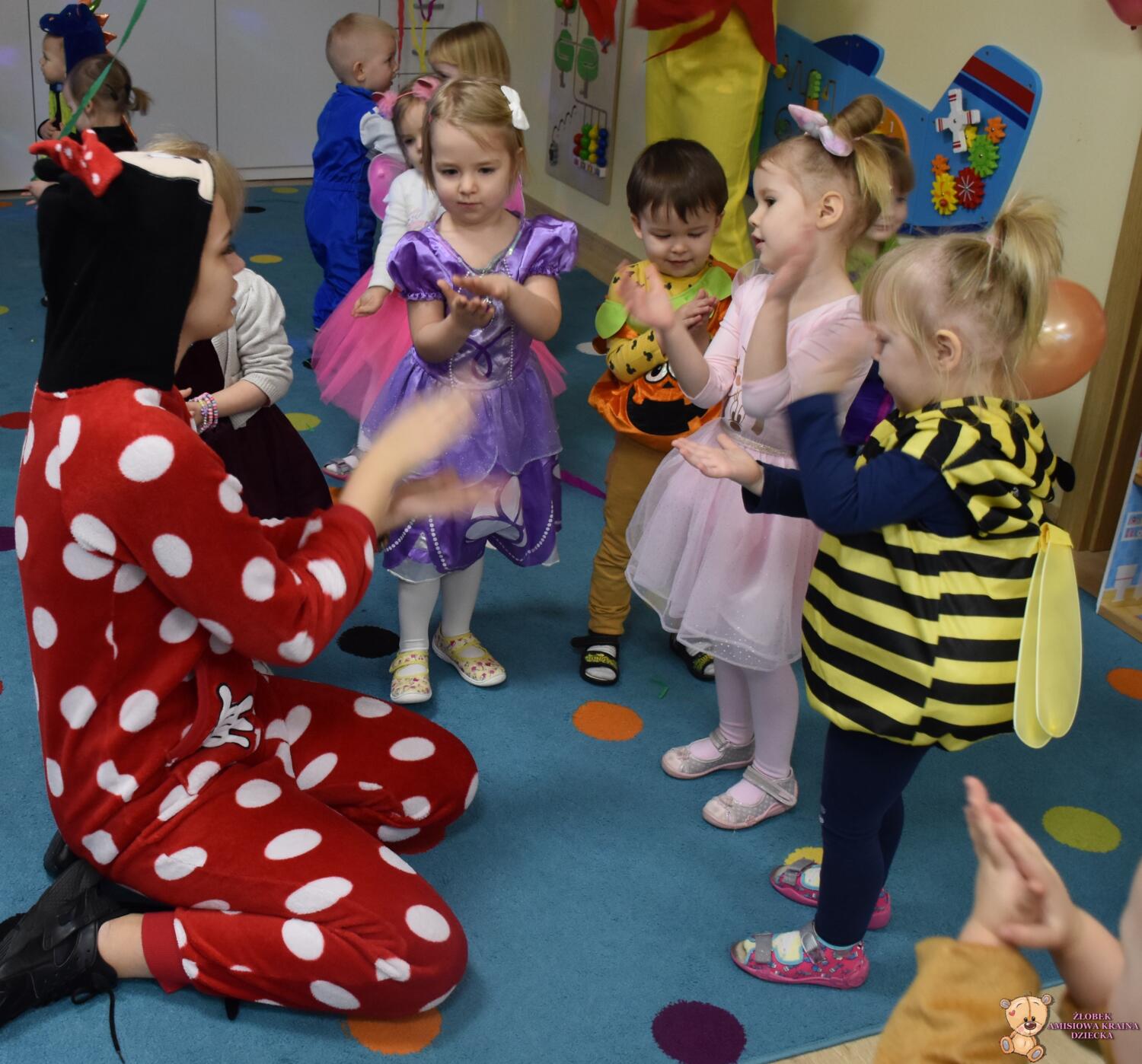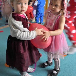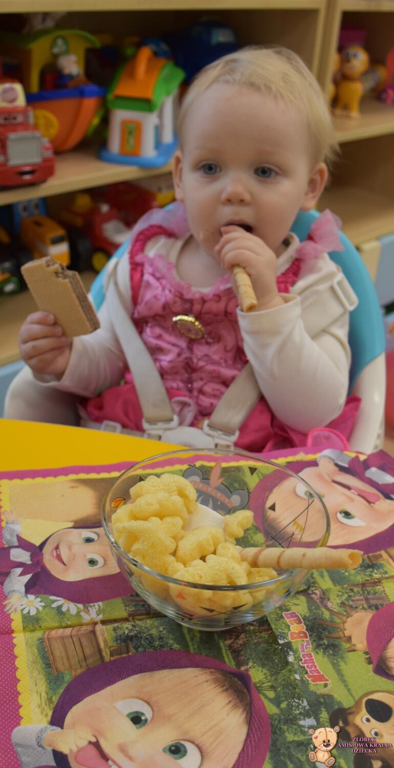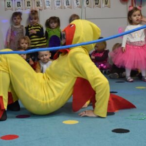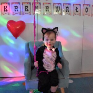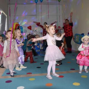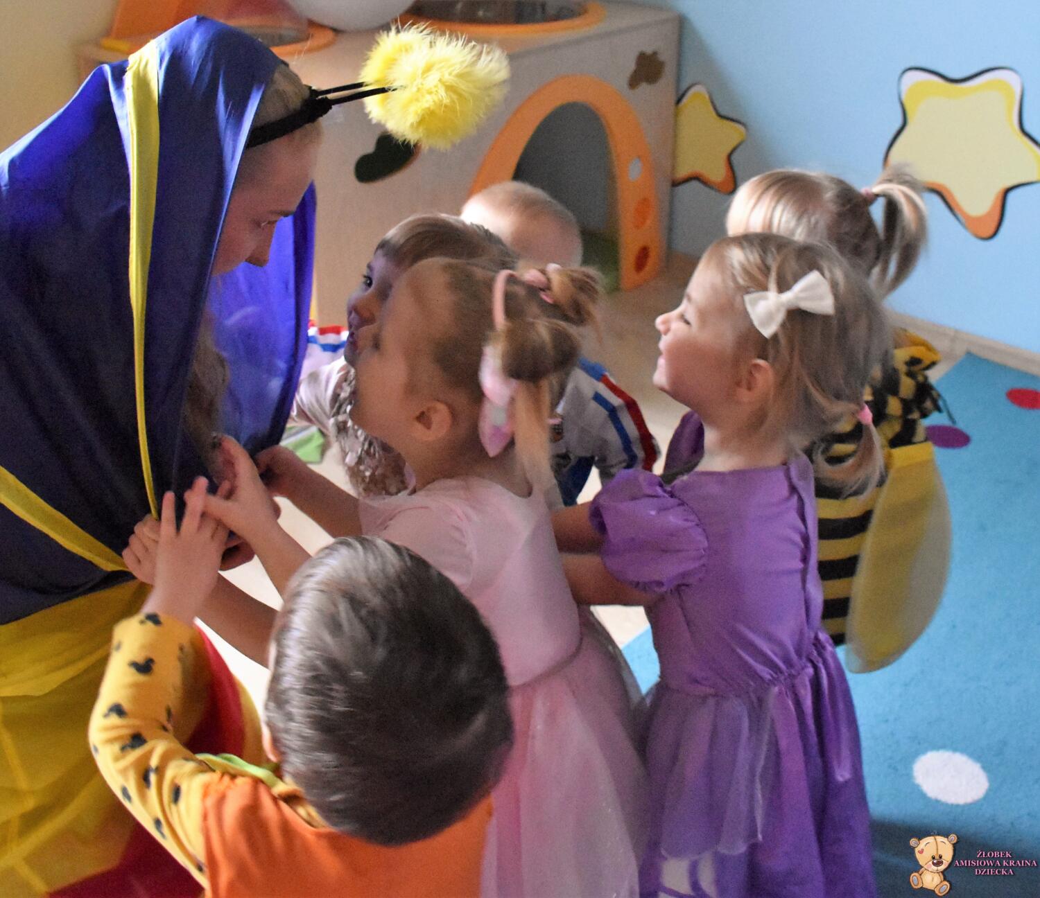 W dniu dzisiejszym w Amisiowej Krainie Dziecka odbył się bal walentynkowo- karnawałowy. Przybyły do nas dobre wróżki, księżniczki i kowboj z dzikiego zachodu. Bawiliśmy się z pszczółką Mają, biedronką, kurą i myszką Miki. Ciocie zapewniły nam szereg atrakcji m.in. przechodzenie pod liną, zabawy z balonami i hula hop. Po balu zjedliśmy przepyszny poczęstunek.