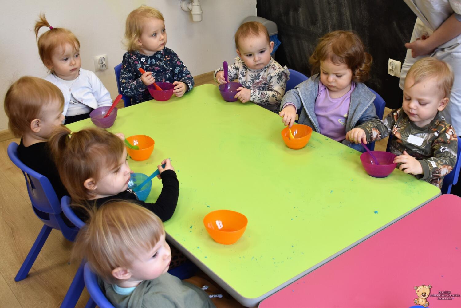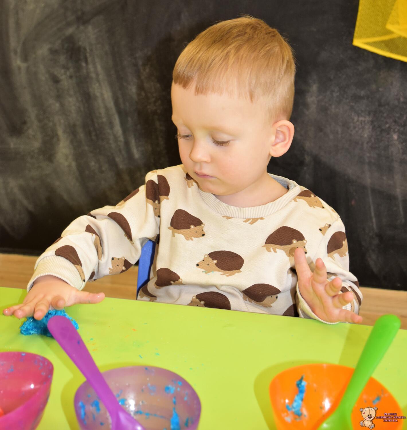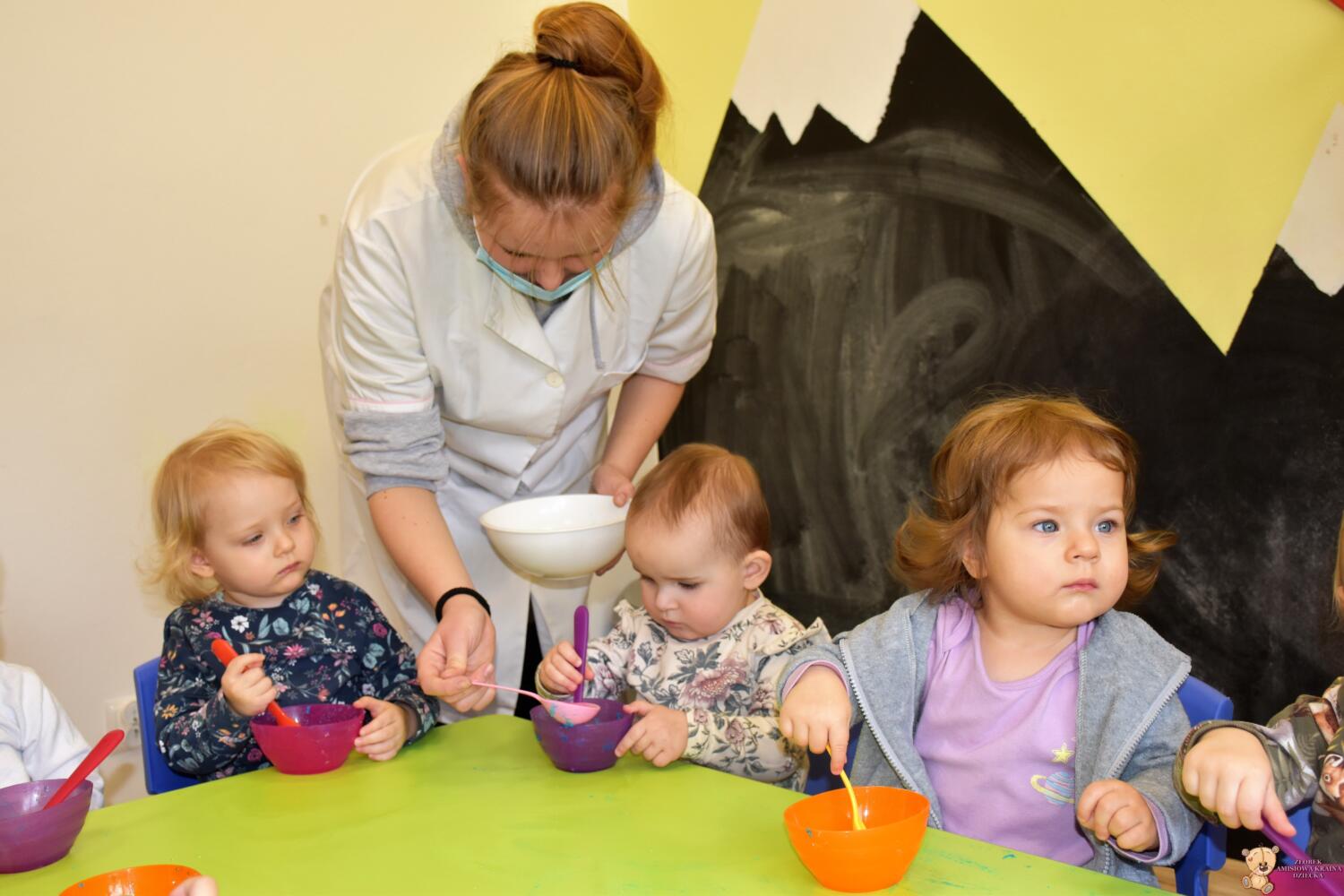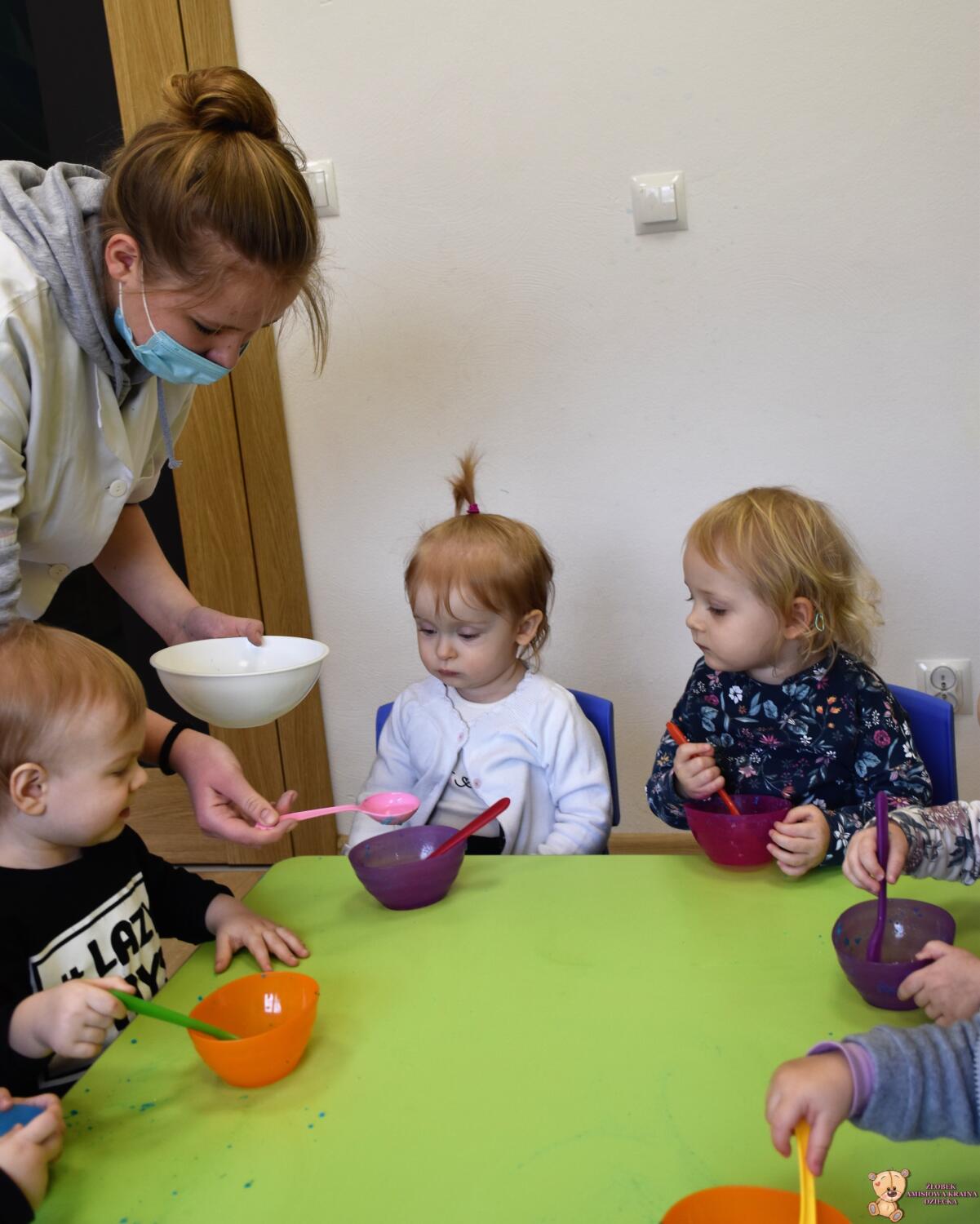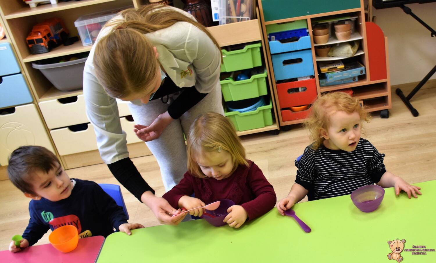 Dzisiaj w naszym żłobku wykonywaliśmy higienę w eksperymentach. Nasz nos ma wiele funkcji m.in : odpowiada za odczuwanie zapachów i ogrzewa powietrze zanim trafi do płuc. Występujące w nim włoski i śluz pomagają również wyłapać zanieczyszczenia, które znajdują się w powietrzu. Poprzez wykonanie eksperymentu dowiedzieliśmy się jak działa śluz. Wolontariuszki Daria i Wiktoria przygotowały z Nami „ gluta” z kleju, wody , płynu do płukania i brokatu. Opowiedziały Nam, że katar i zatkany, utrudnia przepływ powietrza przez co np. potrawy nie mają takiego smaku i aromatu jak na co dzień. Zarazki , które gromadzą się w nosie mogą również sprawić, że nie czujemy zapachów. Na koniec otrzymaliśmy oznaki z akademii czyściocha, które zabierzemy do domu.