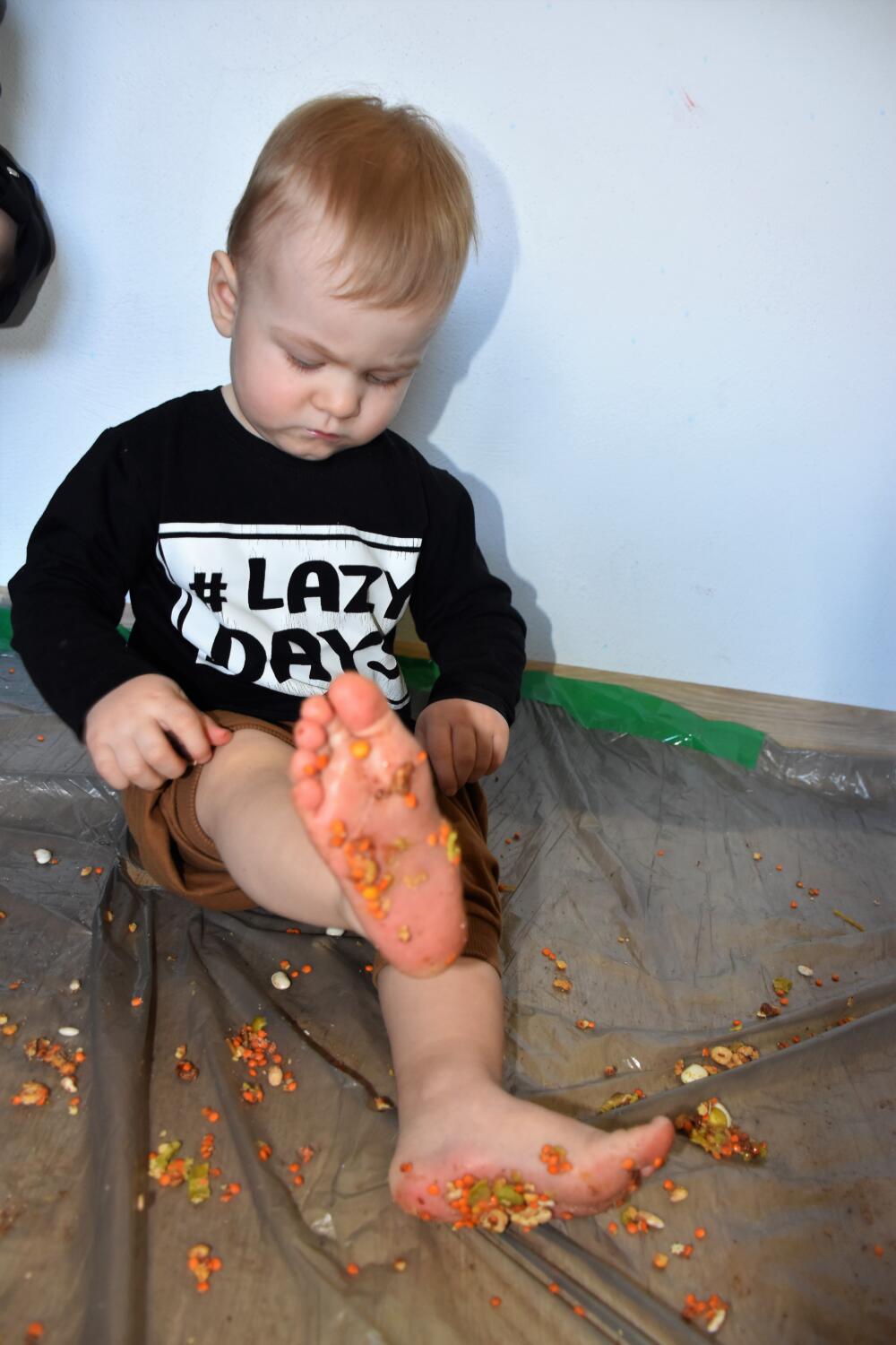 Dziś Amisiaki na zajęciach z sensoplastyki ćwiczyły stópki za pomocą ścieżki sensorycznej, która jest nie tylko super zabawą i dostarcza dzieciom wiele radości, ale również płynie z niej wiele korzyści, stymuluje receptory w stopach oraz dostarcza bodźce dotykowe