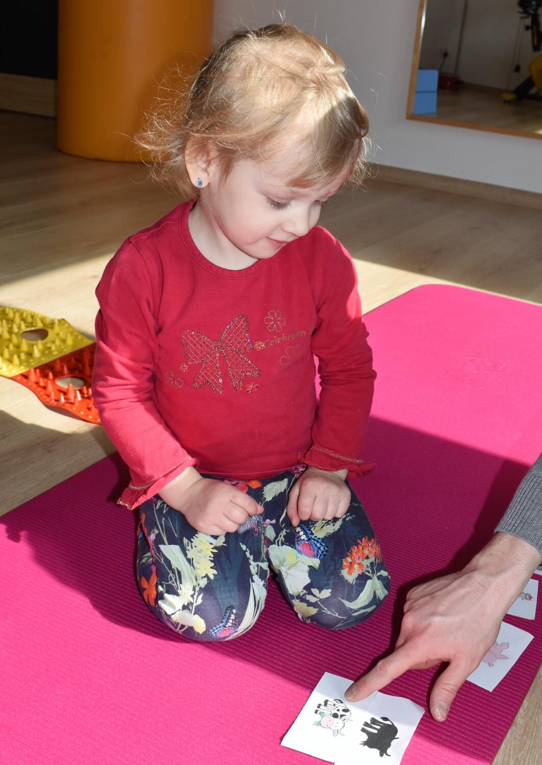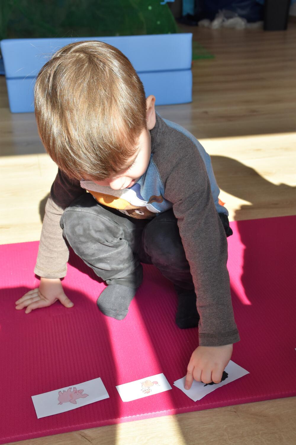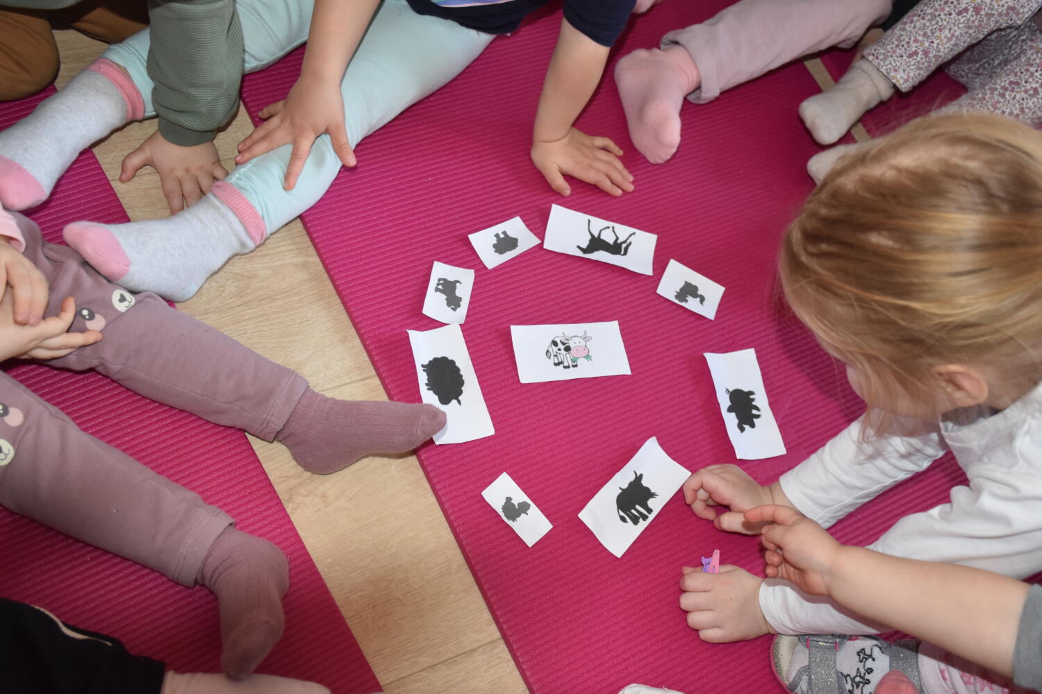 Dzisiaj dzieci miały za zadanie dopasować cienie do obrazków przedstawiających zwierzątka. Dodatkowo powtarzaliśmy odgłosy jakie wydobywają poszczególne zwierzęta