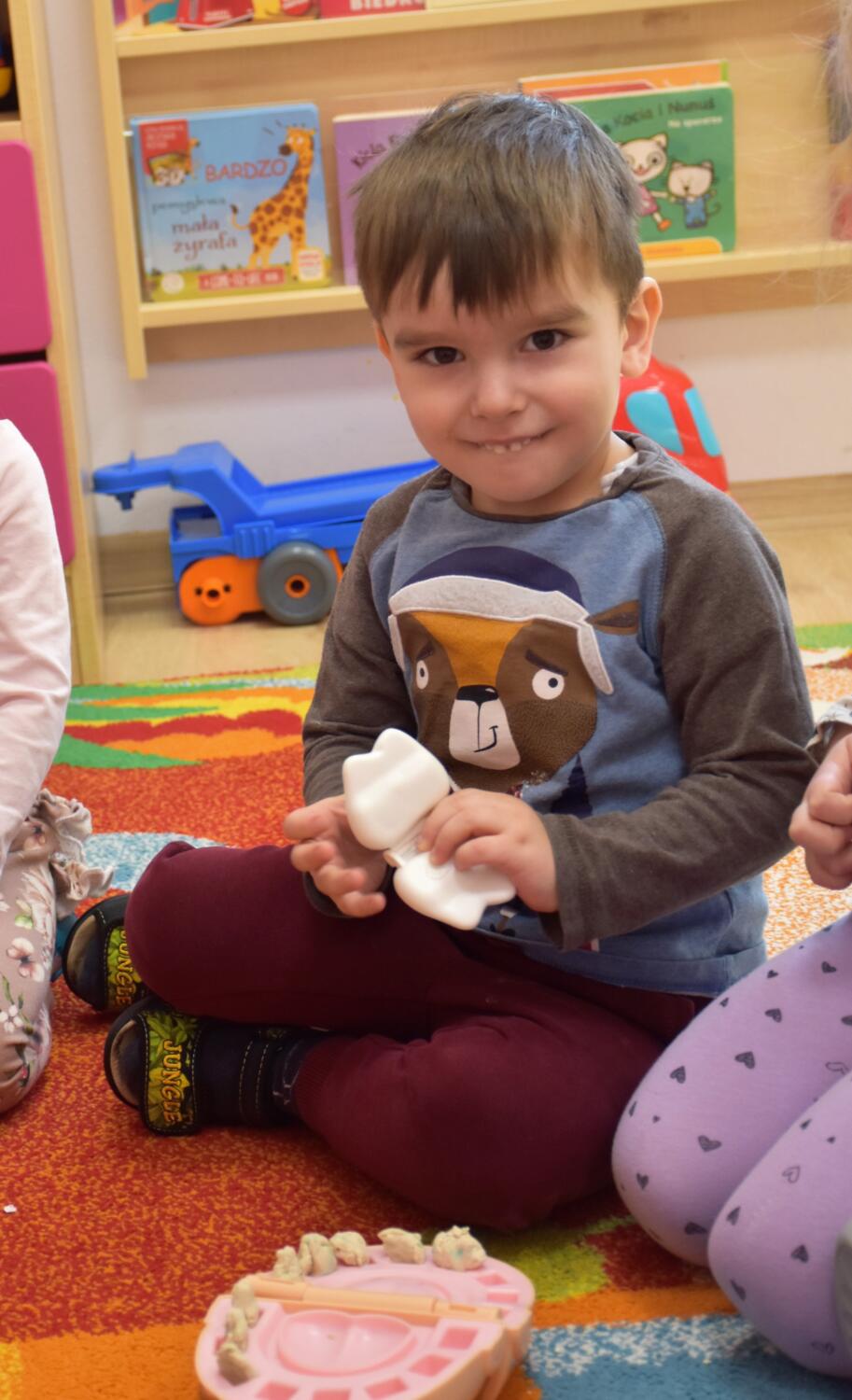 Dziś na zajęciach z ciocia neurologopedą rozmawialiśmy o ząbkach i jak ważne są w rozwoju mowy. Dzieci mogły ocenić zęby na modelu oraz poznały podstawowe narzędzia stomatologiczne. Opowiadały jak dbają o swoje ząbki w domu oraz mogły wykleić modele zębów . To była super zabawa