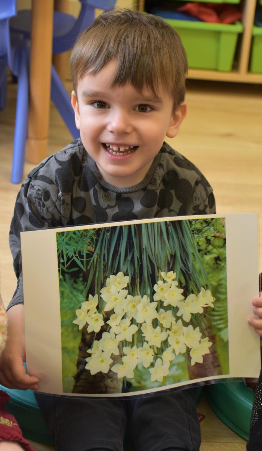 wspólnie odgadywaliśmy jakie wyrazy rozpoczynają się na tą literę. Na koniec wykonaliśmy pracę plastyczną z użyciem kleju, bibuły oraz brokatu