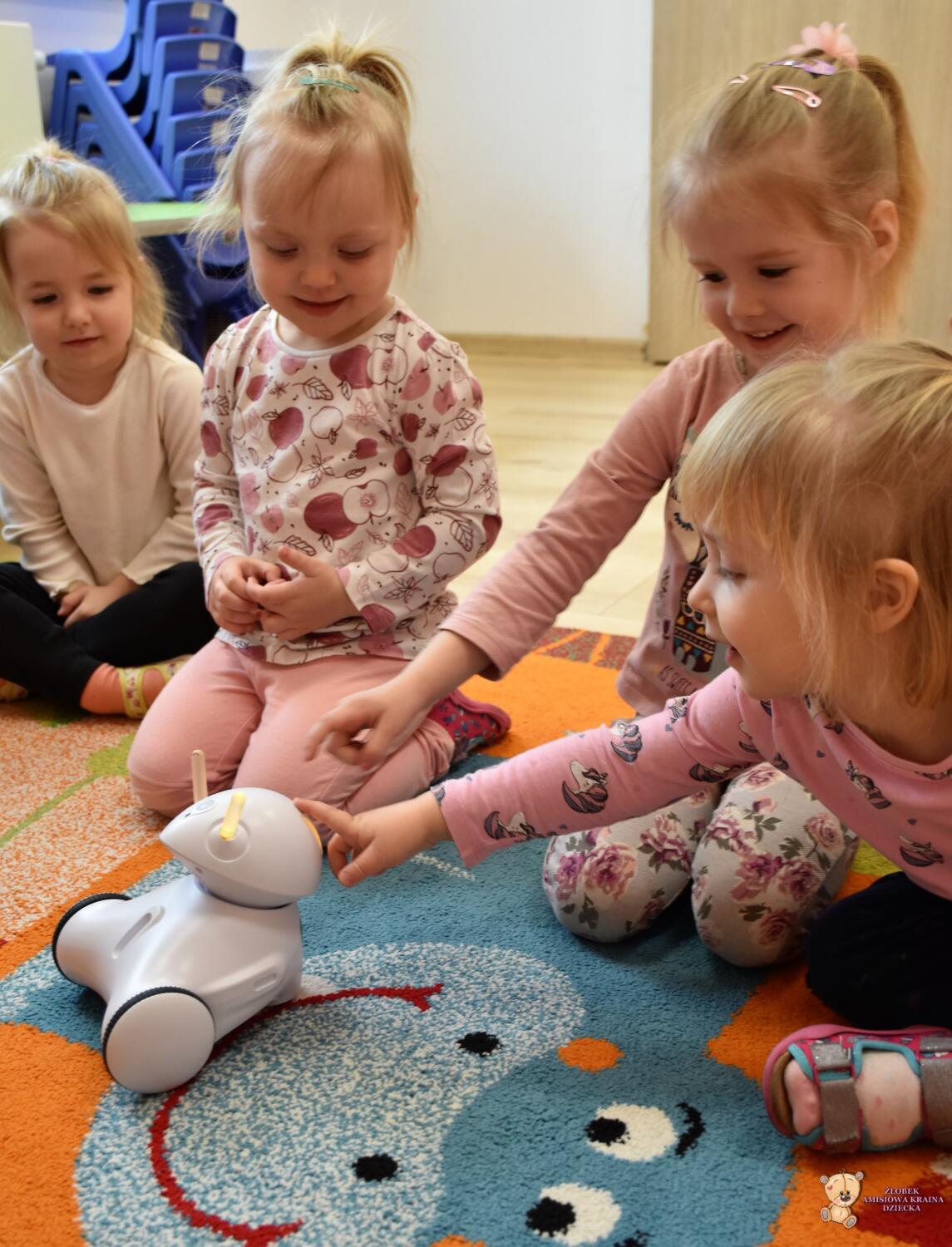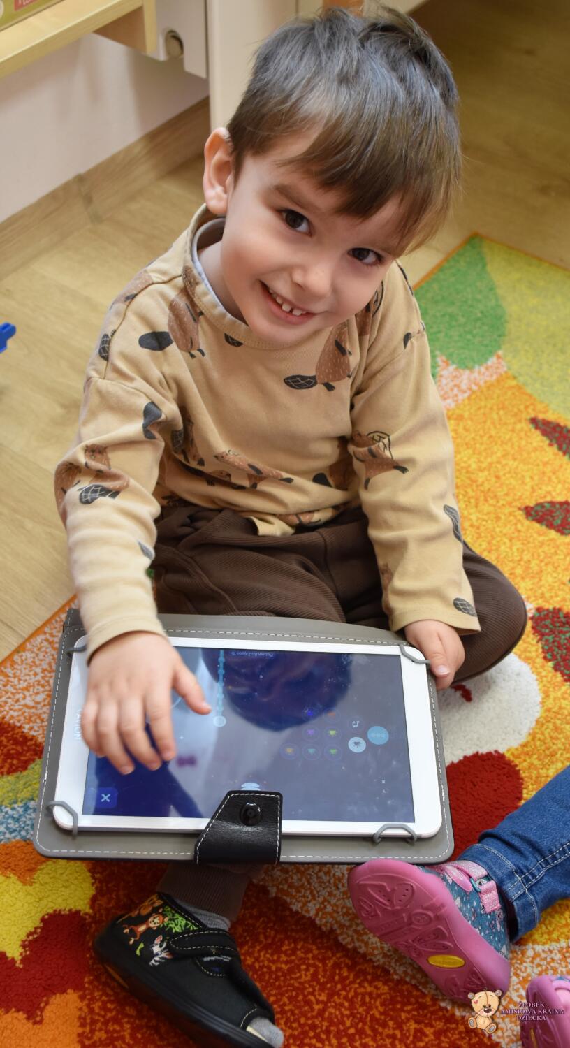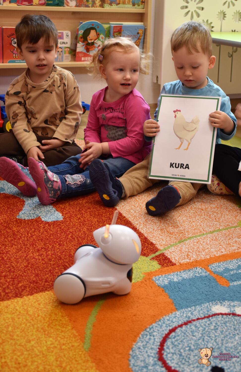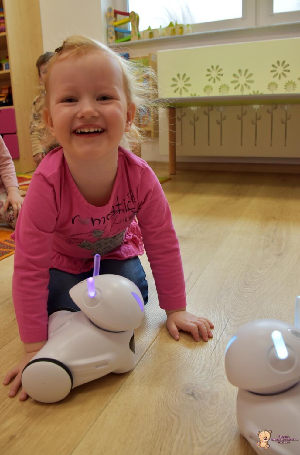 Dziś odwiedziła nas ciocia Natalia, która poprowadziła zajęcia z podstaw robotyki. Dzieci zapoznały się z przyniesionymi robotami, które z początku wyglądały dość dziwnie. Wspólnie odgadywaliśmy wydawane przez nie dźwięki zwierząt oraz kolory, które zmieniały się na jego czułkach. Na koniec zajęć dzieciaki same sterowały robotami świetnie się przy tym bawiąc.