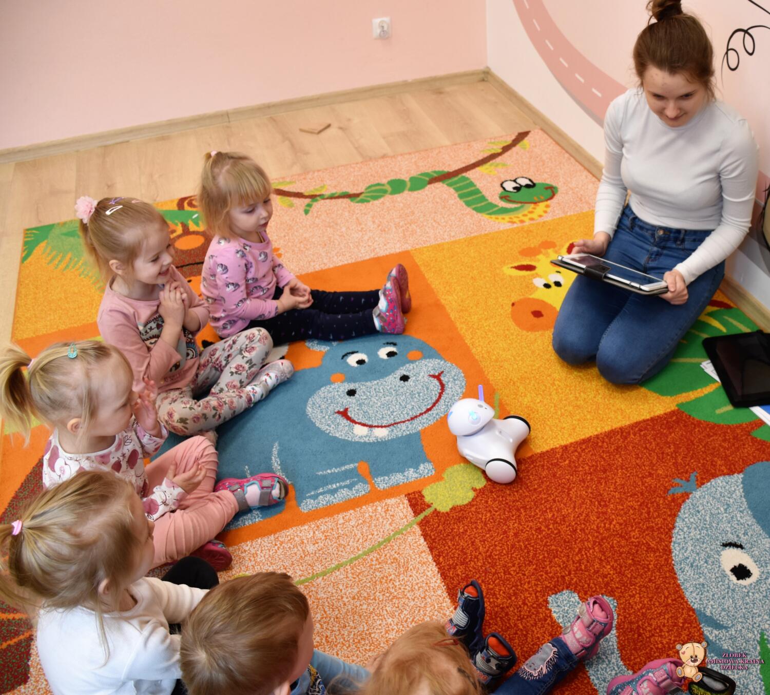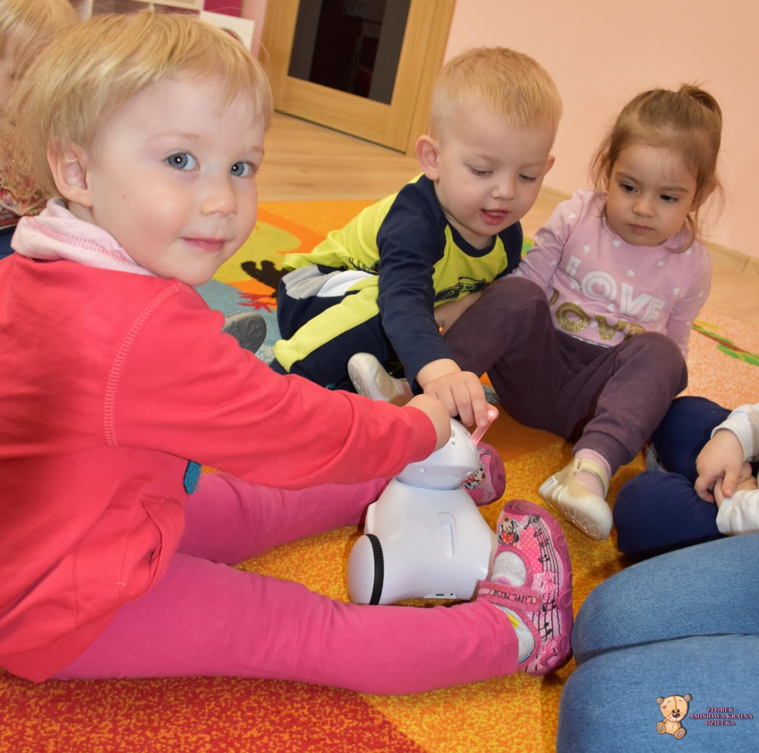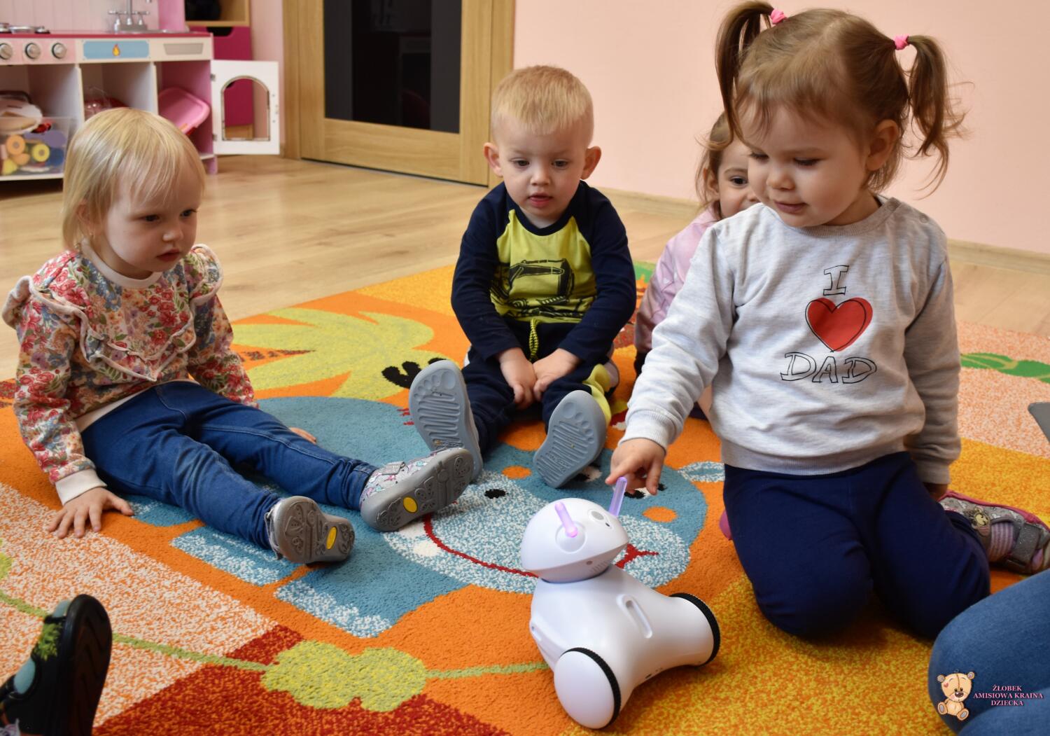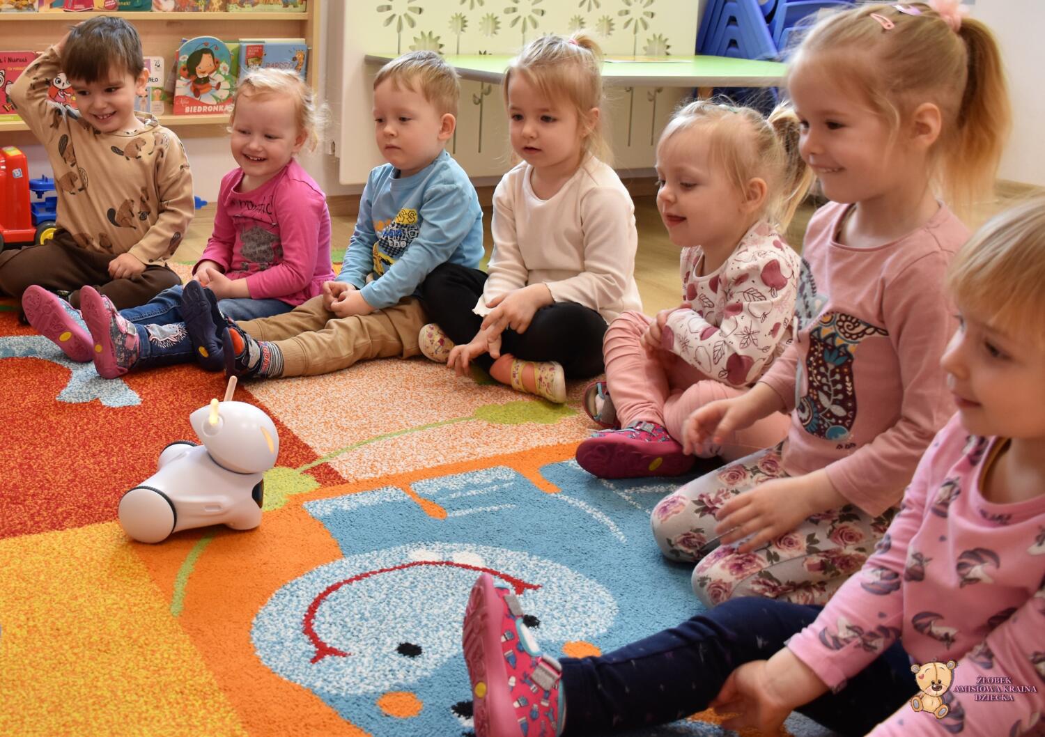 Dziś odwiedziła nas ciocia Natalia, która poprowadziła zajęcia z podstaw robotyki. Dzieci zapoznały się z przyniesionymi robotami, które z początku wyglądały dość dziwnie. Wspólnie odgadywaliśmy wydawane przez nie dźwięki zwierząt oraz kolory, które zmieniały się na jego czułkach. Na koniec zajęć dzieciaki same sterowały robotami świetnie się przy tym bawiąc.