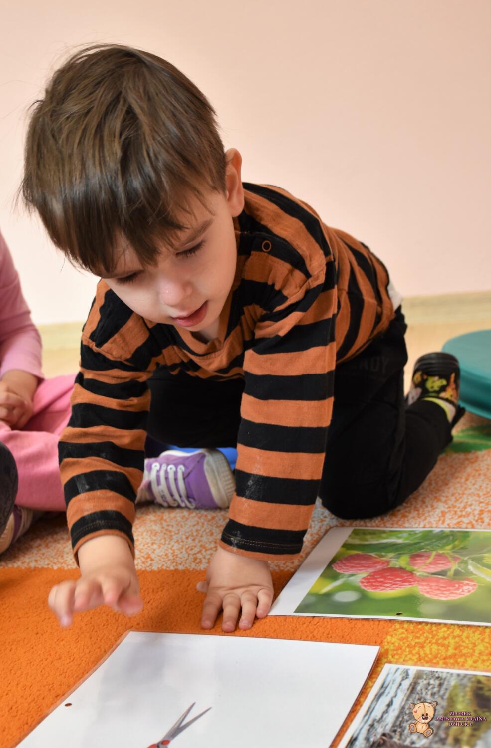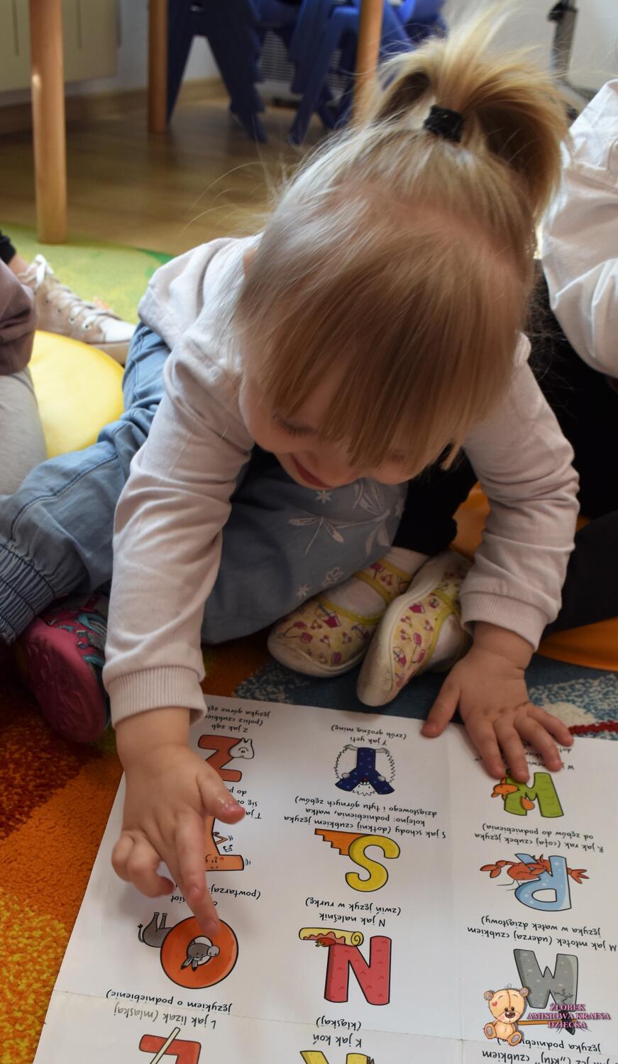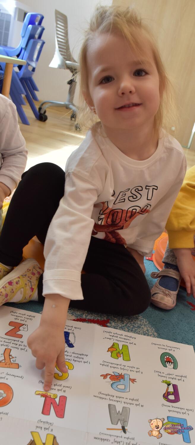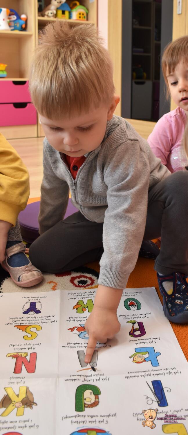 sobie kształt danych liter. Dzieci wspólnie odgadywały i dopasowywały różne zdjęcia do poszczególnych liter, udało nam się to bezbłędnie