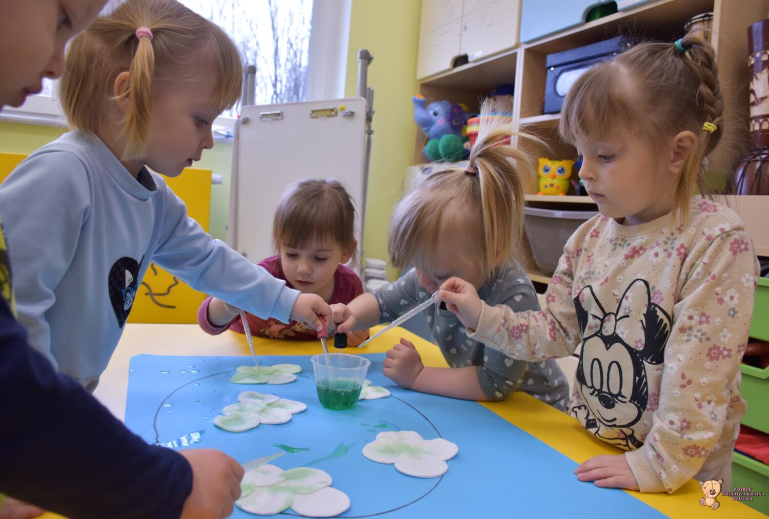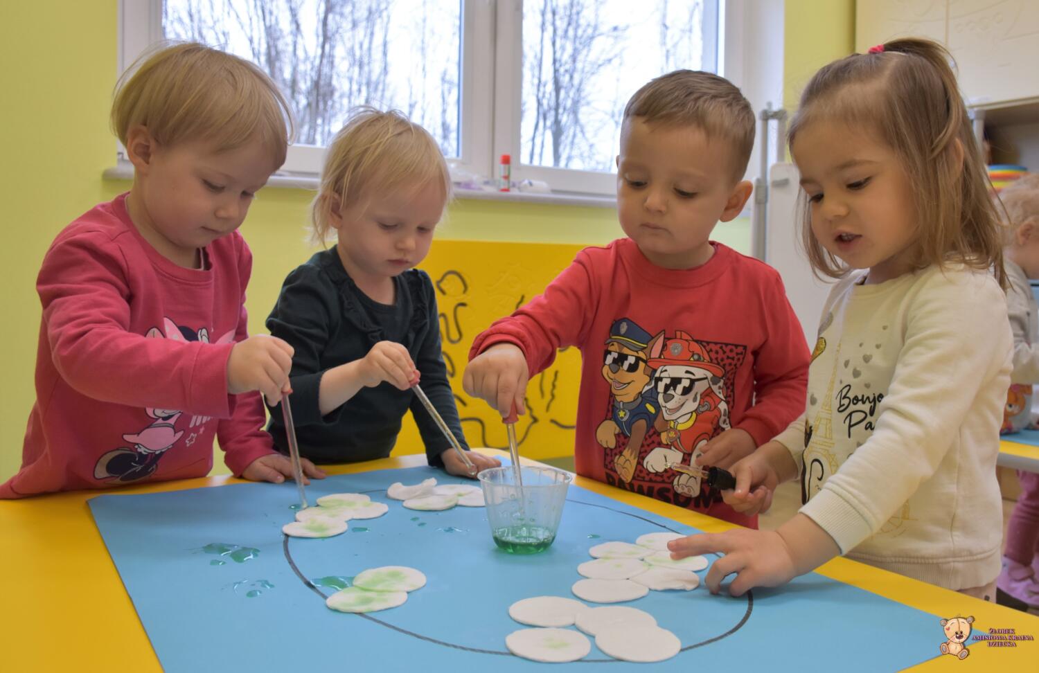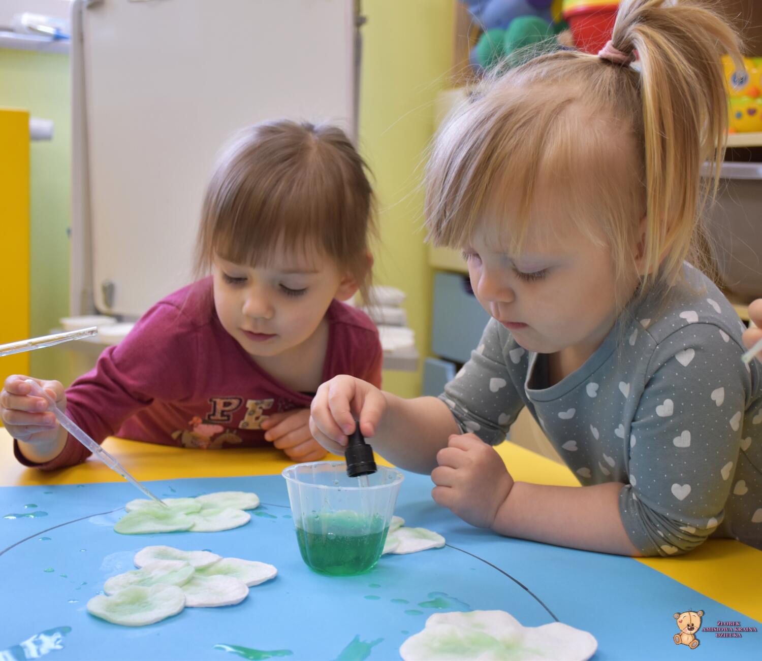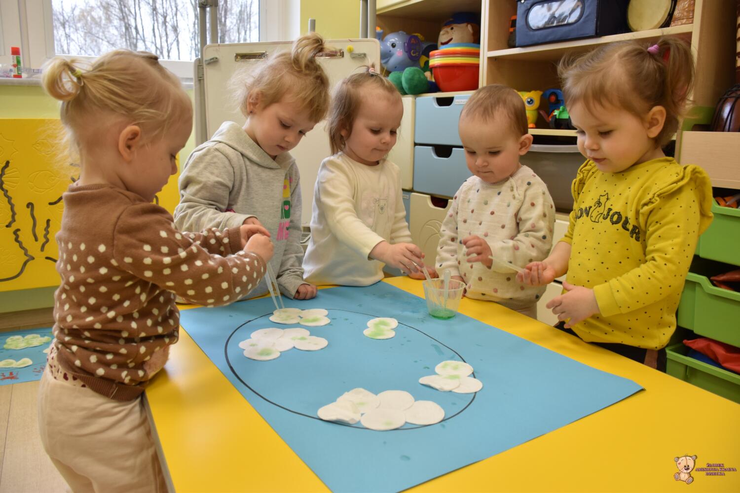 W tym tygodniu Amisiaki rozmawiają o tym, jak należy dbać o naszą planetę. Dziś na zajęciach Montessori dzieci wykonały pracę plastyczną. Za pomocą pipety przenosiły zielona wodę na waciki, aby powstał symboliczny obraz Ziemi. Na koniec wszyscy odcisnęli swoje dłonie na plakacie. Była to fajna zabawa, a także doskonalenie swoich zdolności manualnych![]()