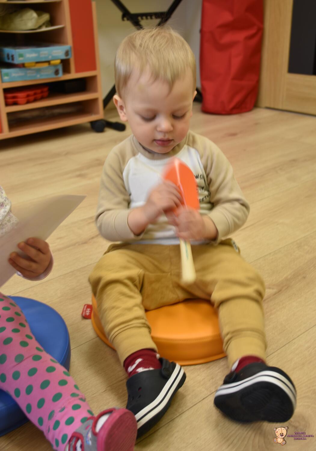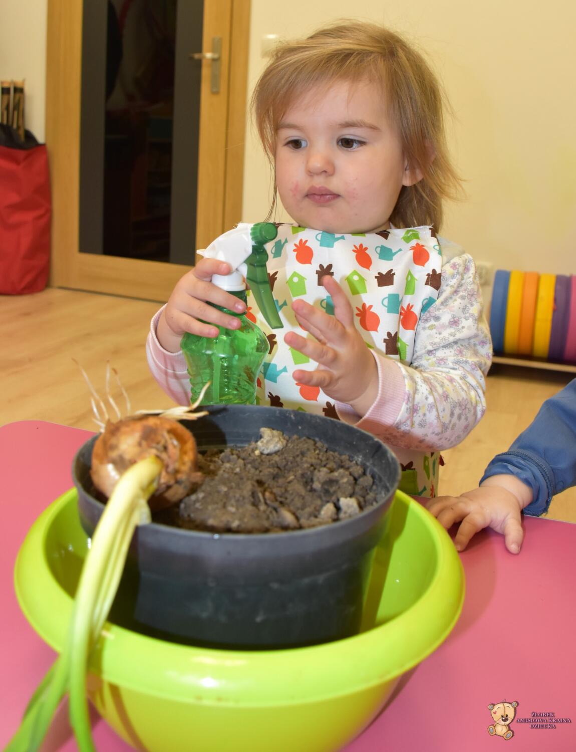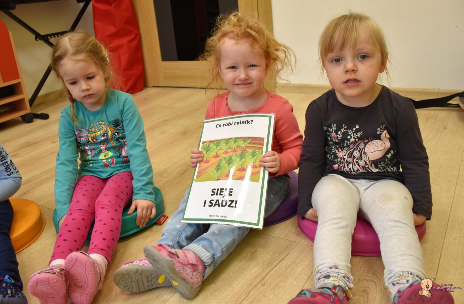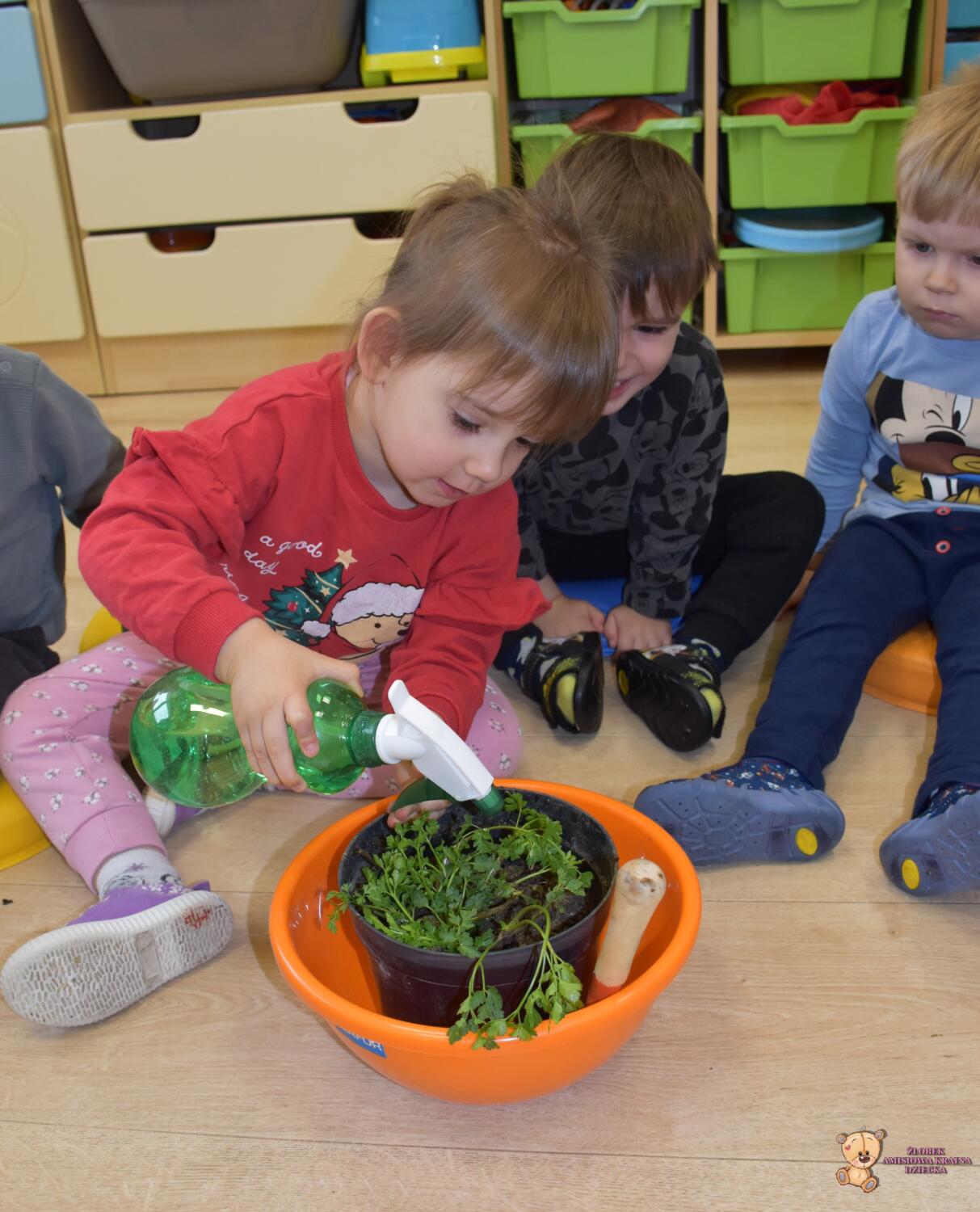 Dzisiaj na Bajkoterapii AMIsiaki poznały bajkę „Zielony ogródek”. Opowiadaliśmy o pracach w ogródku,jak pomagają .Na koniec zasadziliśmy cebulkę i pietruszkę