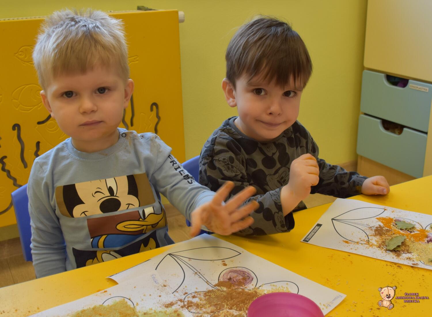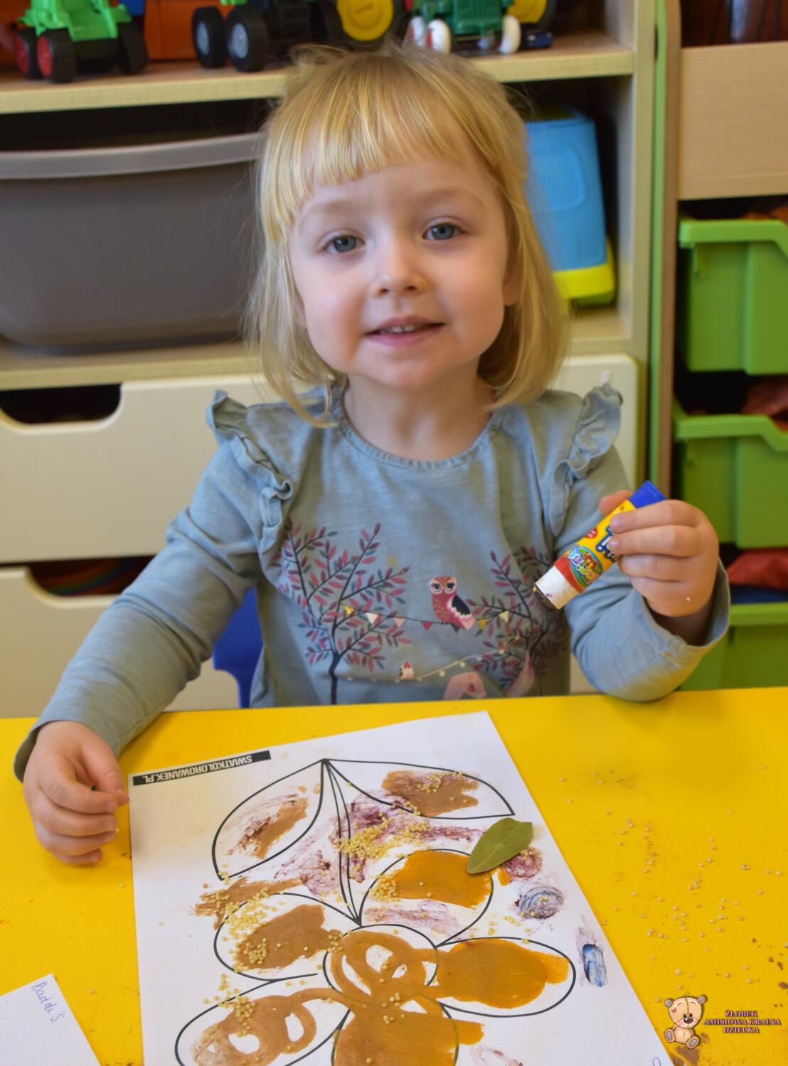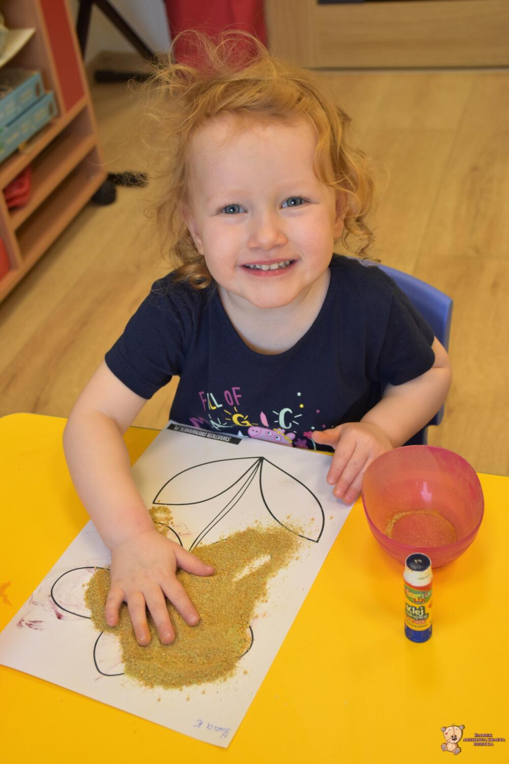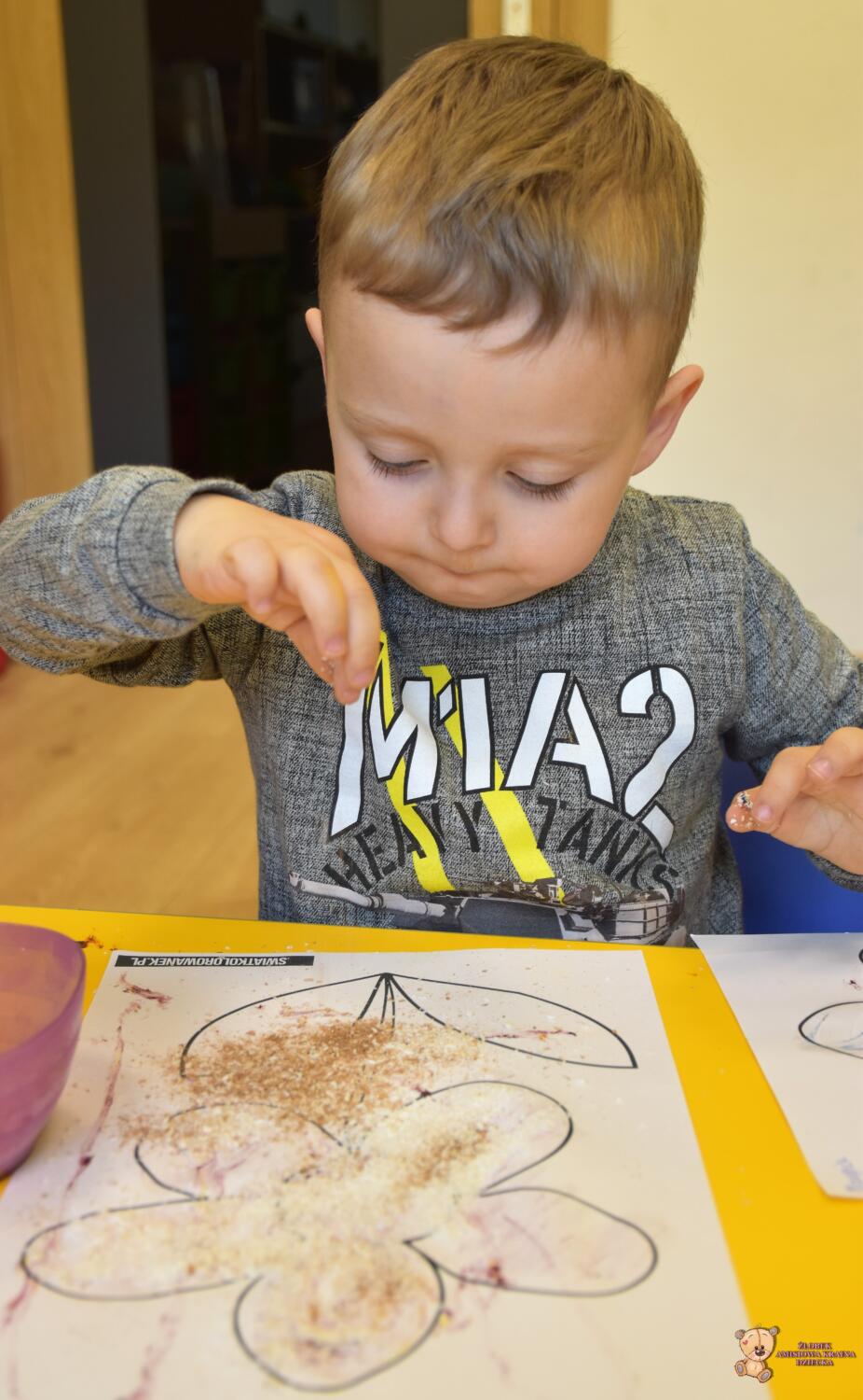 Dziś na zajęciach Montessori Amisiaki wykonywały kolorowe obrazki, z wykorzystaniem przypraw. Dzieci rozwijały swoją motorykę małą, koordynację wzrokowo-przestrzenną, a także super się przy tym bawiły, w wyniku czego powstały barwę kwiaty![]()