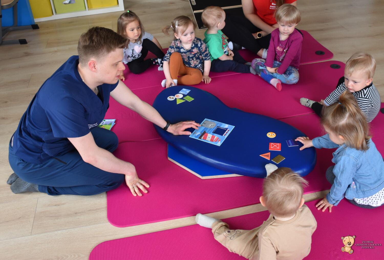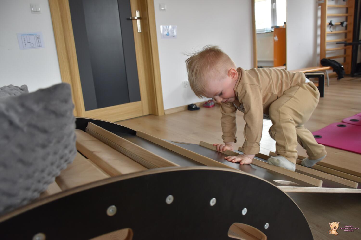 Dzisiaj dzieci ćwiczyły swoją percepcję wzrokową. Śledziliśmy różne kształty podczas kręcenia na desce rotacyjnej, nazywaliśmy je, dopasowywaliśmy w odpowiednie miejsce na obrazku i opisywaliśmy co przedstawiają dane obrazki