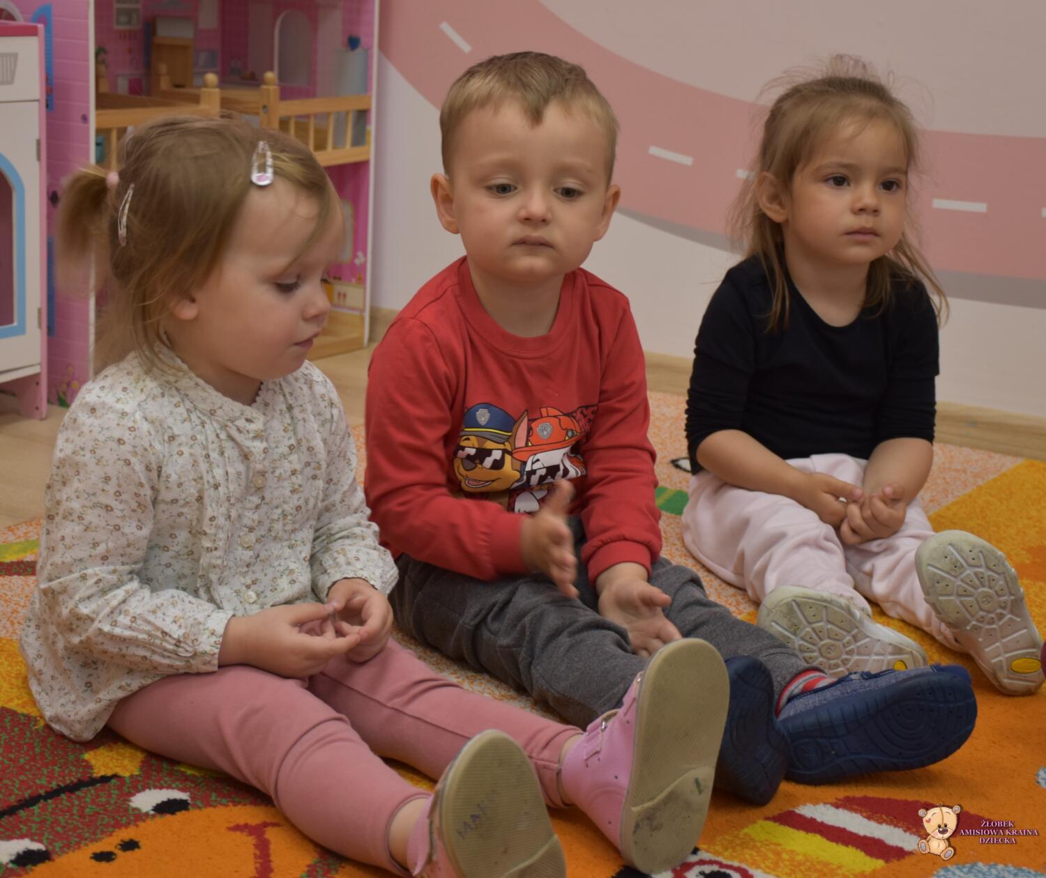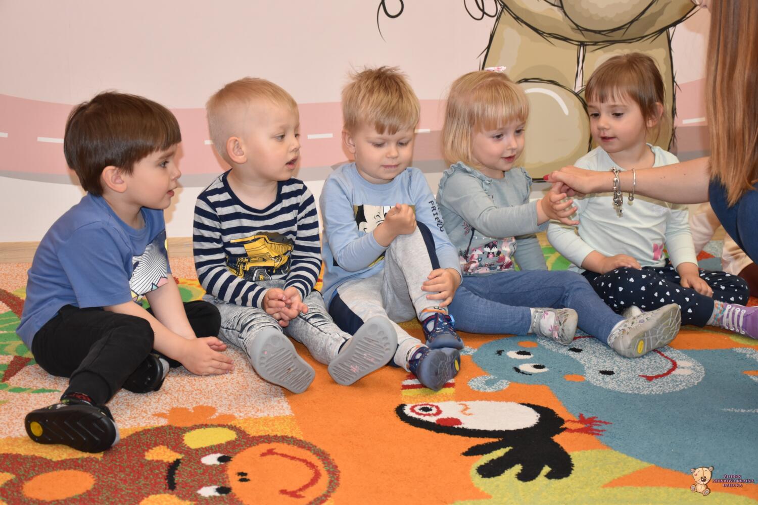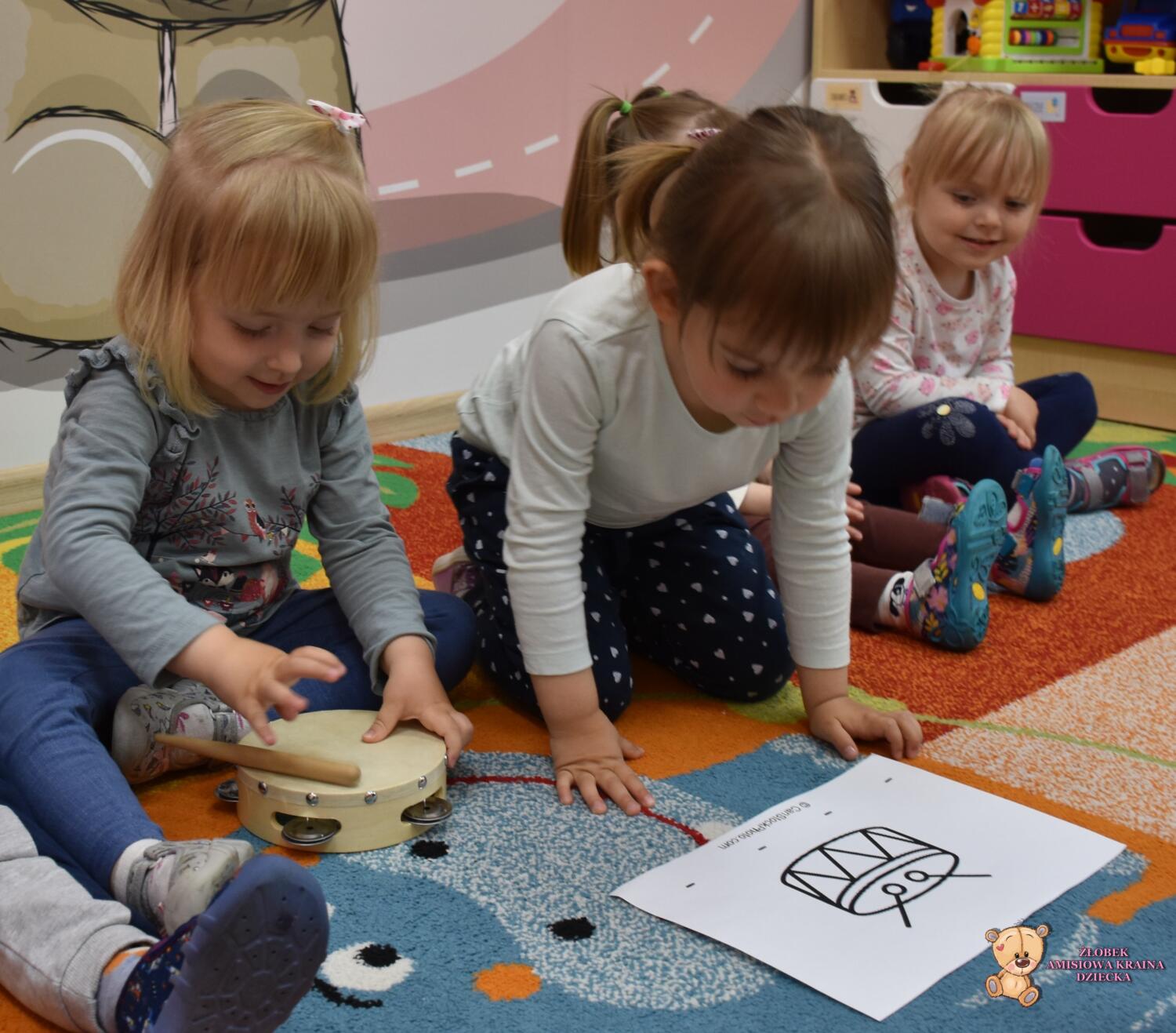 Dziś na zajęciach logorytmiki dzieci poznawały oraz nazywały instrumenty muzyczne, naśladowaly dźwięki przez nie wydawane oraz imitowały grę na nich. Dzieci pięknie śpiewały piosenkę oraz współpracowały podczas zabaw ruchowych z dźwiękiem. Dzięki tego typu zajęciom dzieci wzbogacają swój słownik, usprawniają motorykę małą, doskonalą funkcje słuchowo-ruchowe oraz pobudzają ośrodek mowy w mózgu