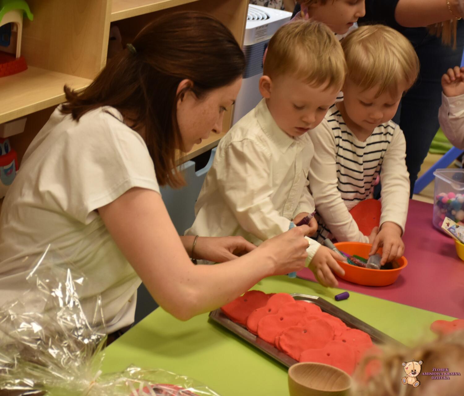 Wczoraj w naszym żłobku odbyła się wyjątkowa uroczystość, nasze Amisiaki przygotowały dla swoich ukochanych Mam przedstawienie z okazji ich święta. Zaśpiewały dla nich piosenki oraz grupa niedźwiadków powiedziała wierszyk. Następnie dzieci wraz z rodzicami wzięły udział w kreatywnych warsztatach i ozdobiły serduszka z masy solnej ,które wcześniej przygotowały. Tą wspaniała uroczystość umilił nam słodki poczęstunek. To był dla nas Amisiaków