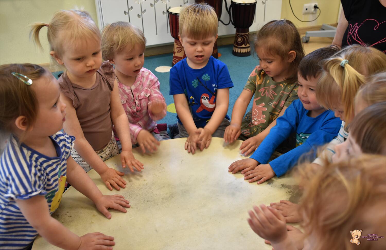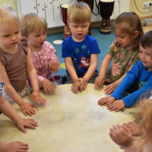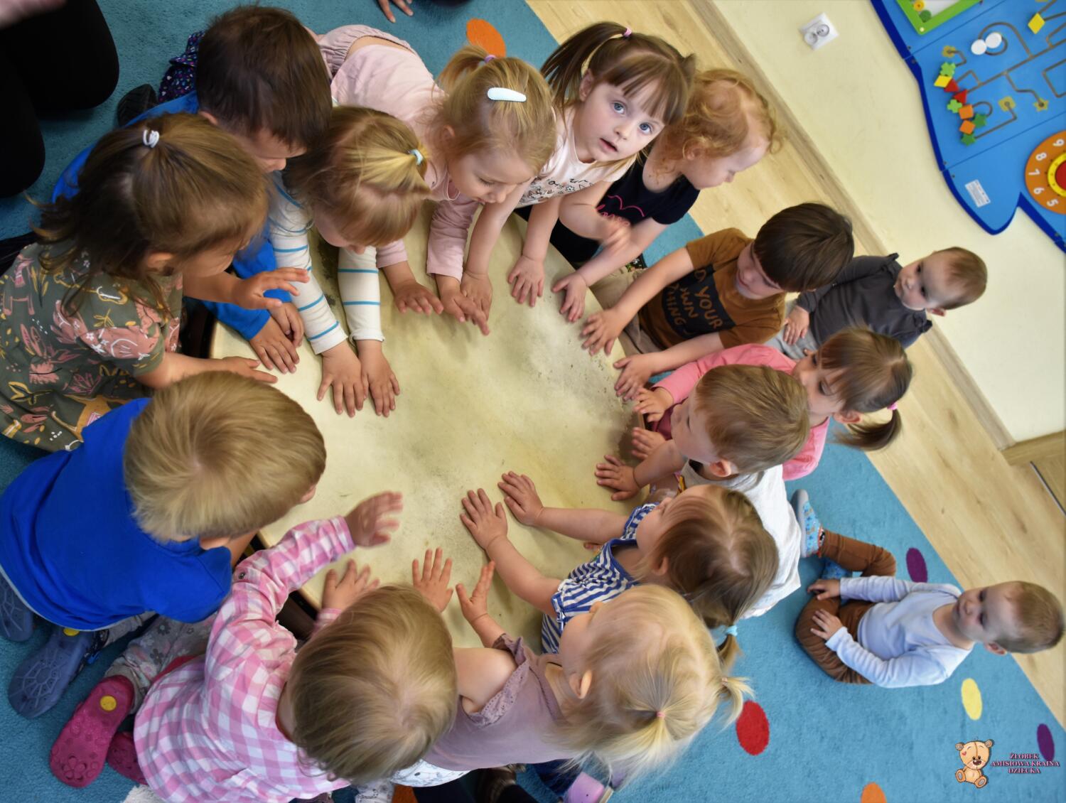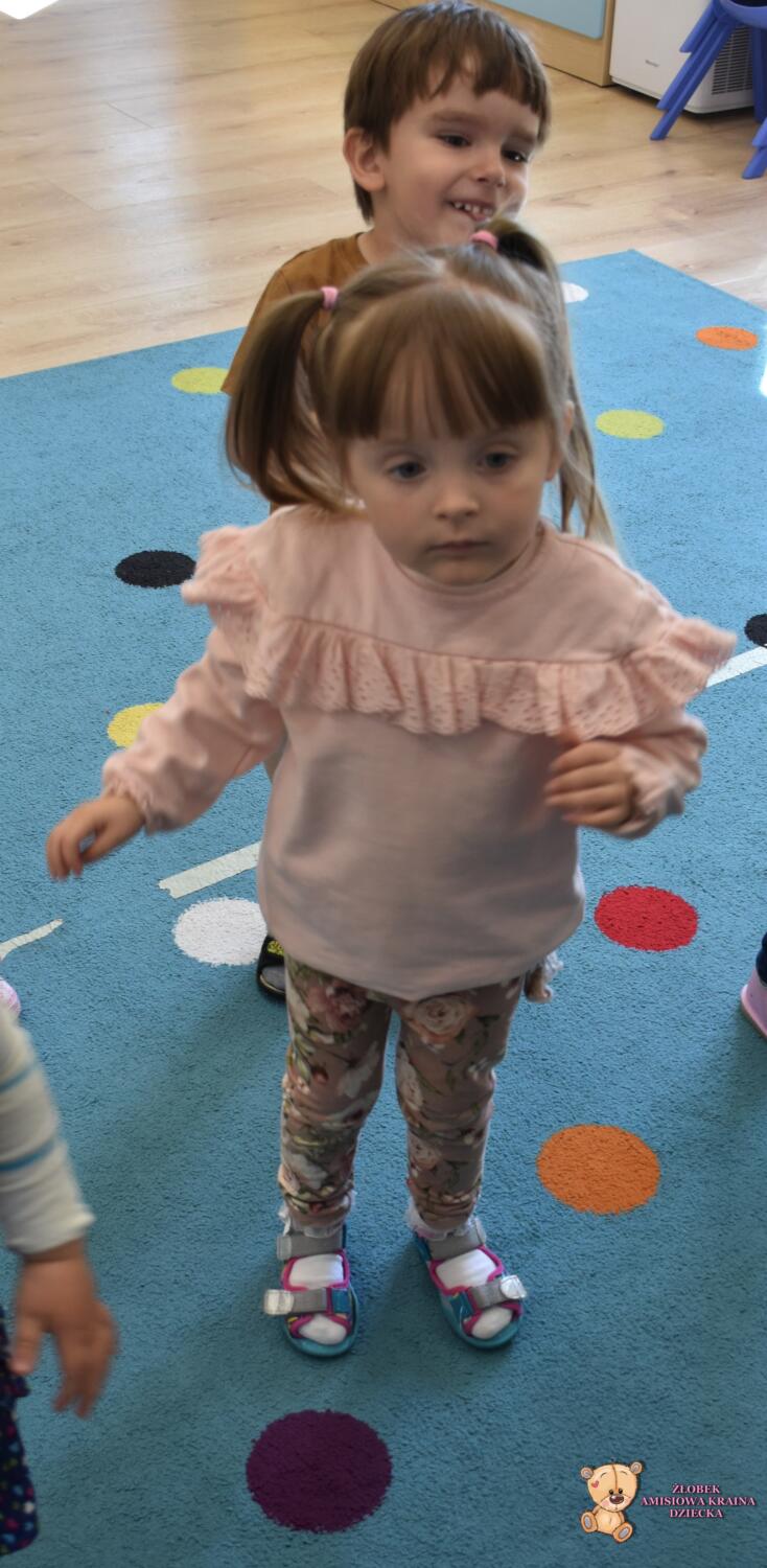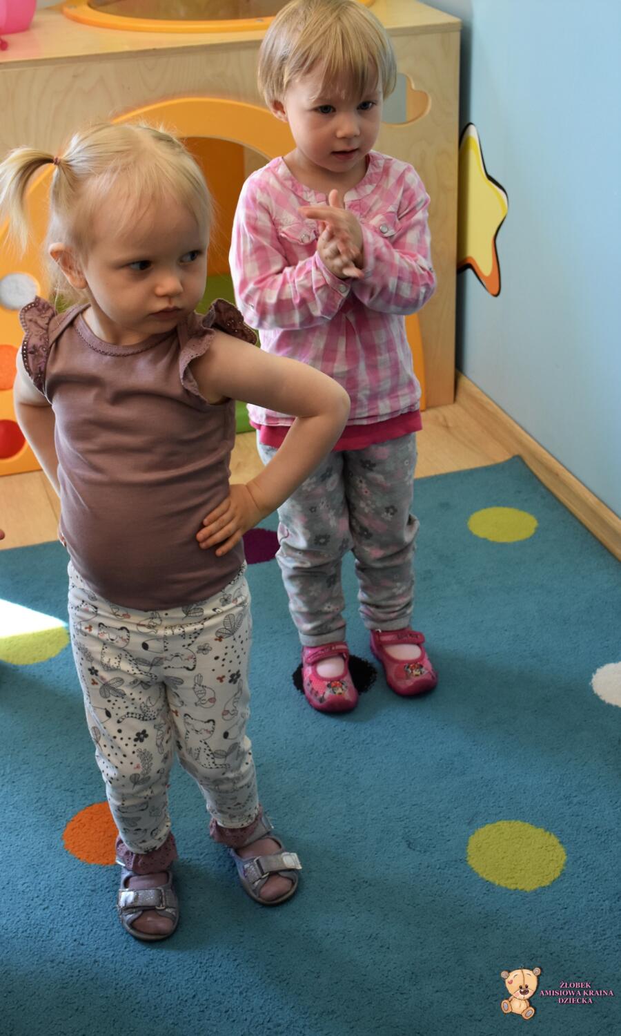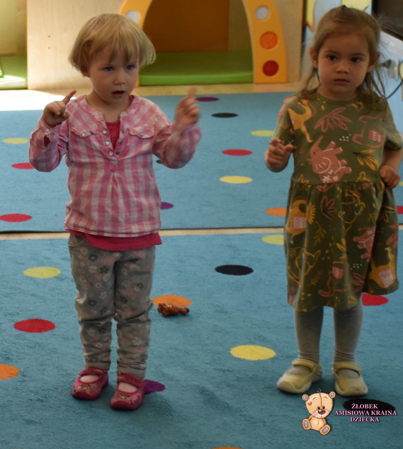 W dniu dzisiejszym nasze Niedźwiadki oraz Pszczółki zajmowały się zabawami tanecznymi przy wesołych piosenkach. Używaliśmy do tego instrumentów muzycznych oraz kolorowych szarf