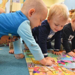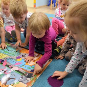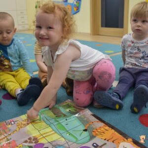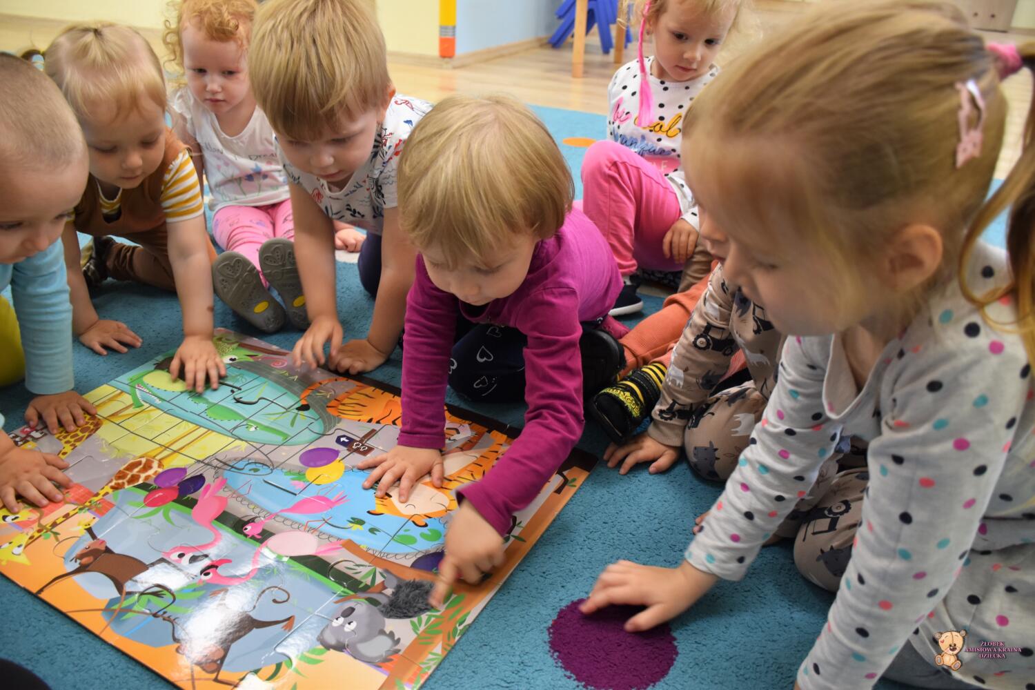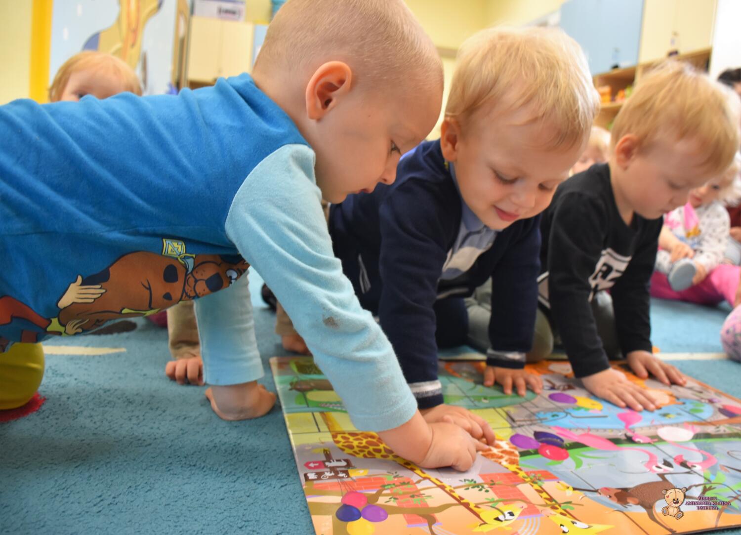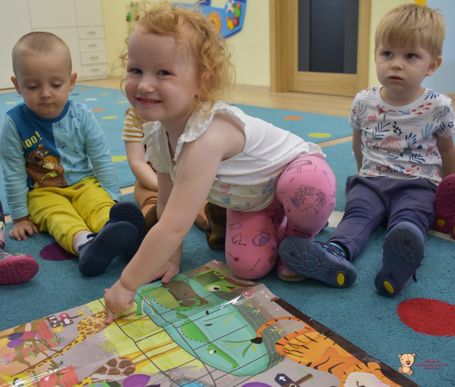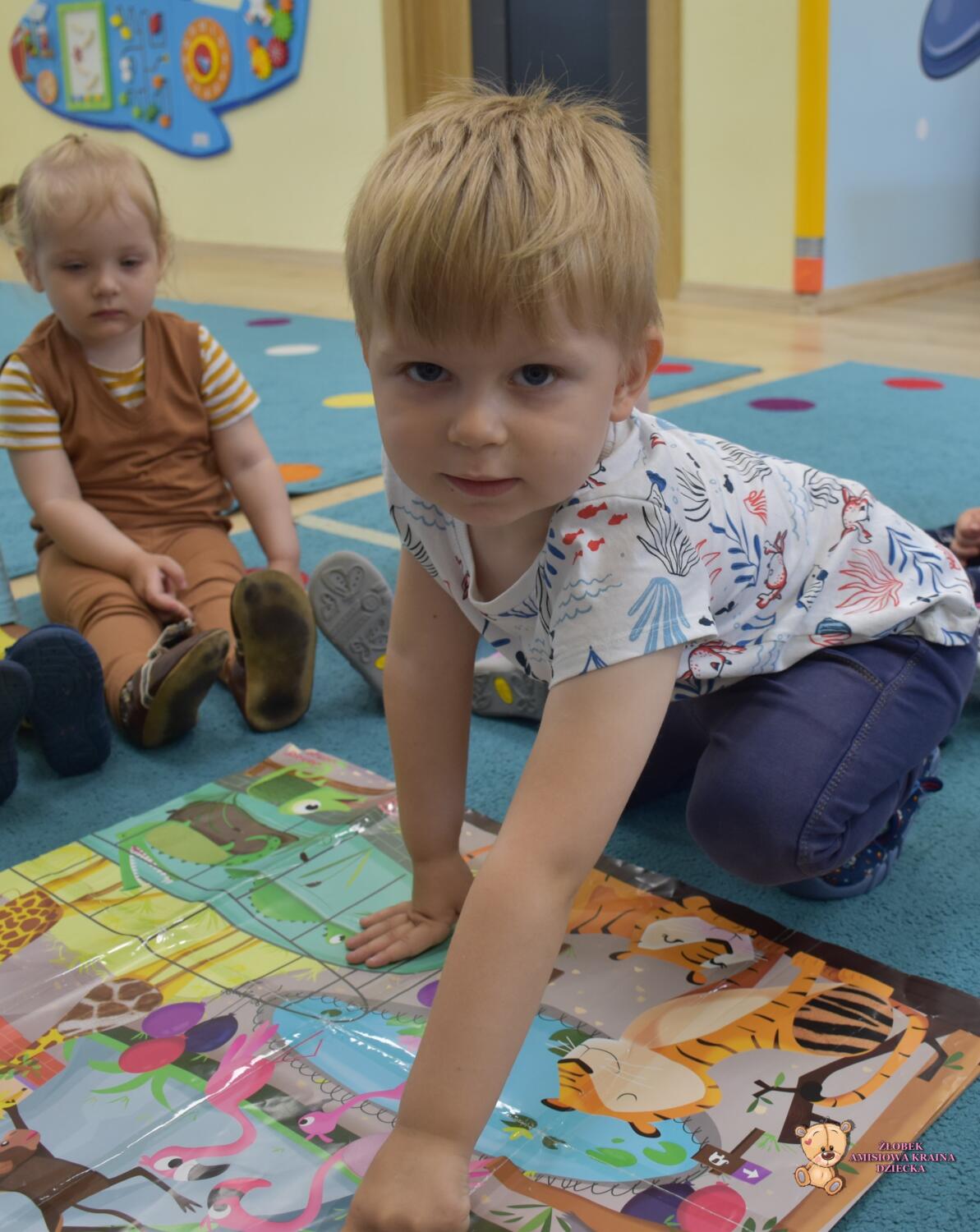 .Układaliśmy puzzle sensoryczne, czytaliśmy książkę „Idziemy do zoo”