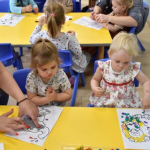 .Na koniec wykonaliśmy pracę plastyczną co sprawiło wiele radości ćwicząc motorykę małą
