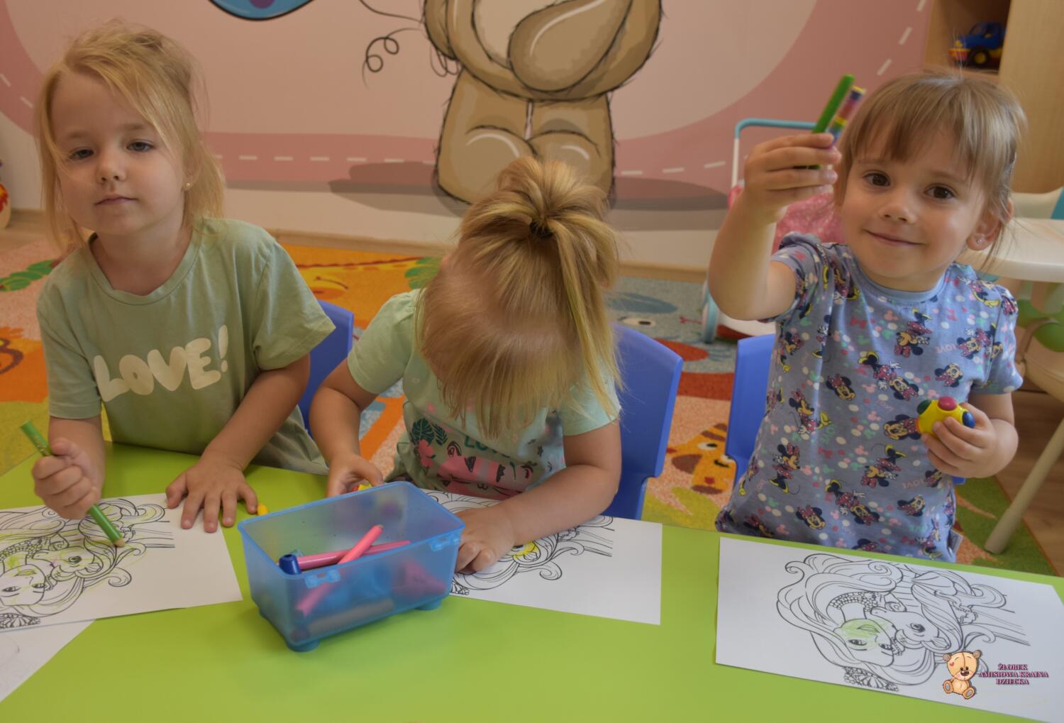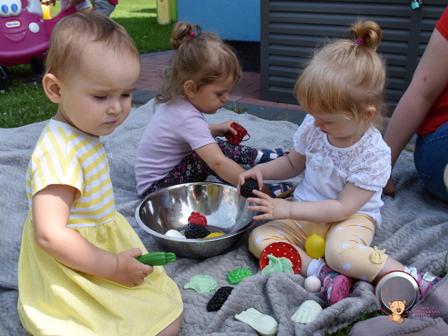 Czekając na zajęcia z bajkotaerpii, kolejne grupy korzystały z pięknej pogody na naszym żłobkowych placu zabaw z kolei na zajęciach z ciocia Sylwią AMIsiaki poznały bajkę o księżniczkach, które organizowały przyjęcie . Poznaliśmy, że szykując przyjęcia nie wolno zapominać o nikim. Każdego trzeba zaprosić i dbać ,aby dobrze się bawili. Była to super opowieść