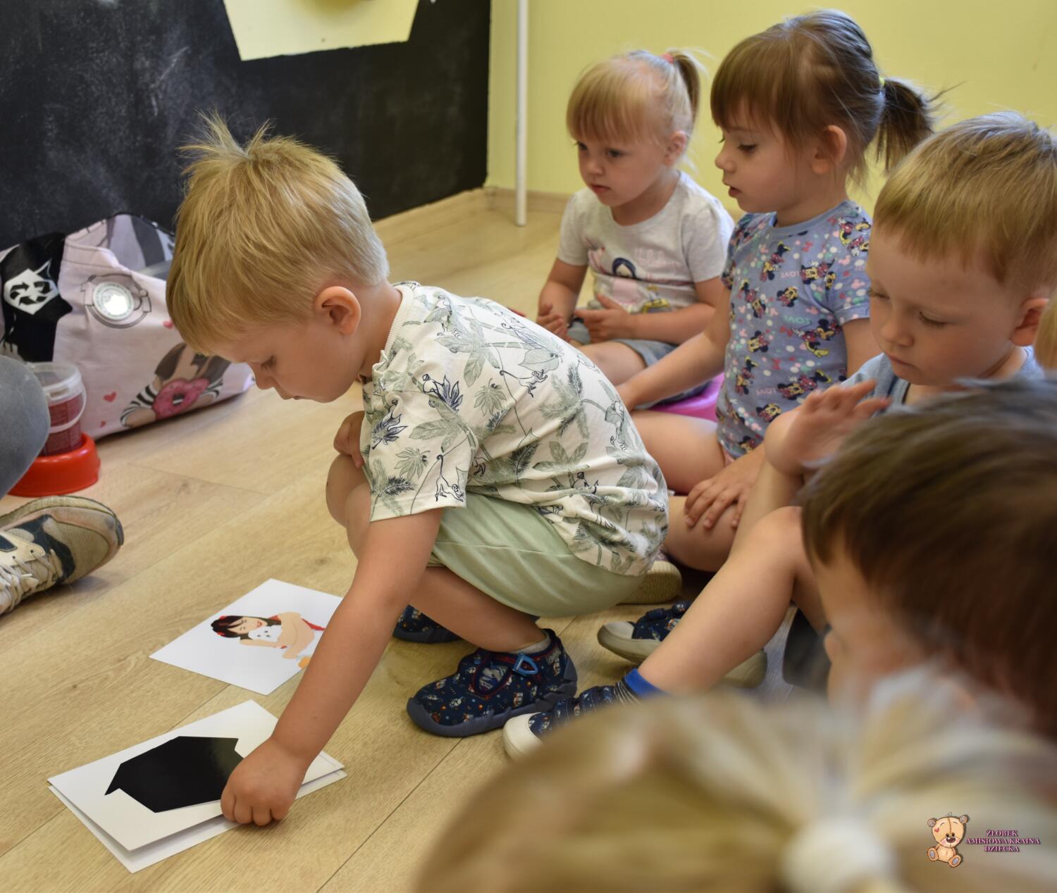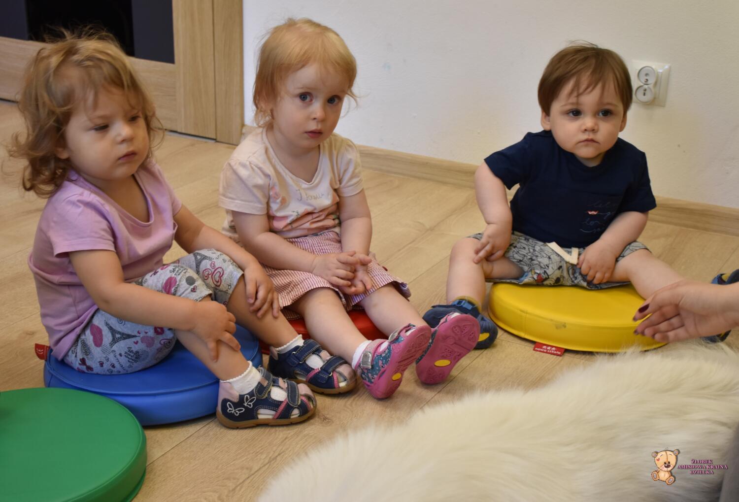 zisiejszego ranka Amisiaki odwiedziła ciocia Agata i Juka. Wszystkie dzieci przywitały się z psem, powiedziały jak się nazywa oraz jakiej jest rasy. Następnie przy użyciu różnokolorowych szczotek dzieci wyczesały futerko swojej białej przyjaciółki. Dzisiejsze zadanie jakie miały wykonać Amisiaki, rozwijało ich spostrzegawczość. Zadanie polegało na dopasowaniu cienia do takiego samego kolorowego obrazka. Wszyscy świetnie poradzili sobie z tym zadaniem i odpowiednio dopasowali obrazek. Na koniec Amisiaki nakarmili Jukę jej ulubioną karmą.