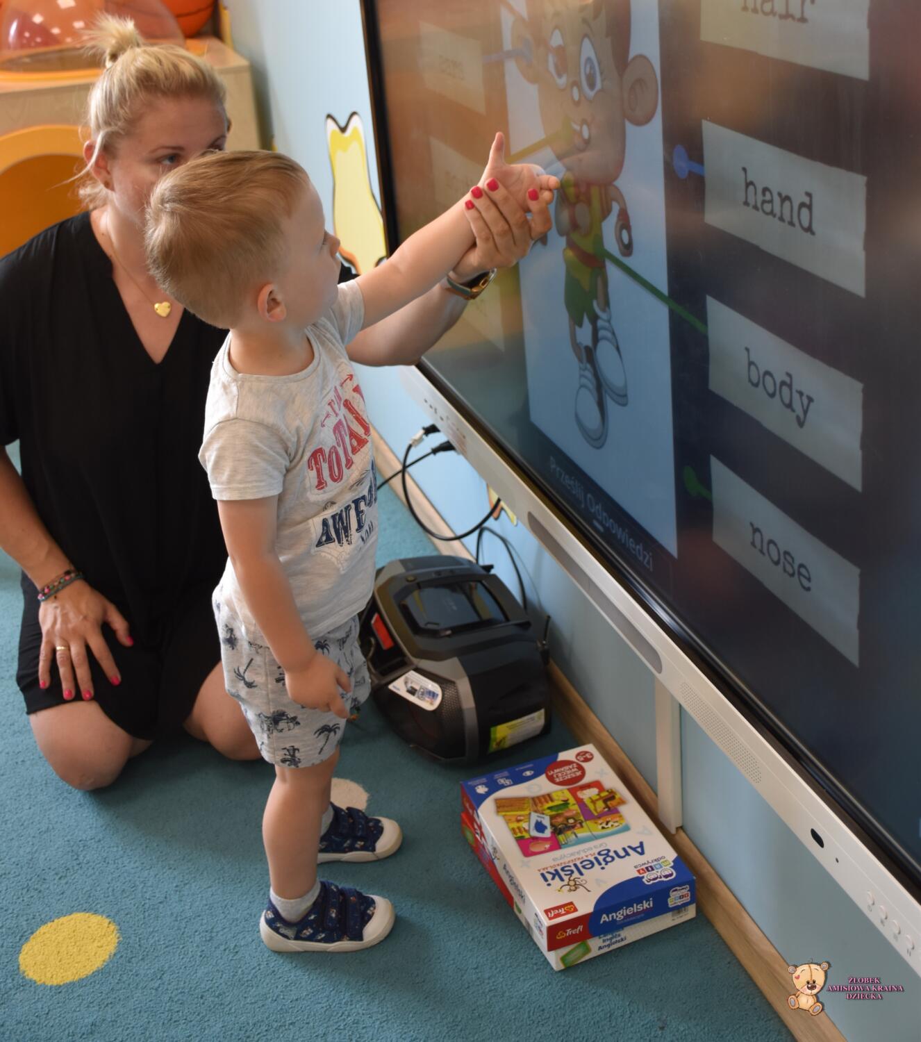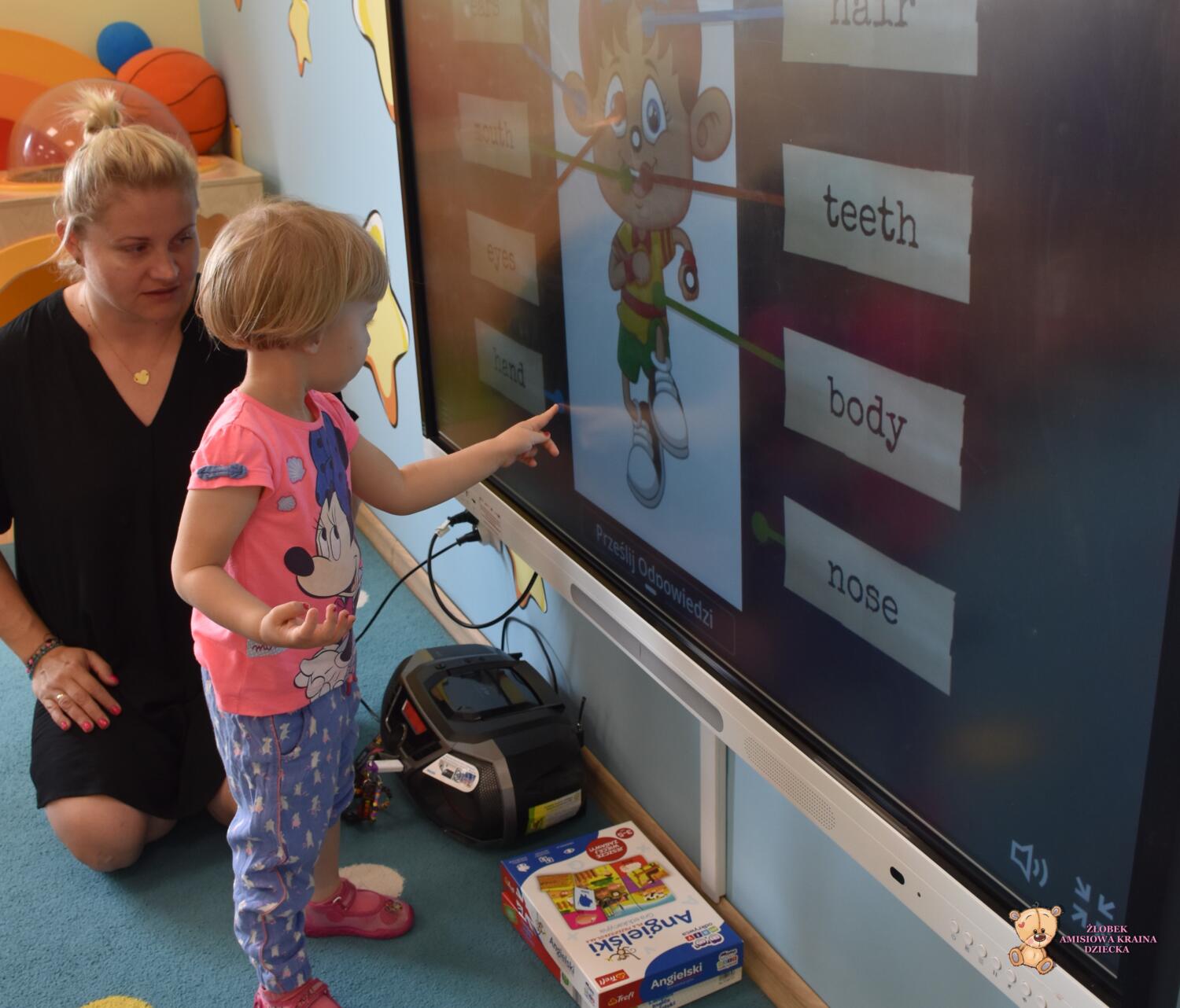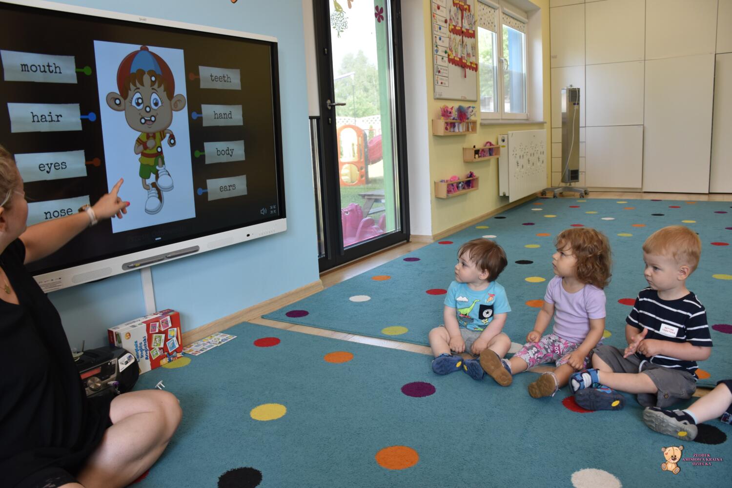 Dzisiaj na zabawach z językiem angielskim utrwalaliśmy sobie poznane do tej pory słówka poprzez pracę z tablica multimedialna oraz gry planszowe. Dzieci musiały zaznaczyć odpowiednie części ciała czy zaznaczyć prawidłowa odpowiedź. Następnie miały dopasować takie same obrazki ćwicząc przy tym swoją spostrzegawczość.