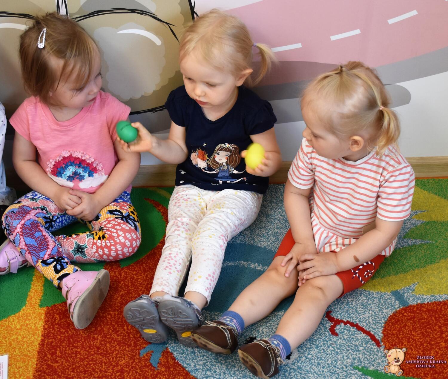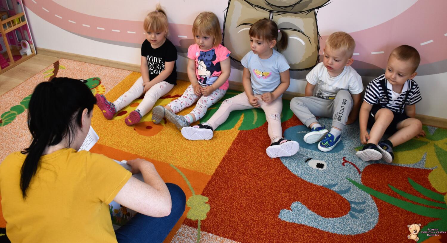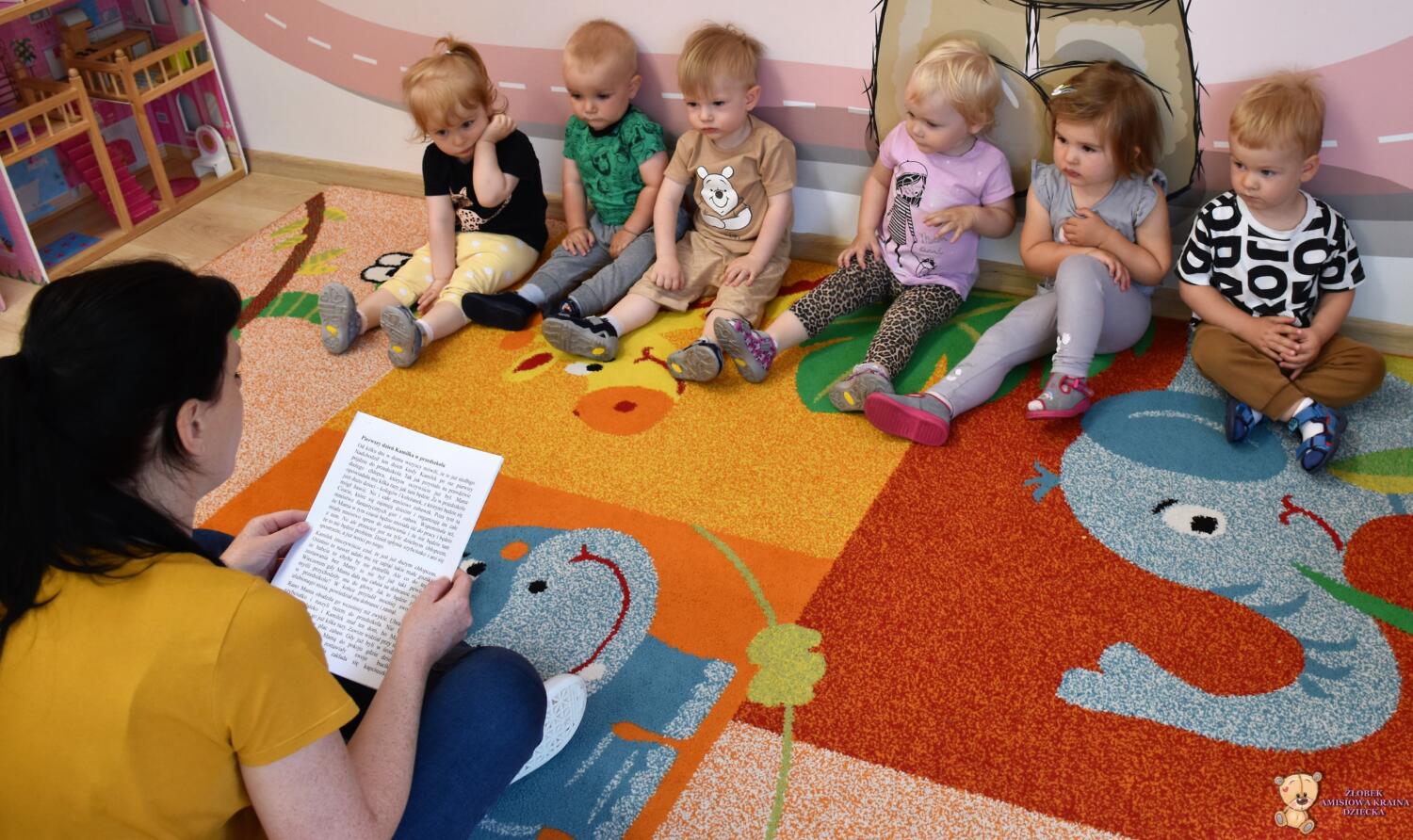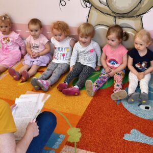 Niebawem niektóre z naszych Amisiaków staną się przedszkolakami. Dlatego dziś poznały historię p.t. „Pierwszy dzień Kamilka w przedszkolu”. Dowiadujemy się z niego, że przedszkole to miejsce radosne, pełne zabawek, nowych kolegów i koleżanek. Kamilek mimo obaw, czy mu się spodoba, czy da radę wytrwać cały dzień bez mamy, świetnie sobie poradził. Miła pani i piękna lokomotywa, którą bawił się z nowym kolegą Karolkiem, sprawiły że dzień był wyjątkowo udany. Nasze Amisiaki wiedzą, że w przedszkolu tak jak w żłobku czas mija na dobrej zabawie. Na koniec dzieci próbowały na podstawie ilustracji opowiedzieć co robią dzieci w przedszkolu oraz naśladowały dźwięki z opowiadania: jazdę lokomotywy i muzykę z zajęć rytmicznych.