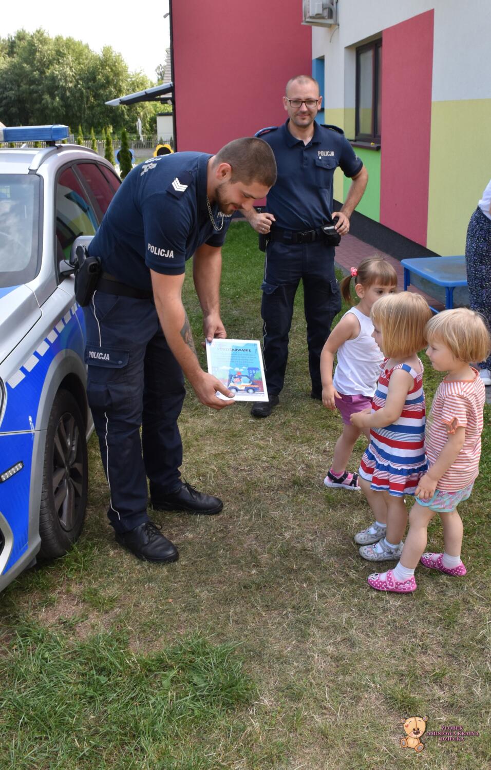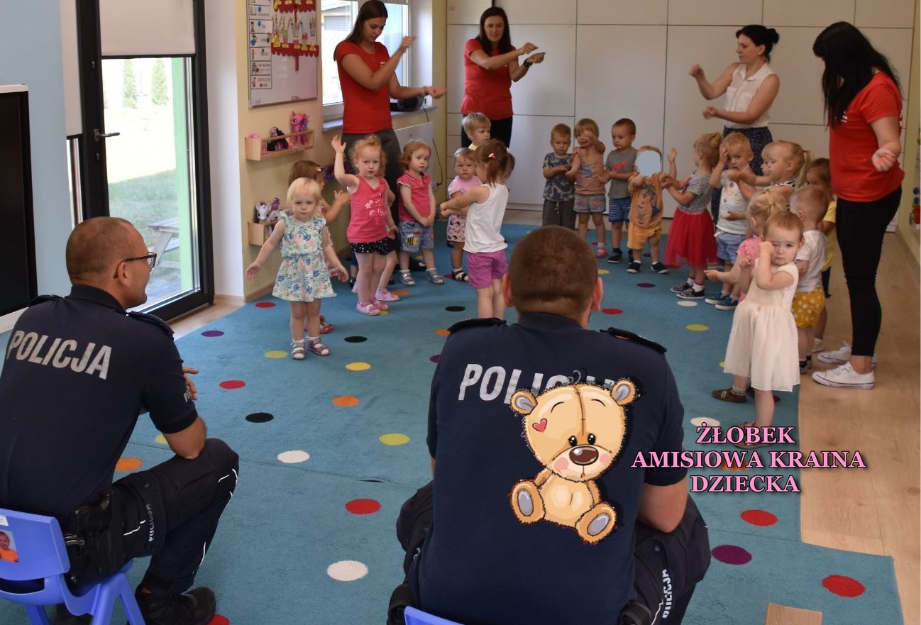 Nasze Amisie przedstawiły się z najlepszej strony śpiewając i tańcząc ulubione piosenki, po krótkim przedstawieniu głos zabrali nasi Goście opowiadając dzieciom o swojej pracy, zwracając uwagę na bezpieczeństwo dzieci na drodze, jak i w środkach lokomocji. Na koniec wszyscy wyszliśmy na plac zabaw, gdzie każdy mógł zasiąść w wozie policyjnym, to było bardzo mile przeżycie, do zobaczenia za rok:)
