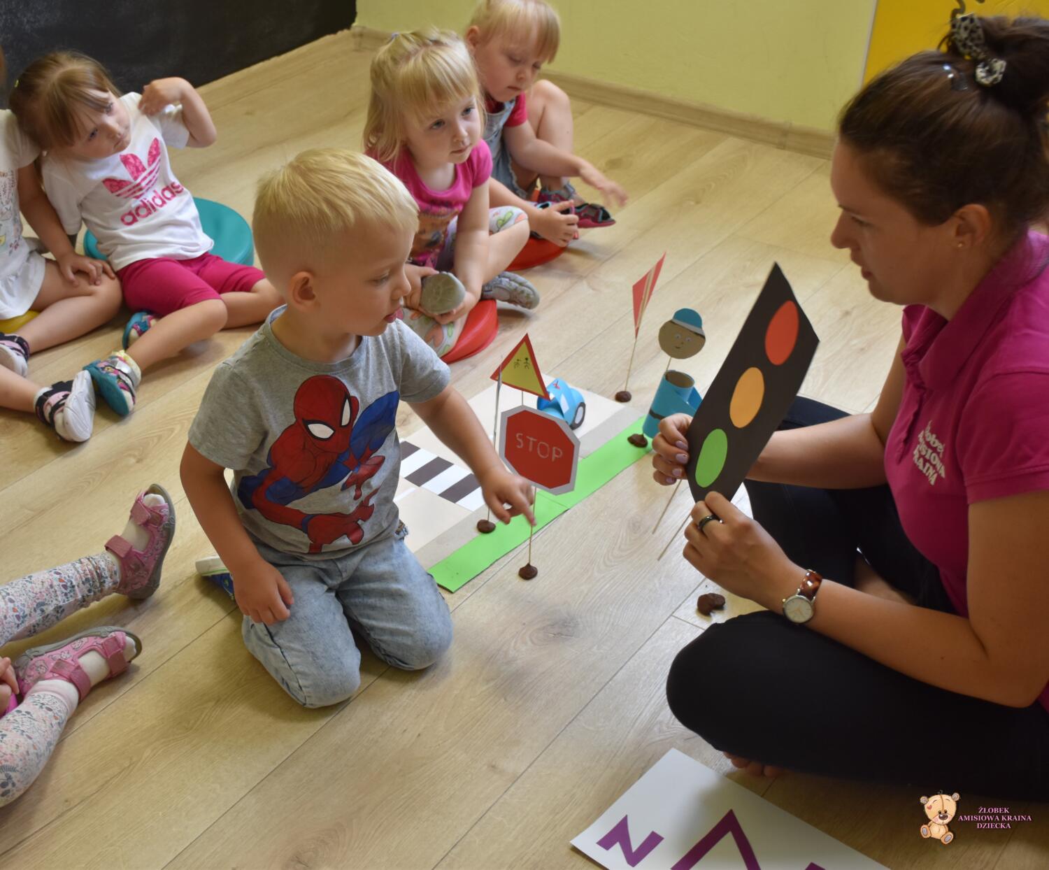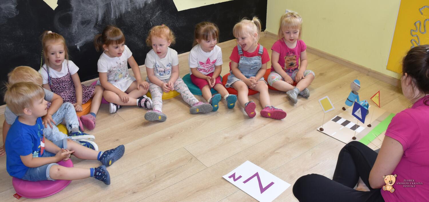 Dziś na zajęciach z Literkowa nasze Niedźwiadki poznały literkę Z. „Z” jak znaki drogowe, ciocia naszykowała dla nas kilka znaków drogowych i opowiedziała co oznaczają. Mieliśmy możliwość poćwiczenia zdobytej wiedzy w praktyce poruszając się po specjalnej planszy, jeździł tam także policjant Romek, który pilnował naszego bezpieczeństwa