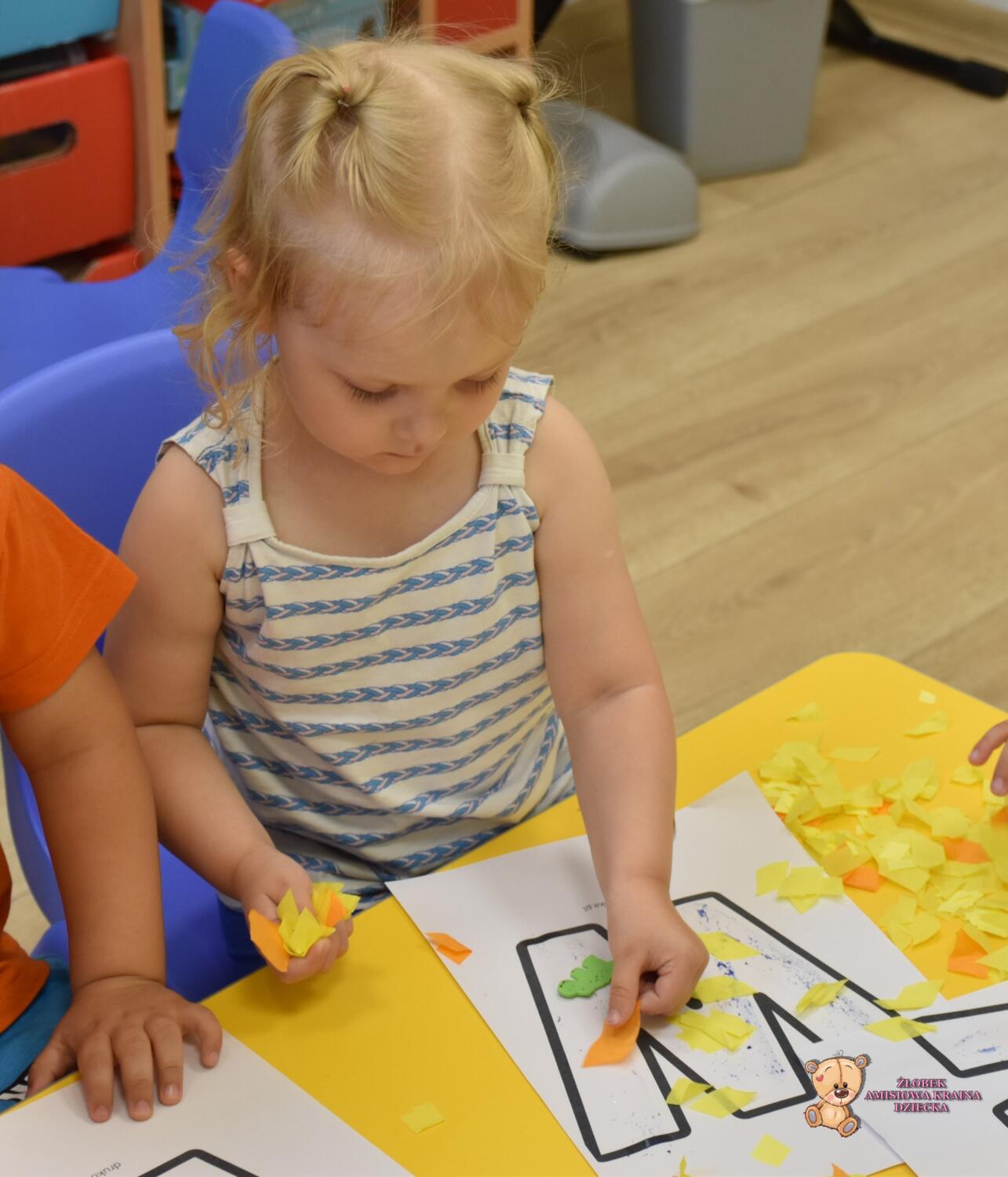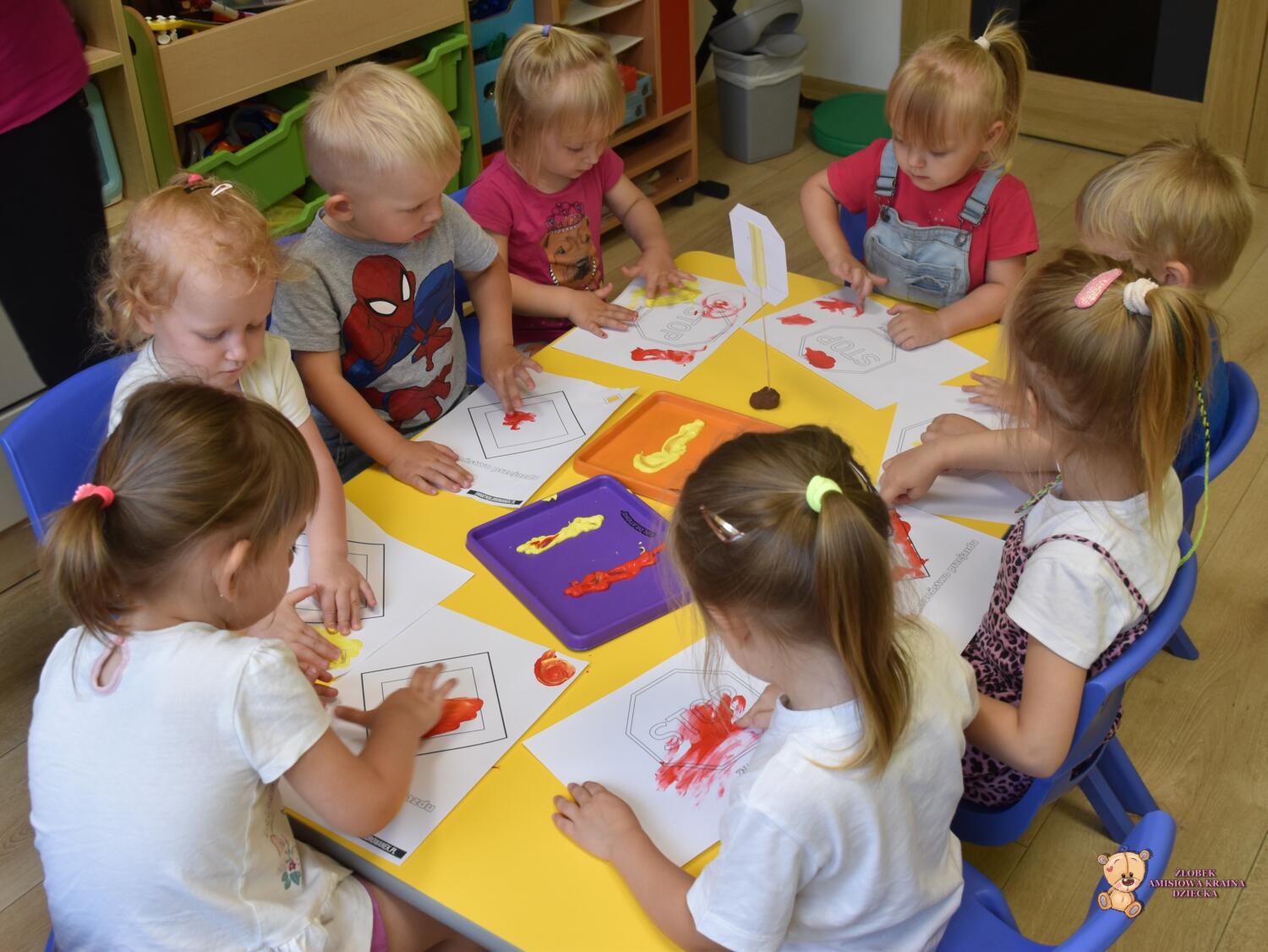 Grupa Pszczółek poznała literkę W, dzieci zapoznały się z jej kształtem, staraliśmy się odgadnąć jak najwięcej rzeczy rozpoczynających się na te literę. Uczyliśmy się prawidłowej wymowy, a na koniec wykonaliśmy pracę plastyczną polegająca na wyklejeniu bibułą literki W