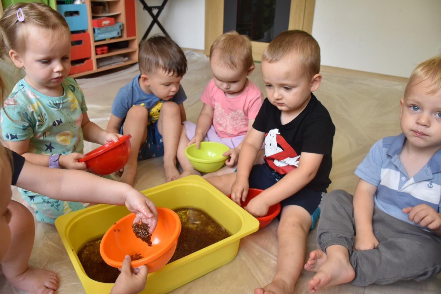Dziś nasze Amisiakina zajęciach z sensoplastyki bawiły się w przyjemnym miłym w dotyku kiślu z siemienia lnianego. Dzieci zanurzały rączki✋ i stopy 🦶w masie. Następnie przesypywały ziarenka do misek, co nie było proste bo masa była bardzo śliska. To była super sensoryczna zabawa 😊