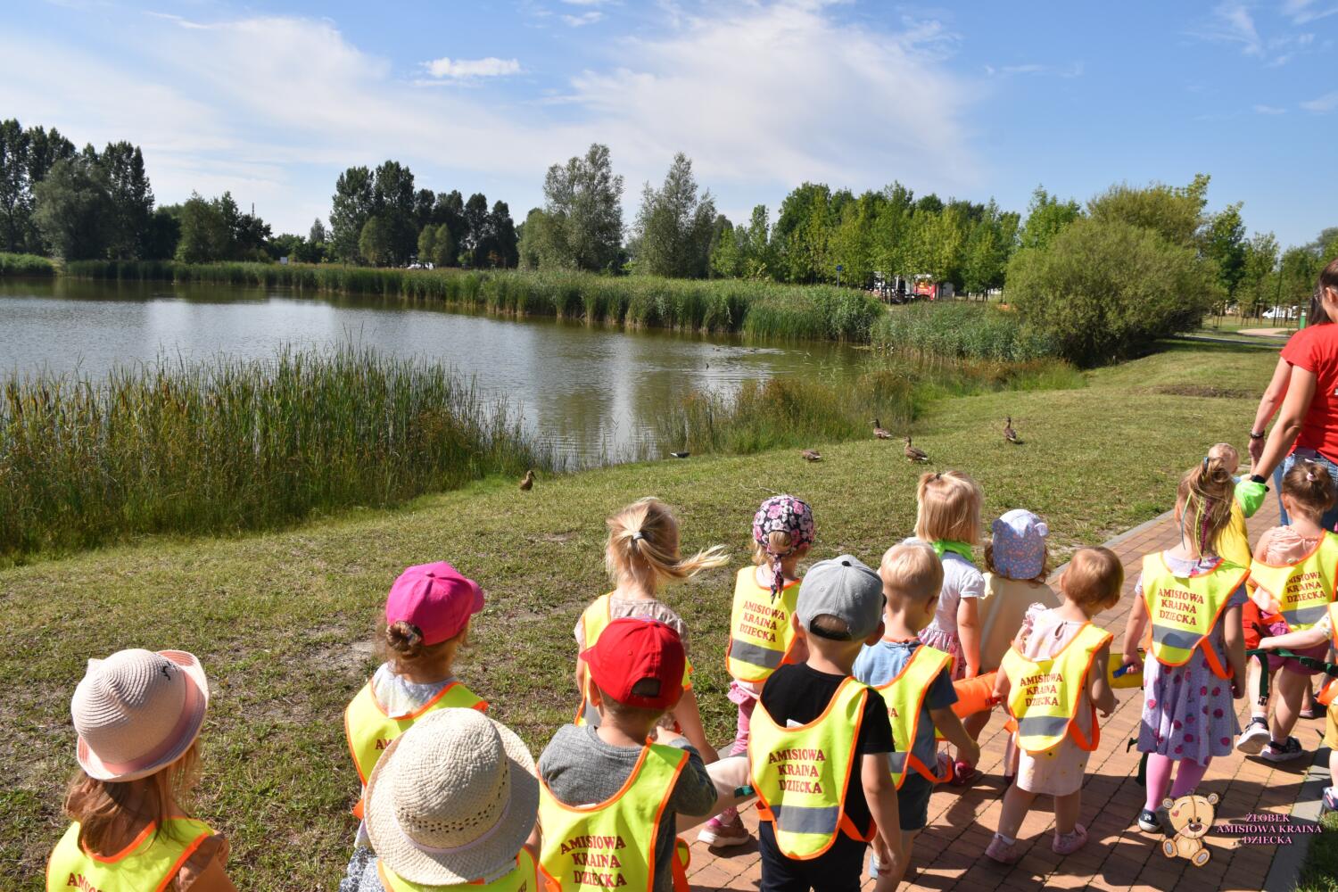 Dzieci ze Zduńskowolskiego żłobka Amisiowa Kraina Dziecka wybrały się na spacer po okolicy . Zawędrowaliśmy aż nad zbiornik Kępina. Okazało się, że na wodzie pływają dzikie kaczki, które bardzo podobały się naszym AMIsiakom. Dzieci poobserwowały pływające zwierzątka, po czym wesoło śpiewając wróciliśmy do żłobka