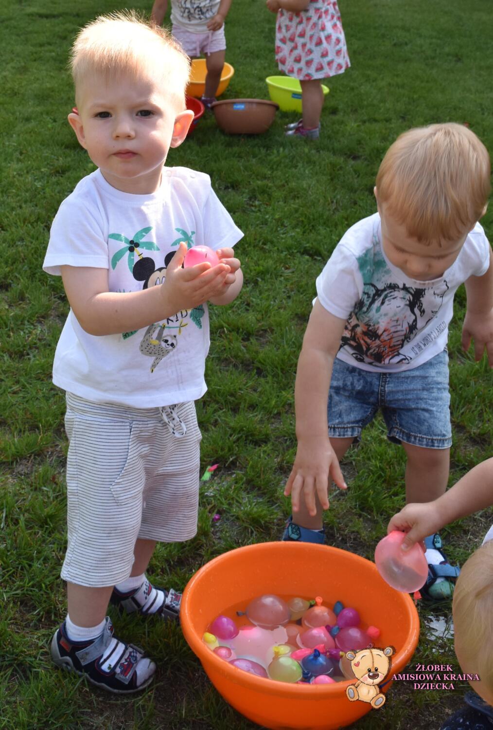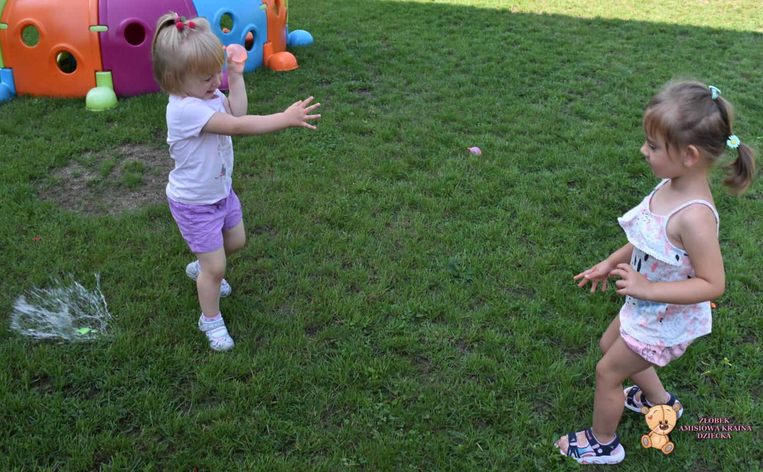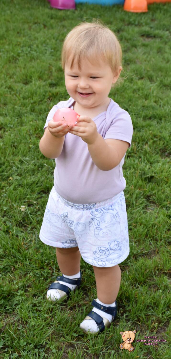 Amisiaki po raz kolejny skorzystały z pięknej pogody. Na zajeciach z sensoplastyki bawiły się kolorowymi balonami z wodą, rzucały a balony pękały i wokół rozpryskiwała się woda. ![]()