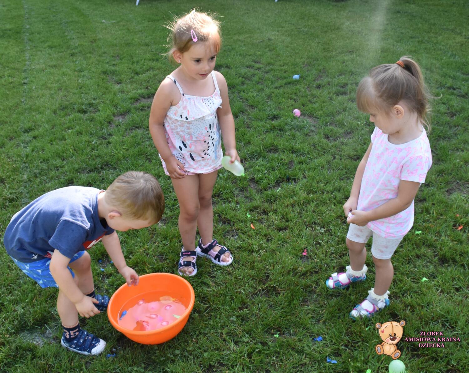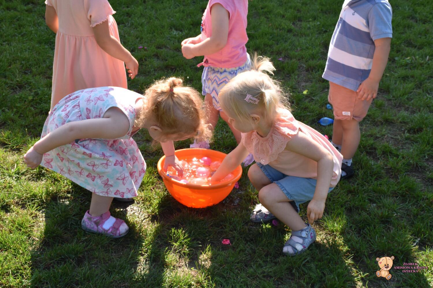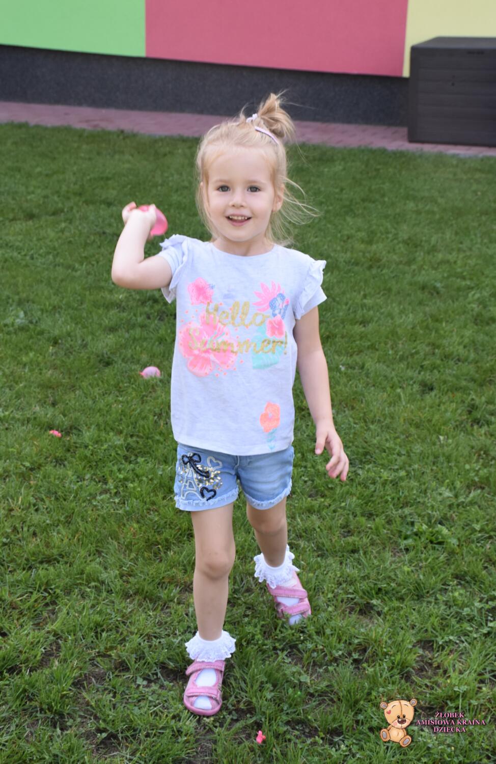 Amisiaki po raz kolejny skorzystały z pięknej pogody. Na zajeciach z sensoplastyki bawiły się kolorowymi balonami z wodą, rzucały a balony pękały i wokół rozpryskiwała się woda. ![]()