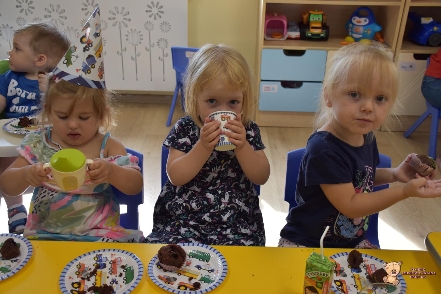 Dziś świętowaliśmy trzecie urodziny Franka, w tym dniu towarzyszyli nam rodzice naszego Jubilata. Wspólnie usiedliśmy do porannego kręgu, a dzieci zaśpiewały Franiowi Sto Lat. Było również dmuchanie świeczek na naszym żłobkowym torcie. Franio wybrał prezent z urodzinowego pudełka, a następnie poczęstował wszystkich pysznymi smakołykami przygotowanymi przez rodziców Frania. Życzymy Ci Franio Wszystkiego Najlepszego!
