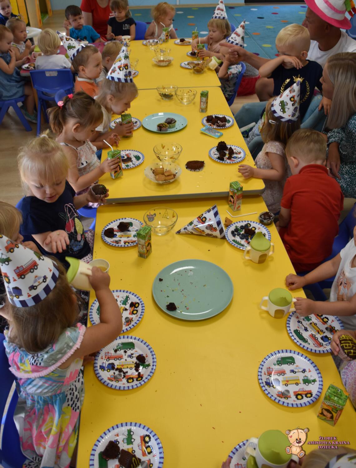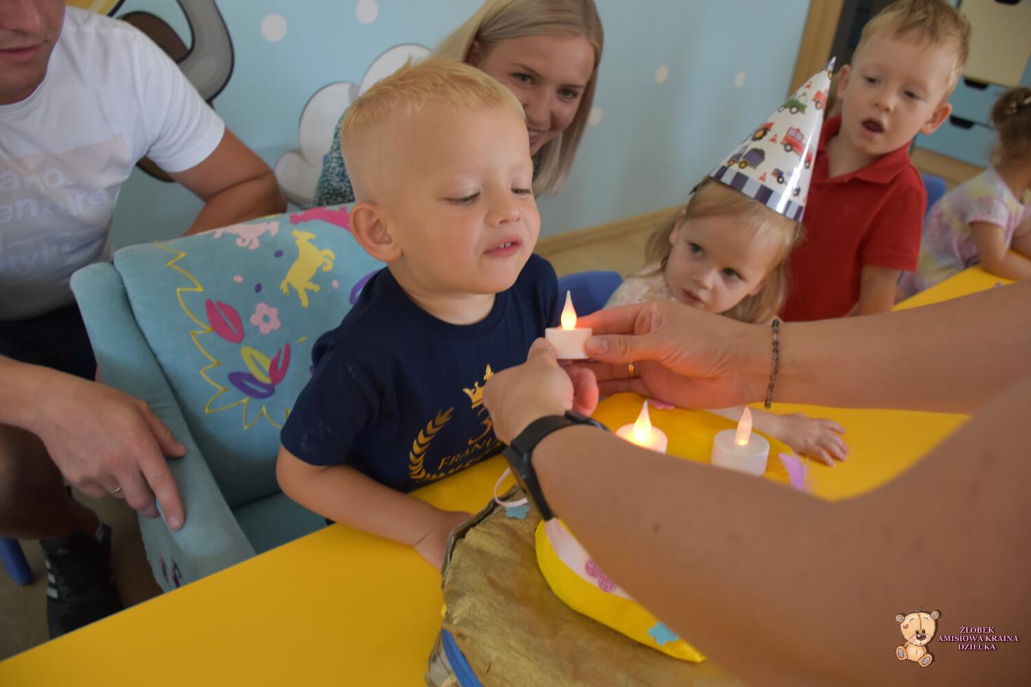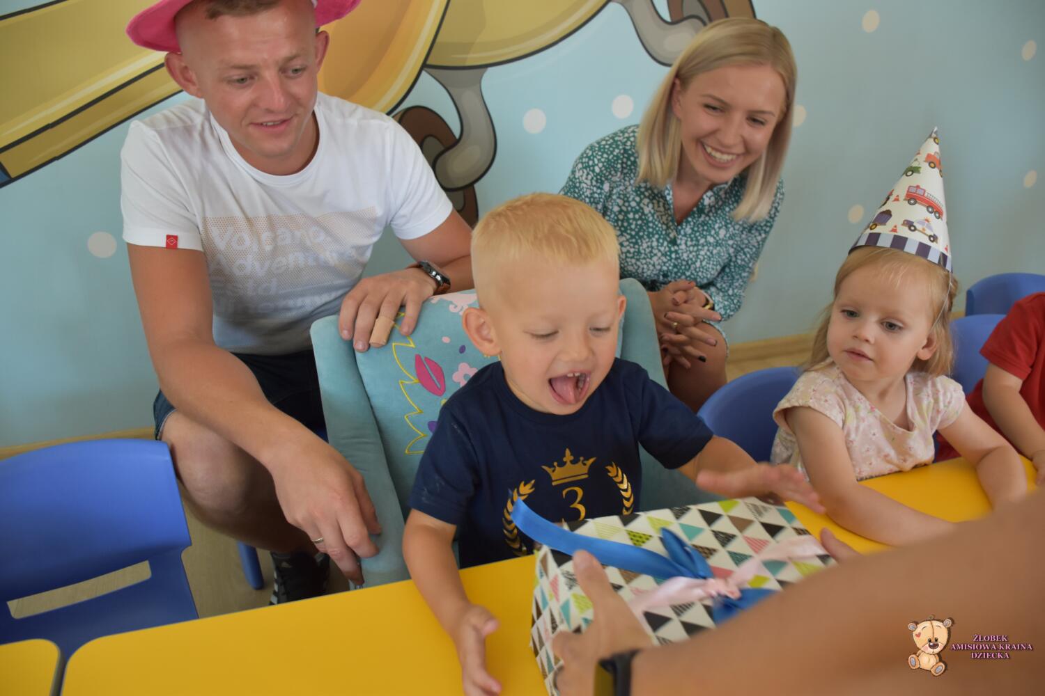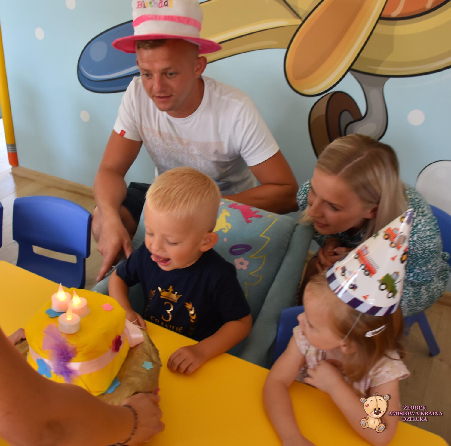 Dziś świętowaliśmy trzecie urodziny Franka, w tym dniu towarzyszyli nam rodzice naszego Jubilata. Wspólnie usiedliśmy do porannego kręgu, a dzieci zaśpiewały Franiowi Sto Lat. Było również dmuchanie świeczek na naszym żłobkowym torcie. Franio wybrał prezent z urodzinowego pudełka, a następnie poczęstował wszystkich pysznymi smakołykami przygotowanymi przez rodziców Frania. Życzymy Ci Franio Wszystkiego Najlepszego!